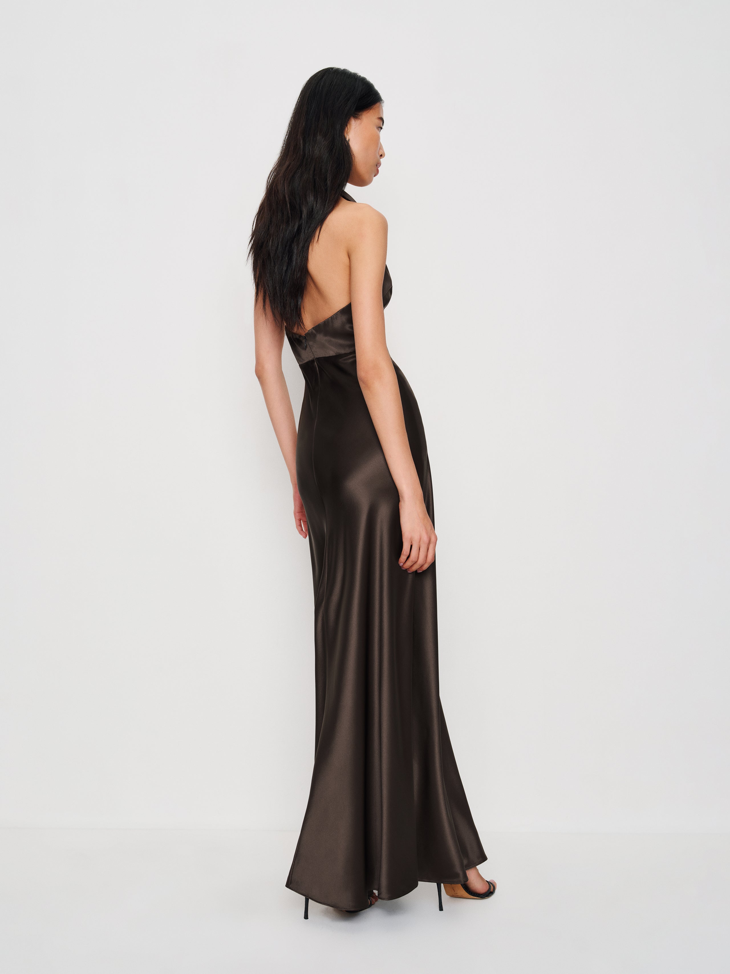 May cause compliments. Shop the Daniela Silk Dress from Reformation, a full length dress with a halter...