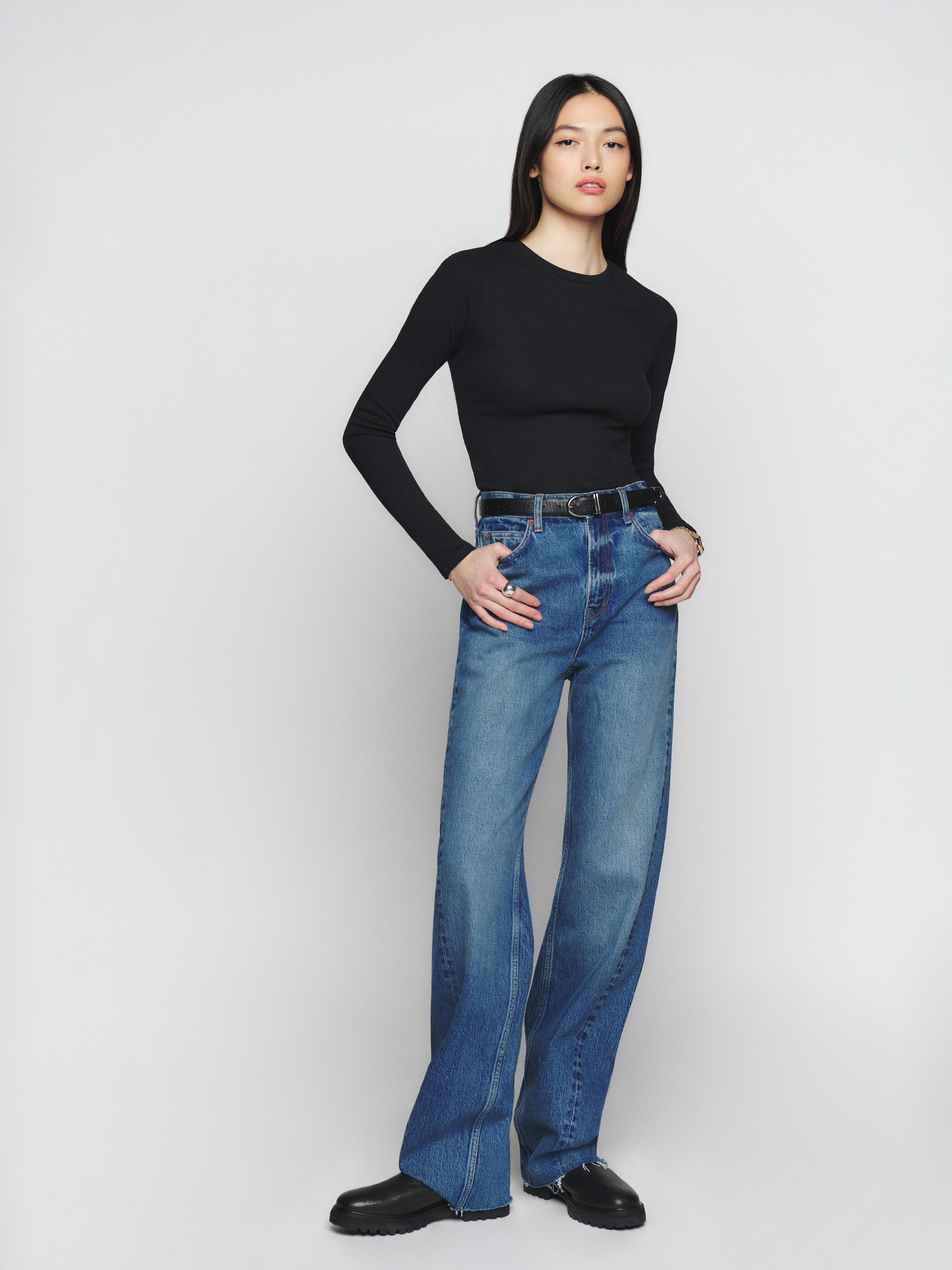 Sometimes we're basic. This is a tight fitting shirt with a crew neck and long sleeves.