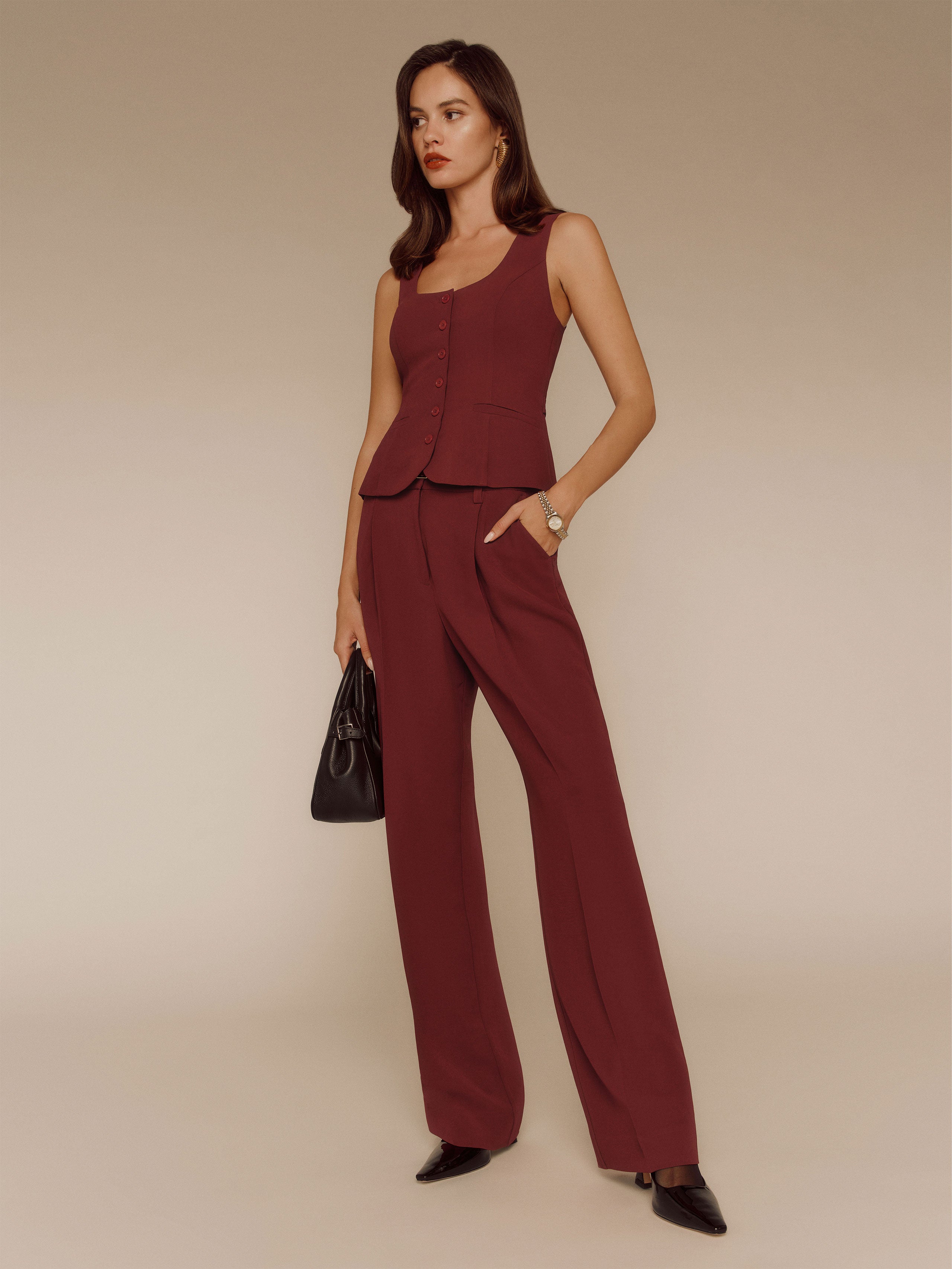 You make it look easy. Shop the Delanie Top from Reformation, a sleeveless vest top with a button front and a split hem.