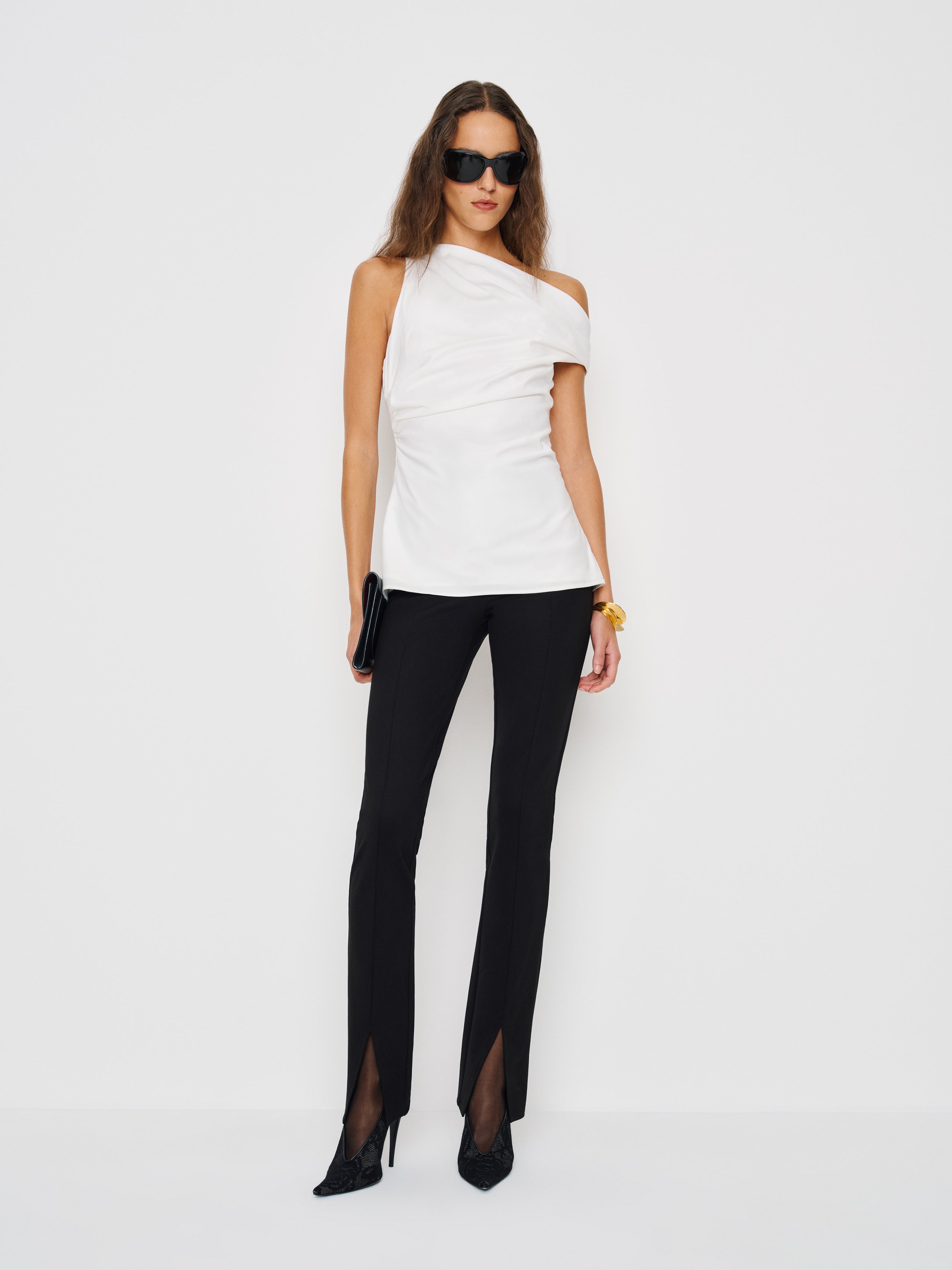 May cause compliments. Shop the Dessa Top from Reformation, a top with an asymmetrical neckline and cinch detailing. What good outfits are made of.
