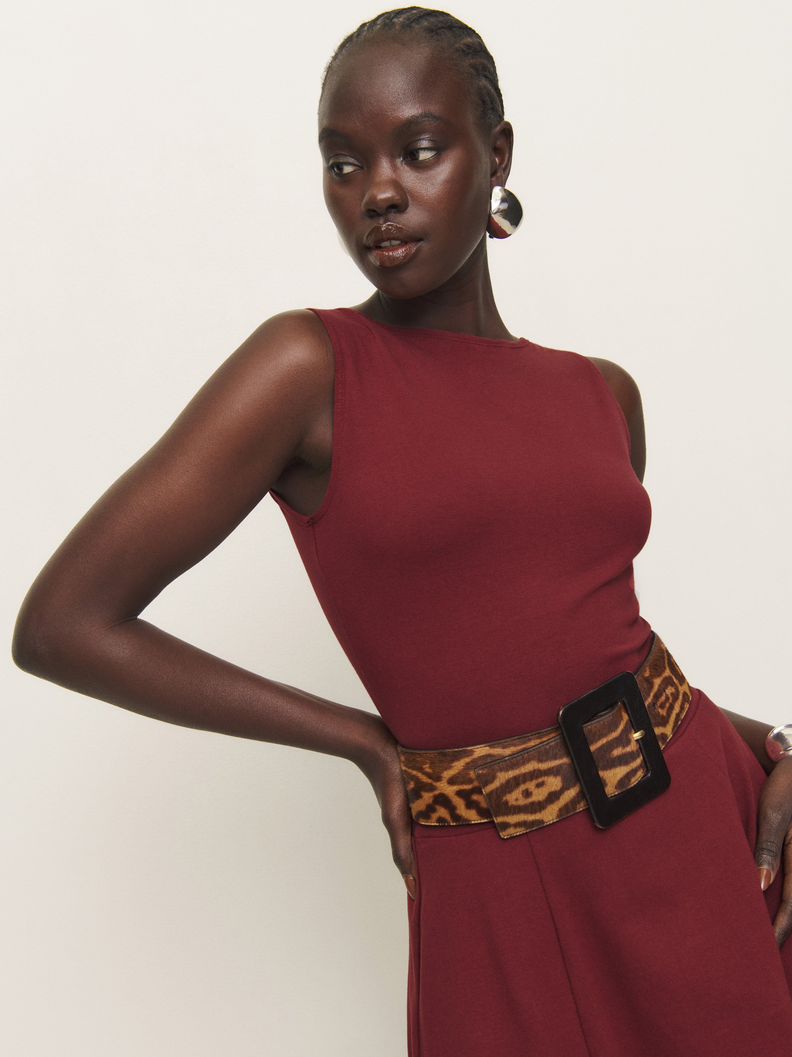 Wear the dress. Shop the Devin Knit Dress from Reformation, a sleeveless midi dress with a high...