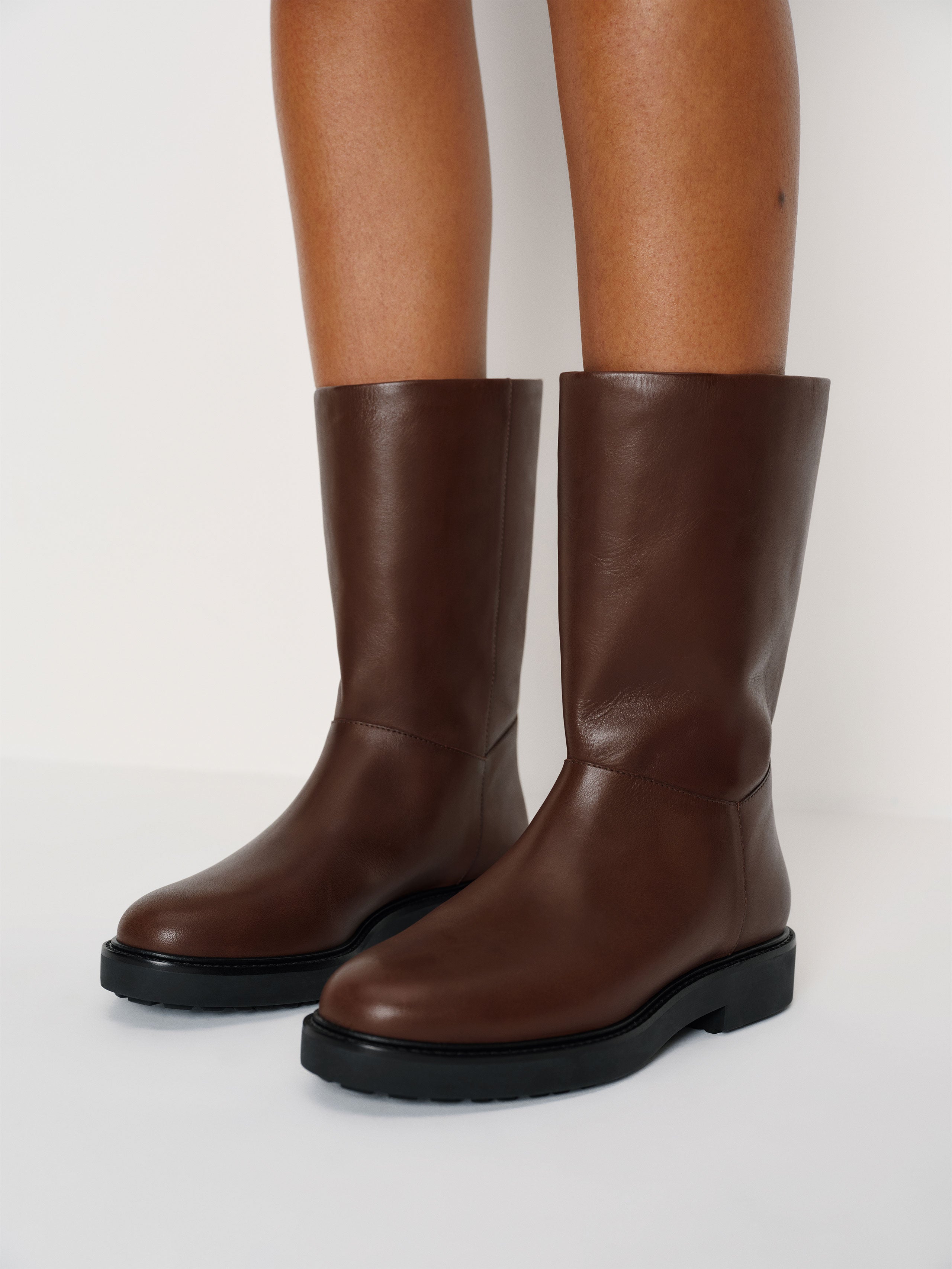 Treat your feet. Shop the Dorinda Mid Shaft Boot from Reformation, a mid-calf shaft boot with a...