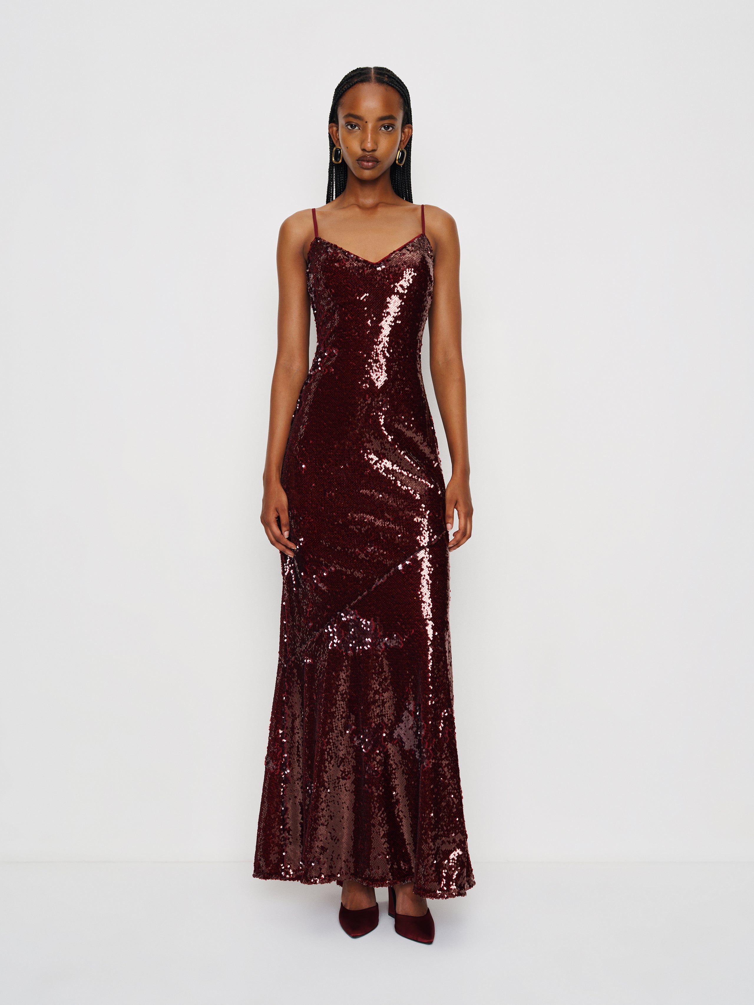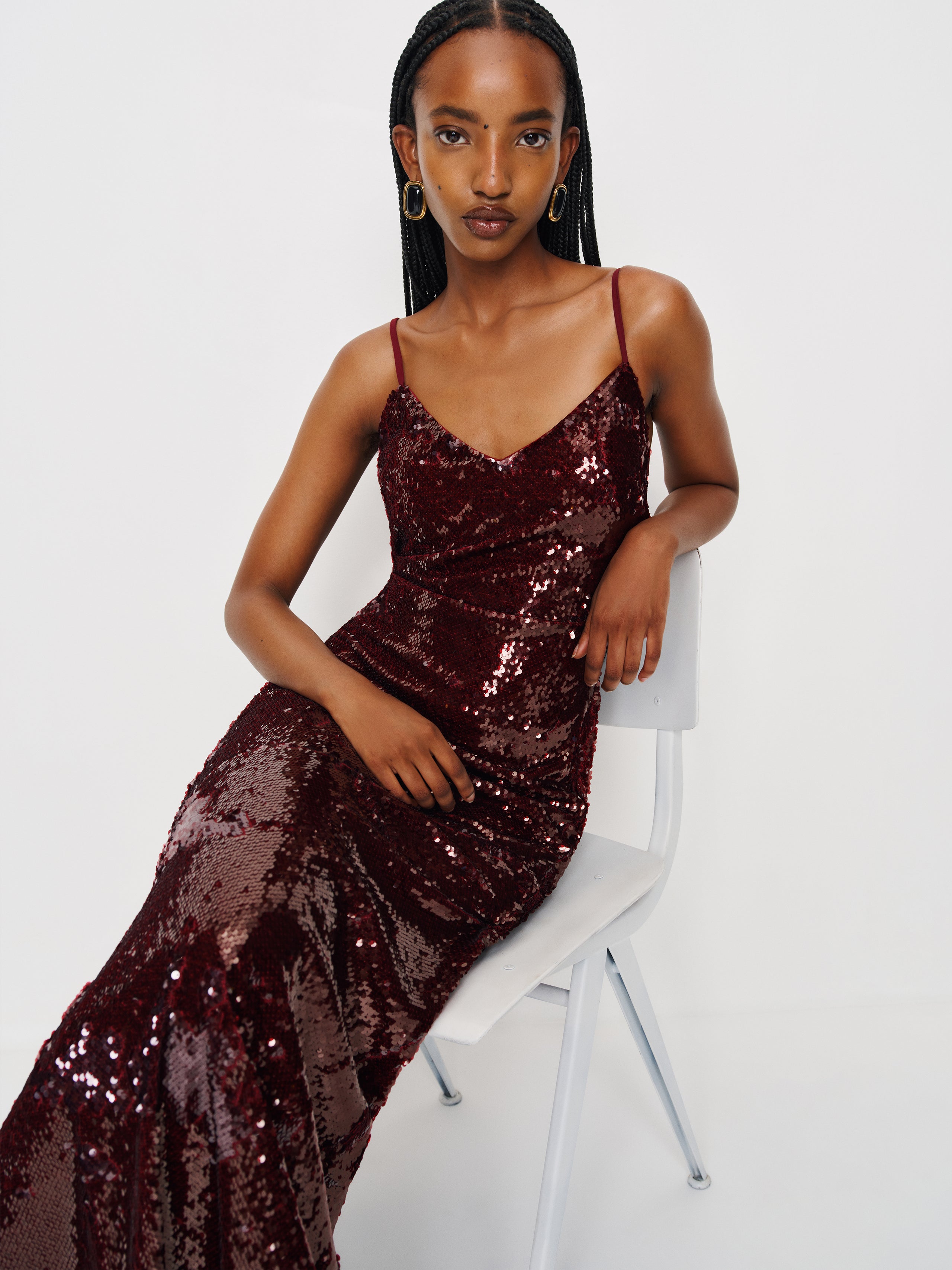 Try not to play favorites. Shop the Drizzle Dress from Reformation, a sleeveless maxi dress with a V-neckline, adjustable straps, and a slim fit.