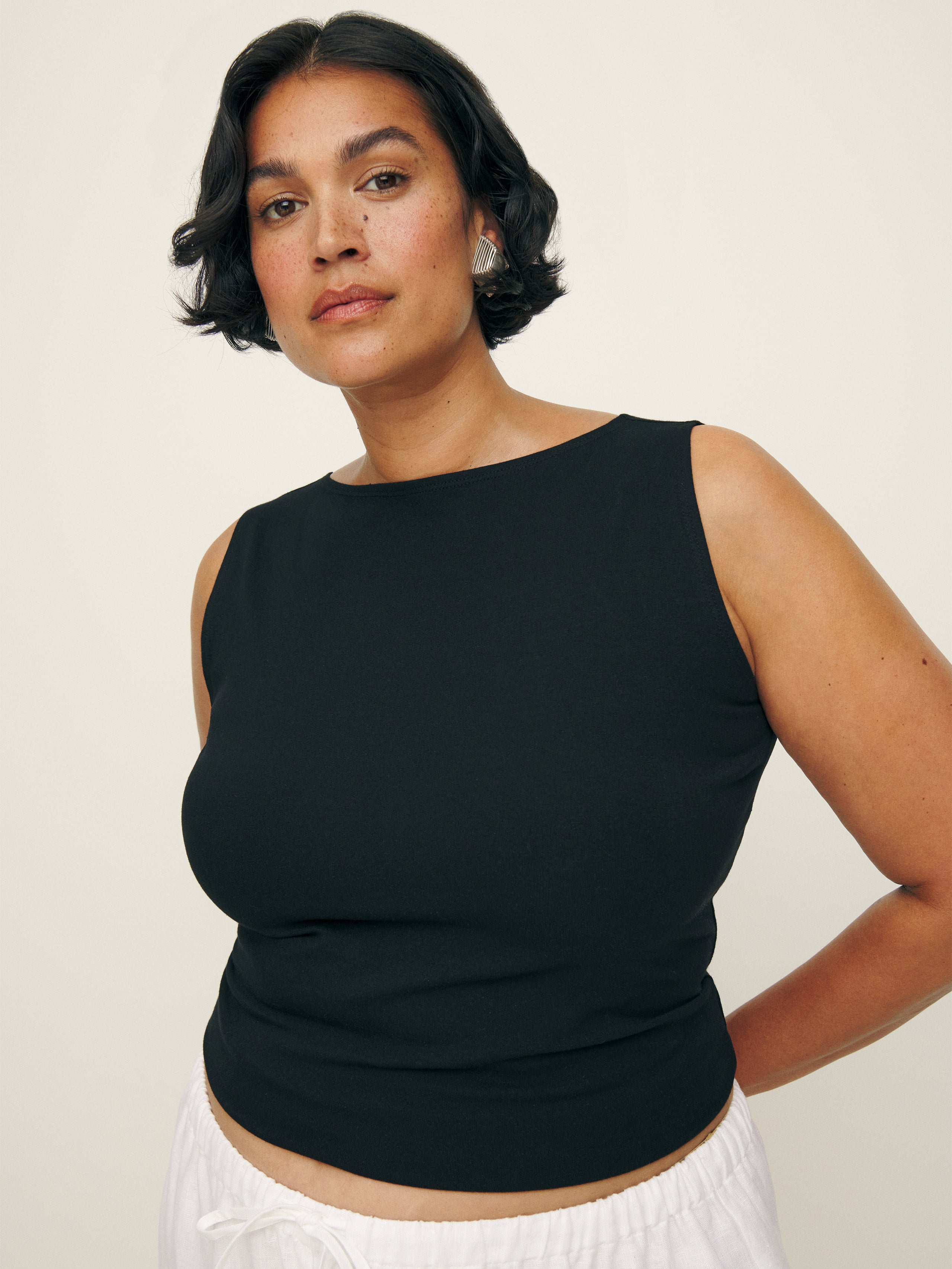 Bye sleeves. Shop the Dusk Knit Top ES from Reformation, a sleeveless, fitted top with a boat...