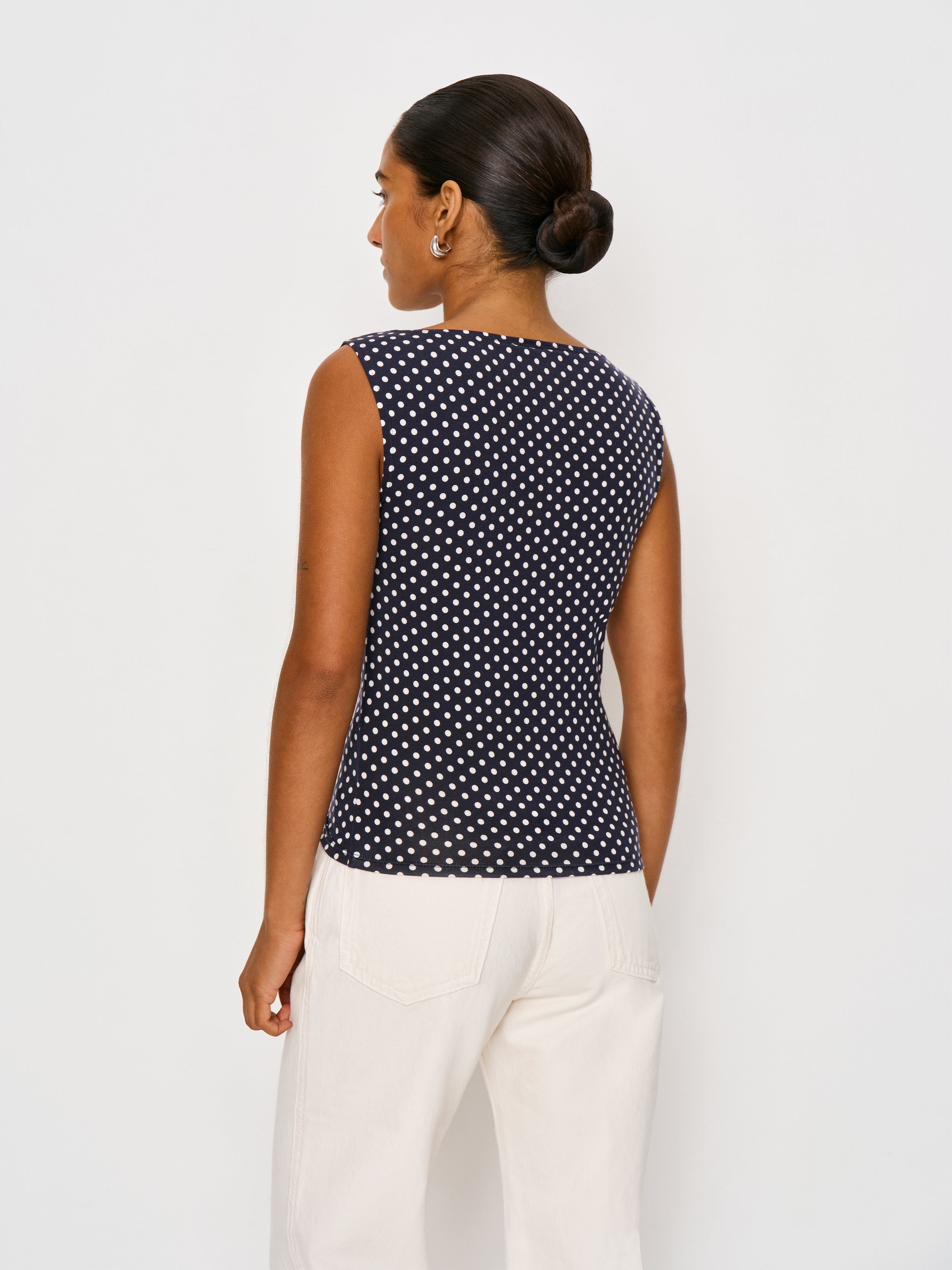 Bye sleeves. Shop the Dusk Knit Top from Reformation, a sleeveless, fitted top with a boat neckline.