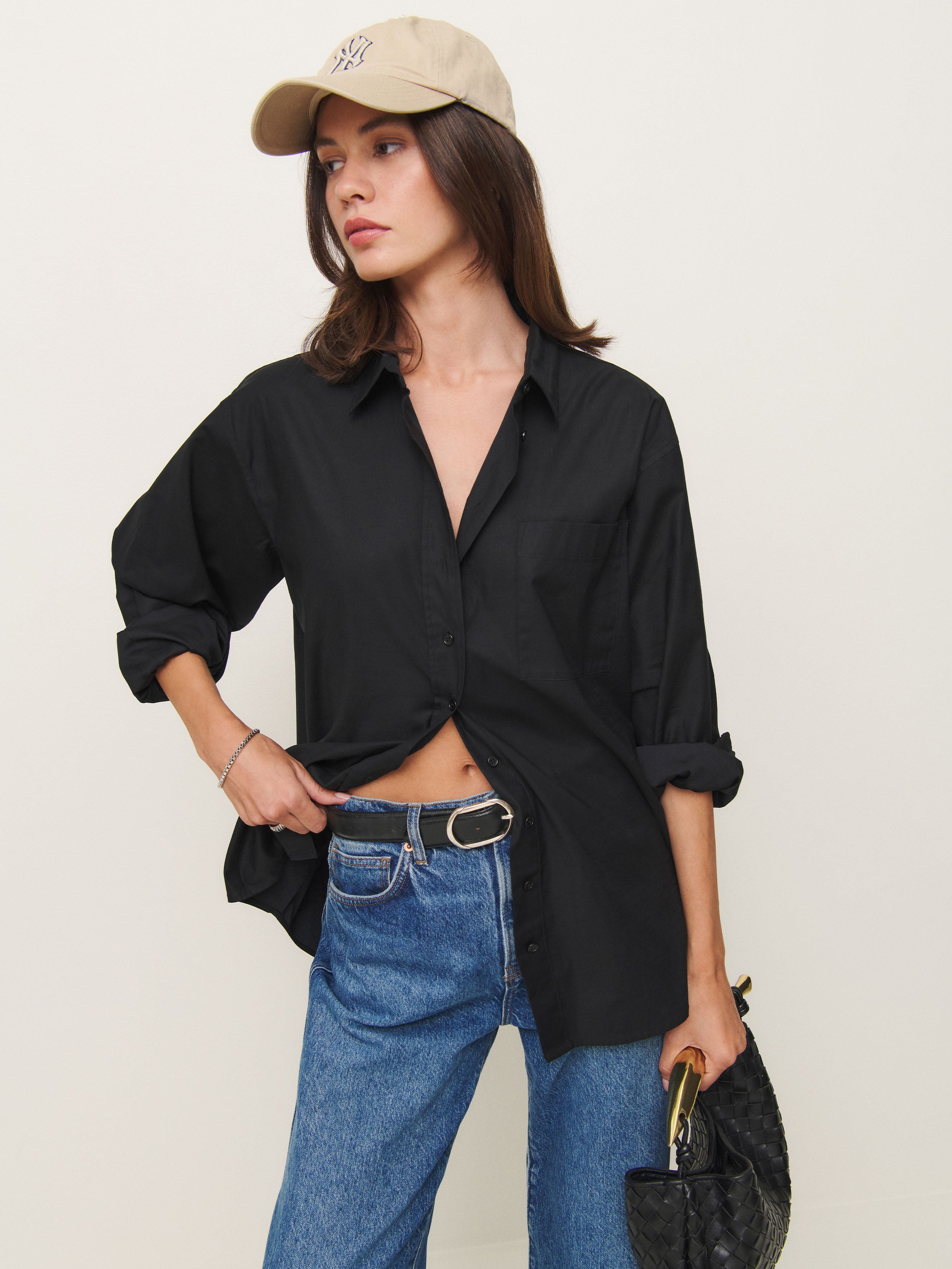 How classic. Shop the Eli Oversized Shirt from Reformation, an oversized shirt with a collared neckline and...