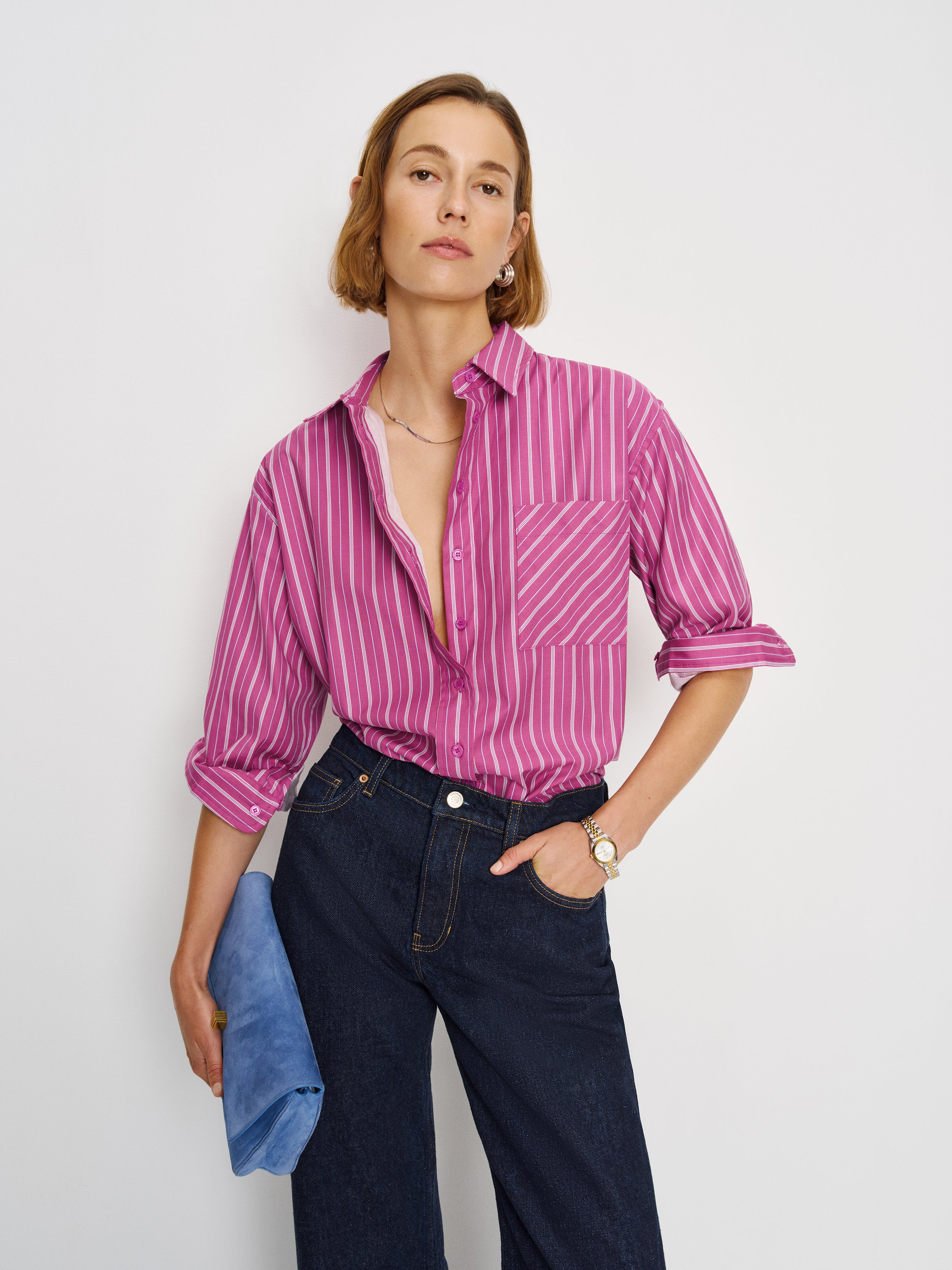 How classic. Shop the Eli Oversized Shirt from Reformation, an oversized shirt with a collared neckline and...