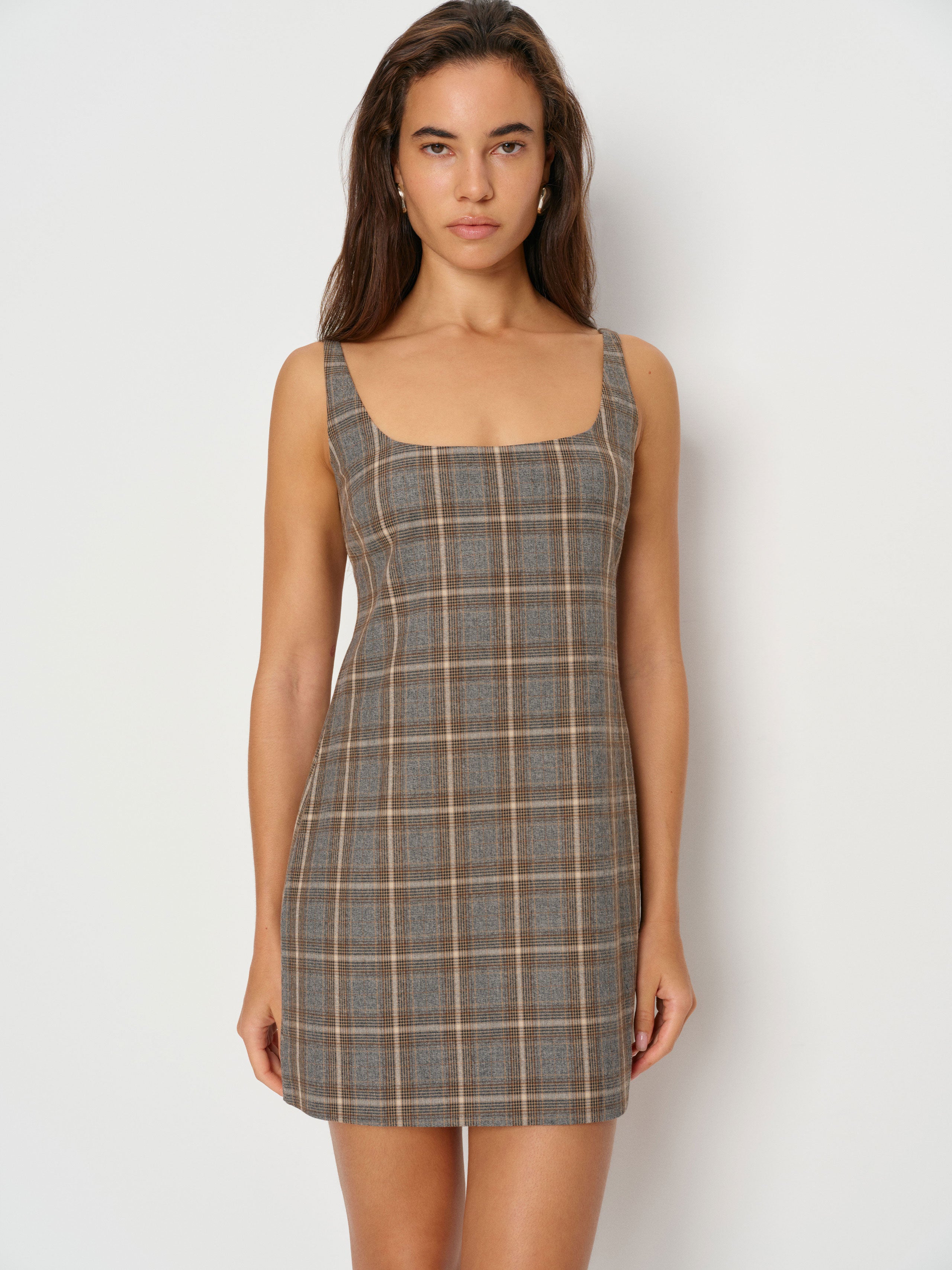 Wear the dress. Shop the Elinda Dress from Reformation, a sleeveless mini dress with a scoop neckline...