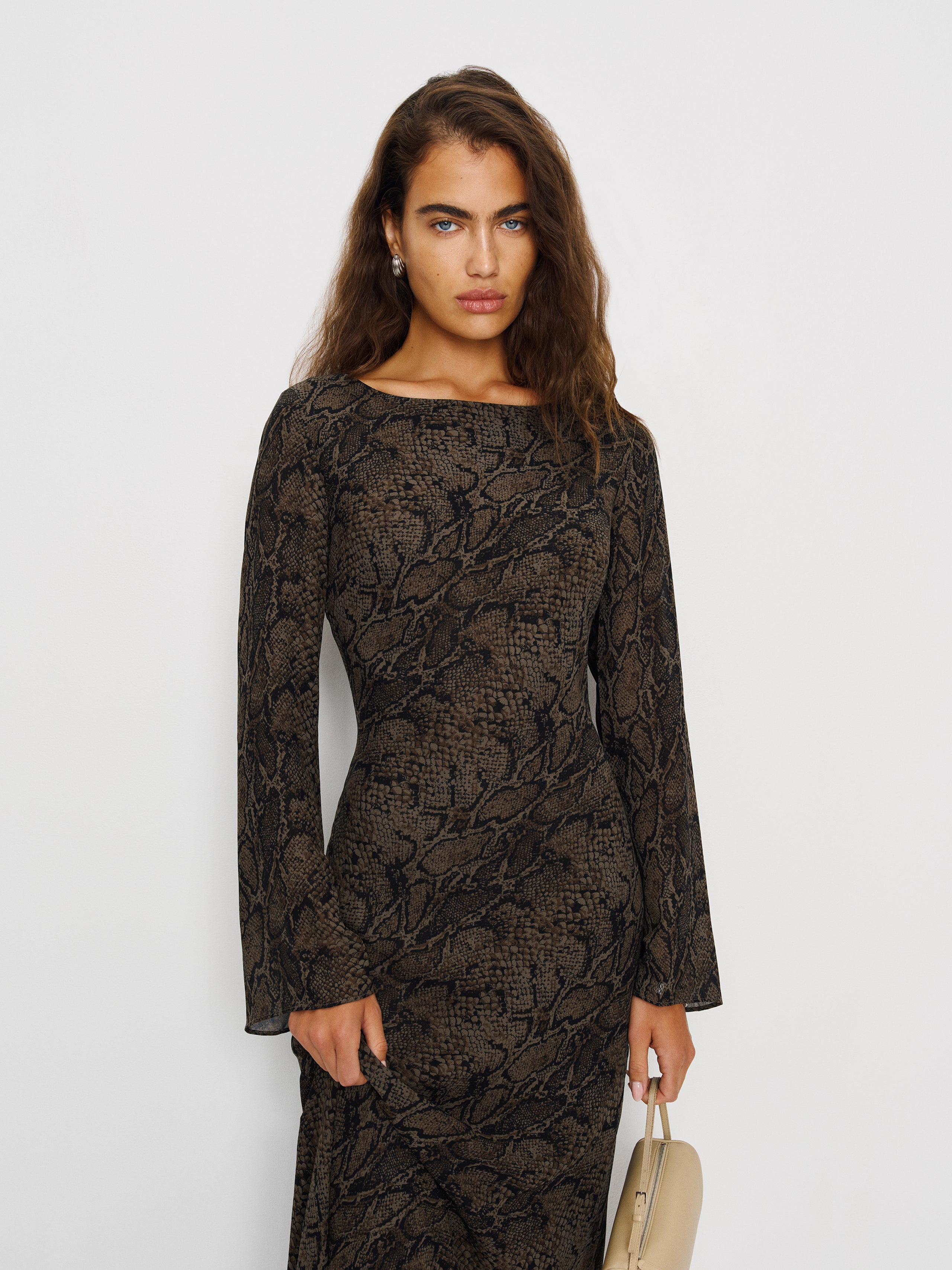 Don't flirt with me. Shop the Esra Dress from Reformation, a long-sleeved maxi dress with a boat neckline and bell sleeves.