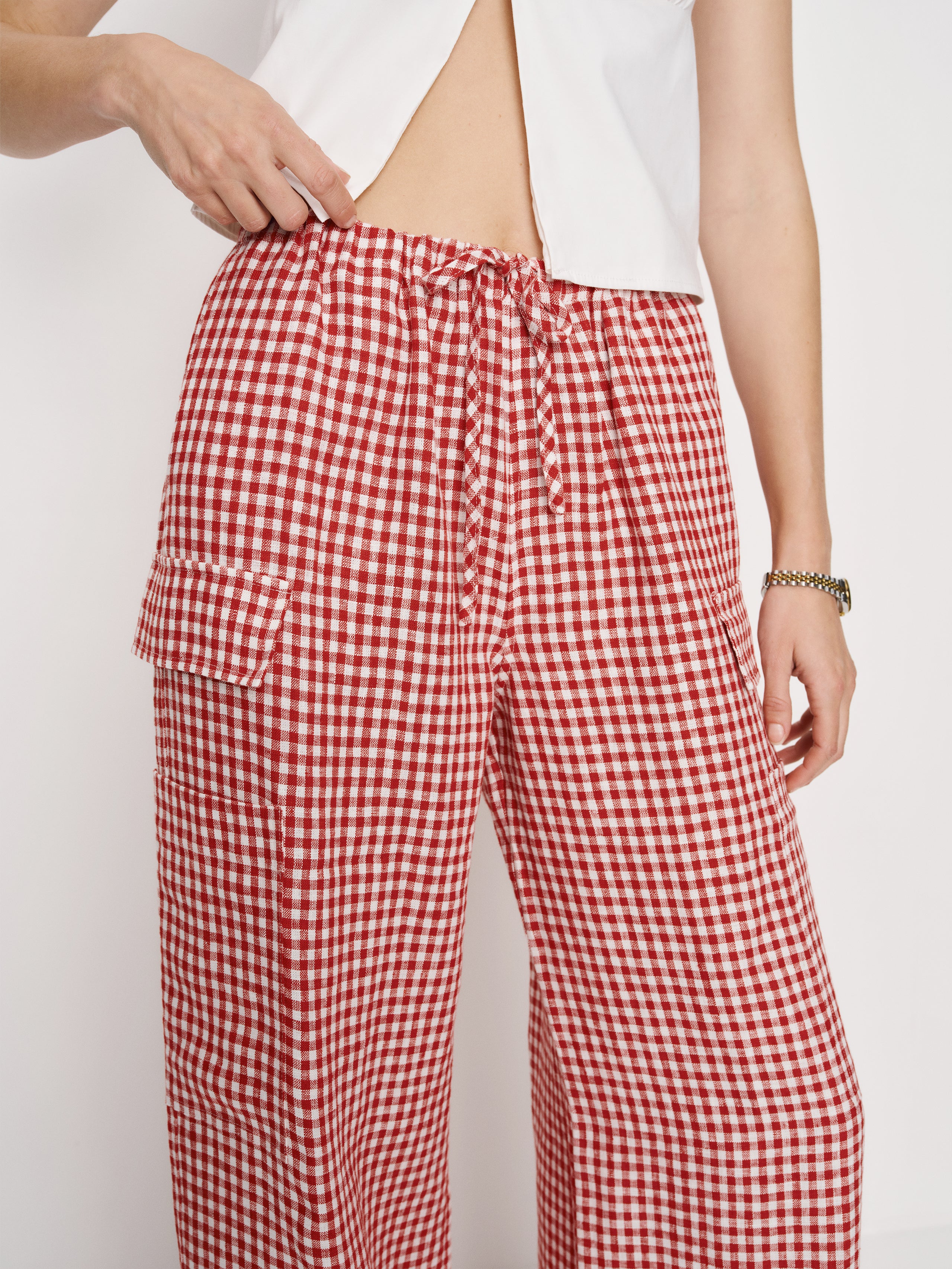 Shop the Ethan Linen Pant from Reformation, a high rise linen pant with an adjustable waist and...