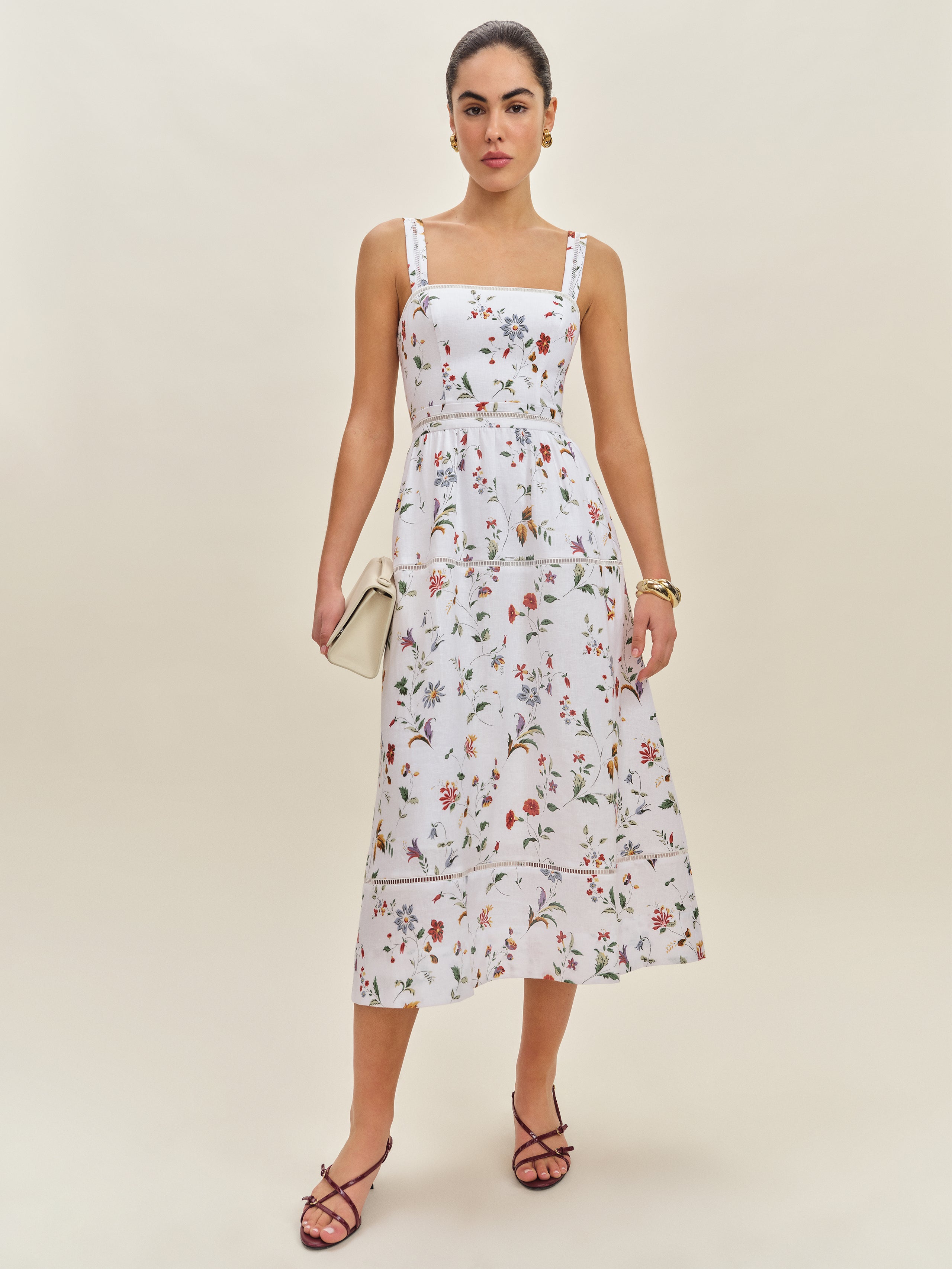 Wear me. Shop the Everett Linen Dress from Reformation, a sleeveless midi dress with a square neckline,...