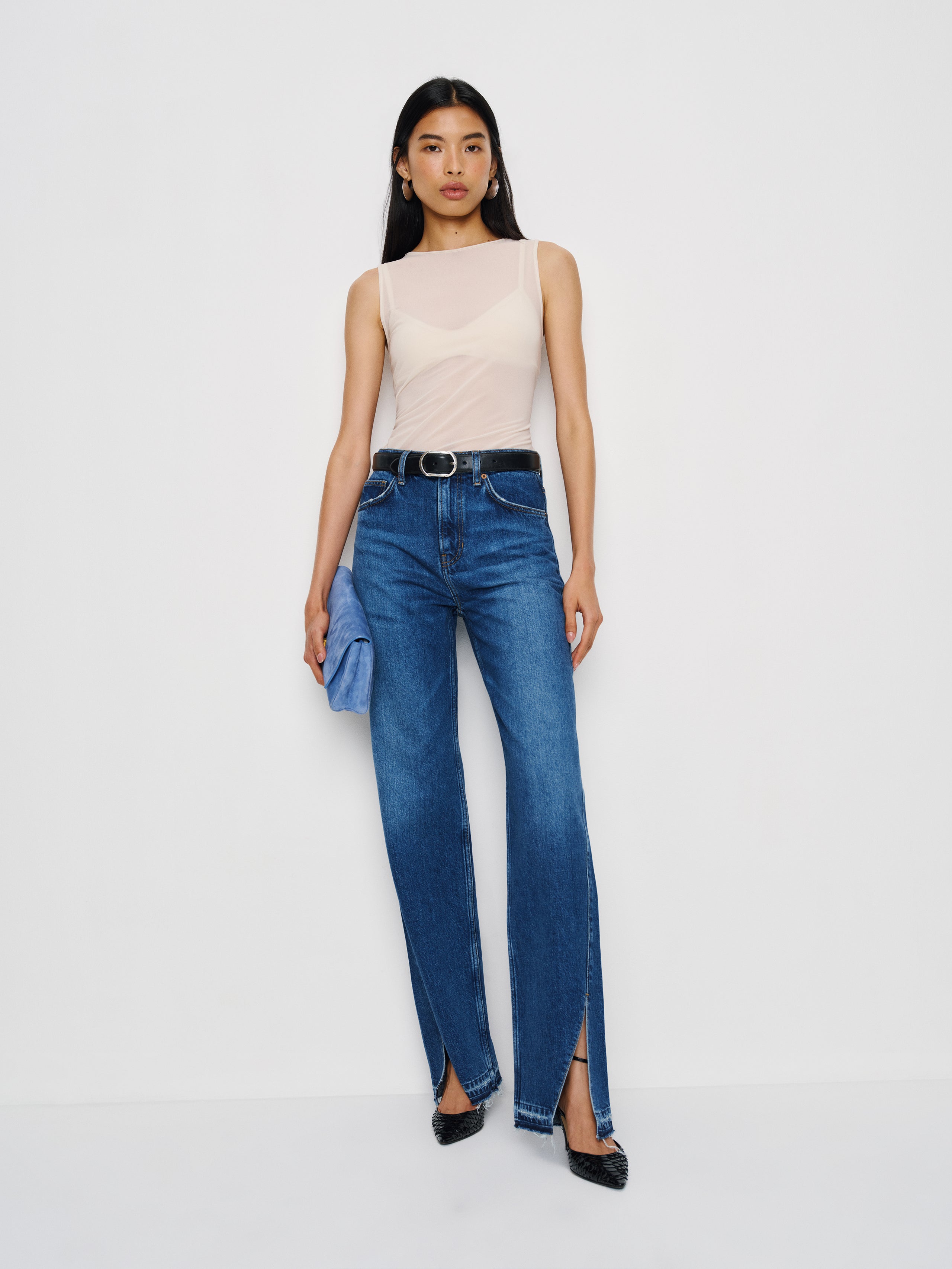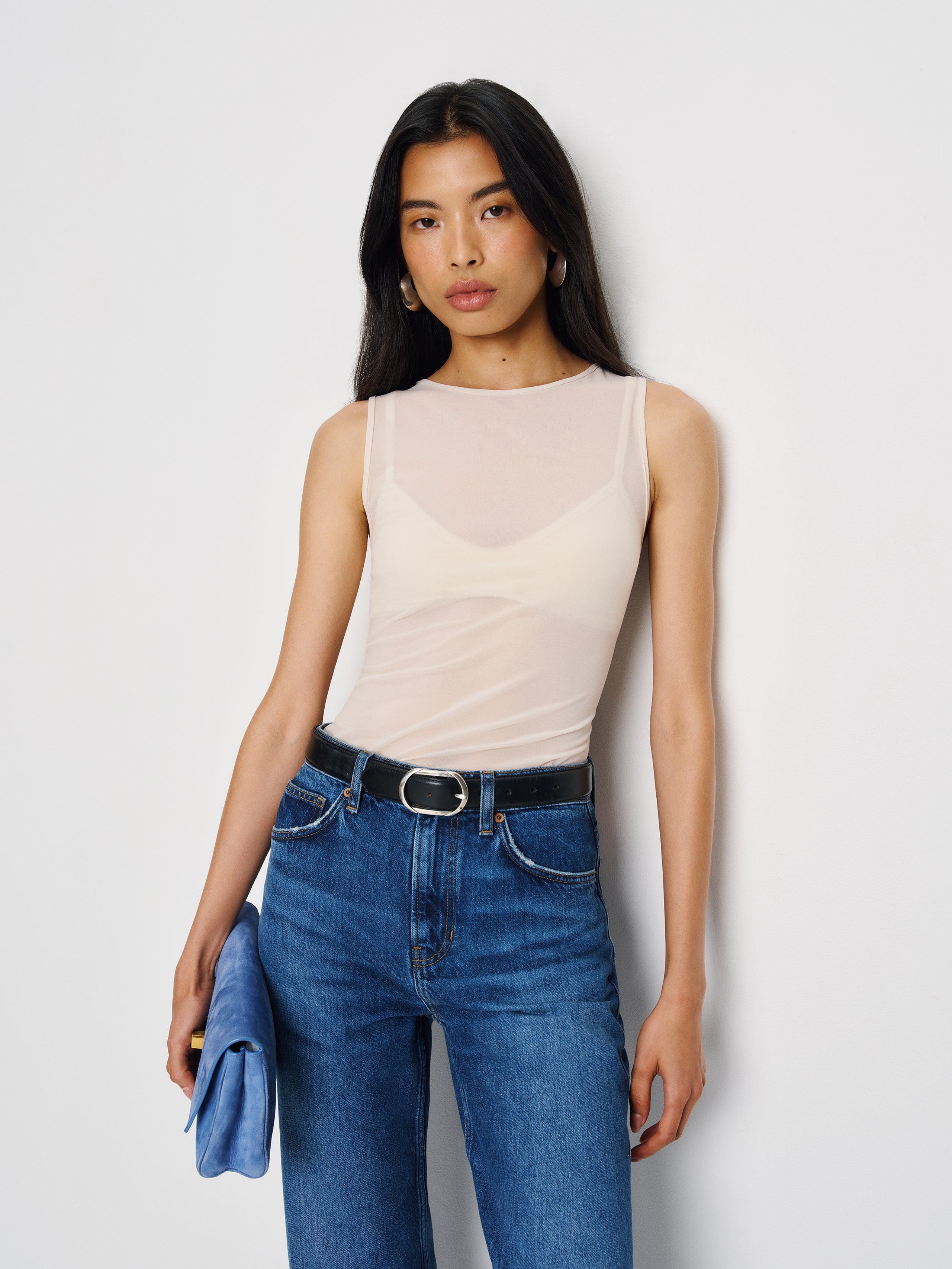 If you're feeling adventurous. Shop the Eyre Knit Top from Reformation, a sleeveless high neck top with a slim fit.