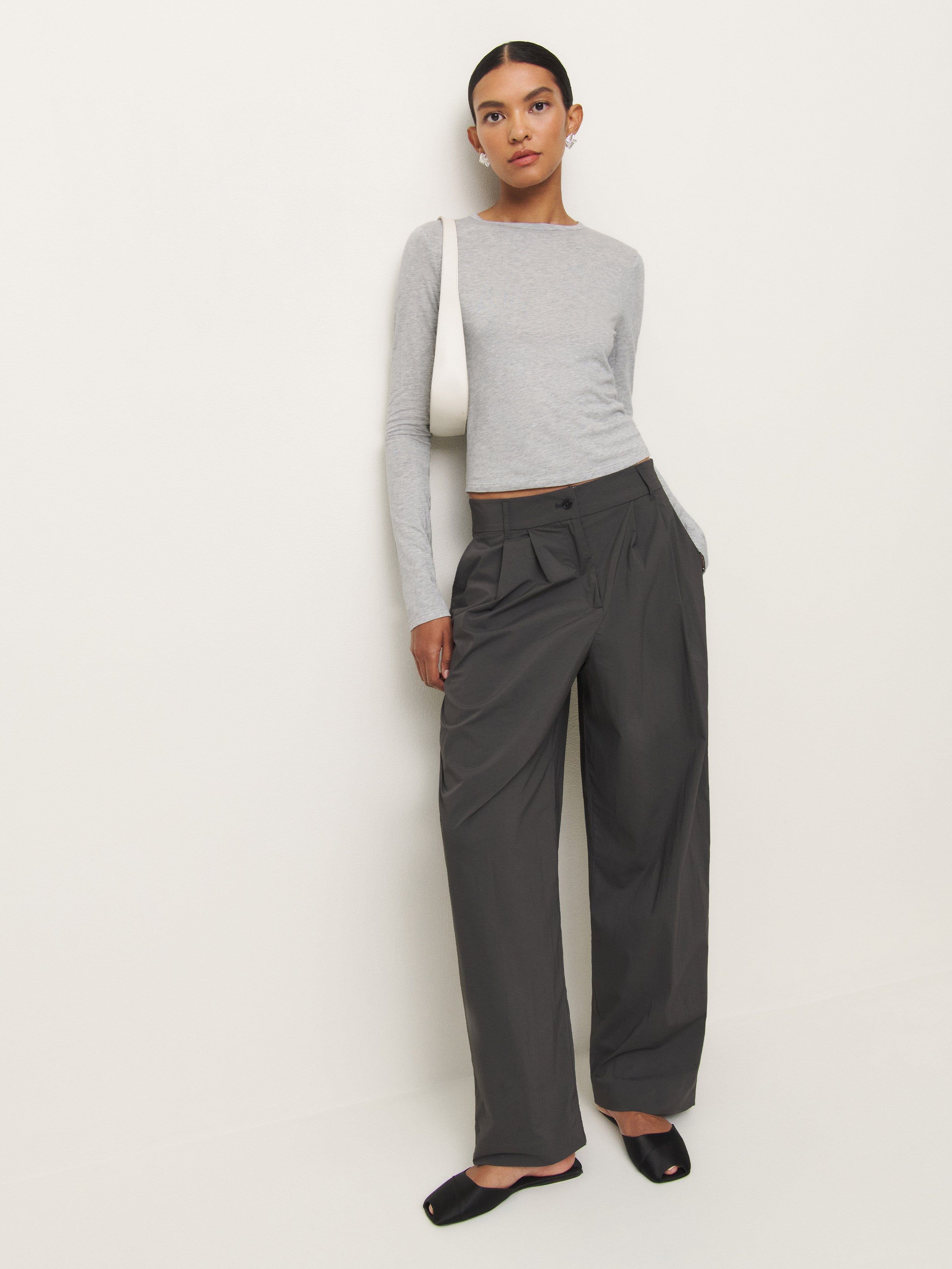 Shop the Ezra Slim Fit Long Sleeve from Reformation, a fitted long-sleeve tee with a crew neckline.