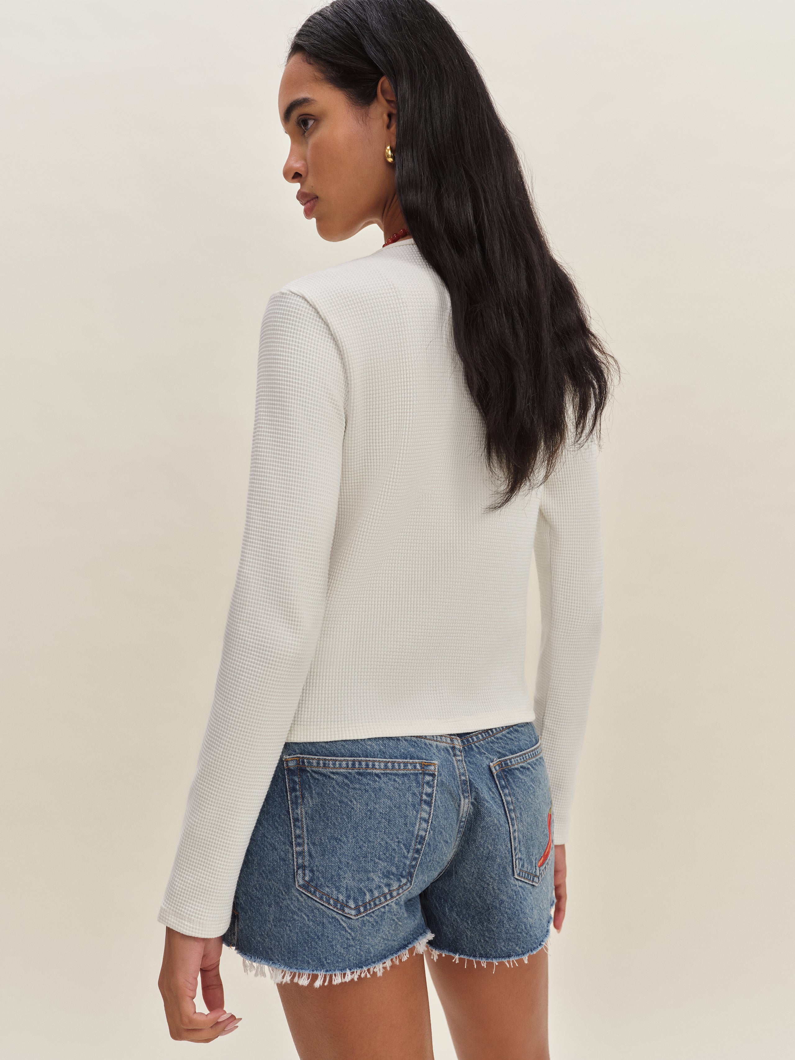 Shop the Ezra Slim Fit Long Sleeve from Reformation, a fitted long-sleeve tee with a crew neckline.