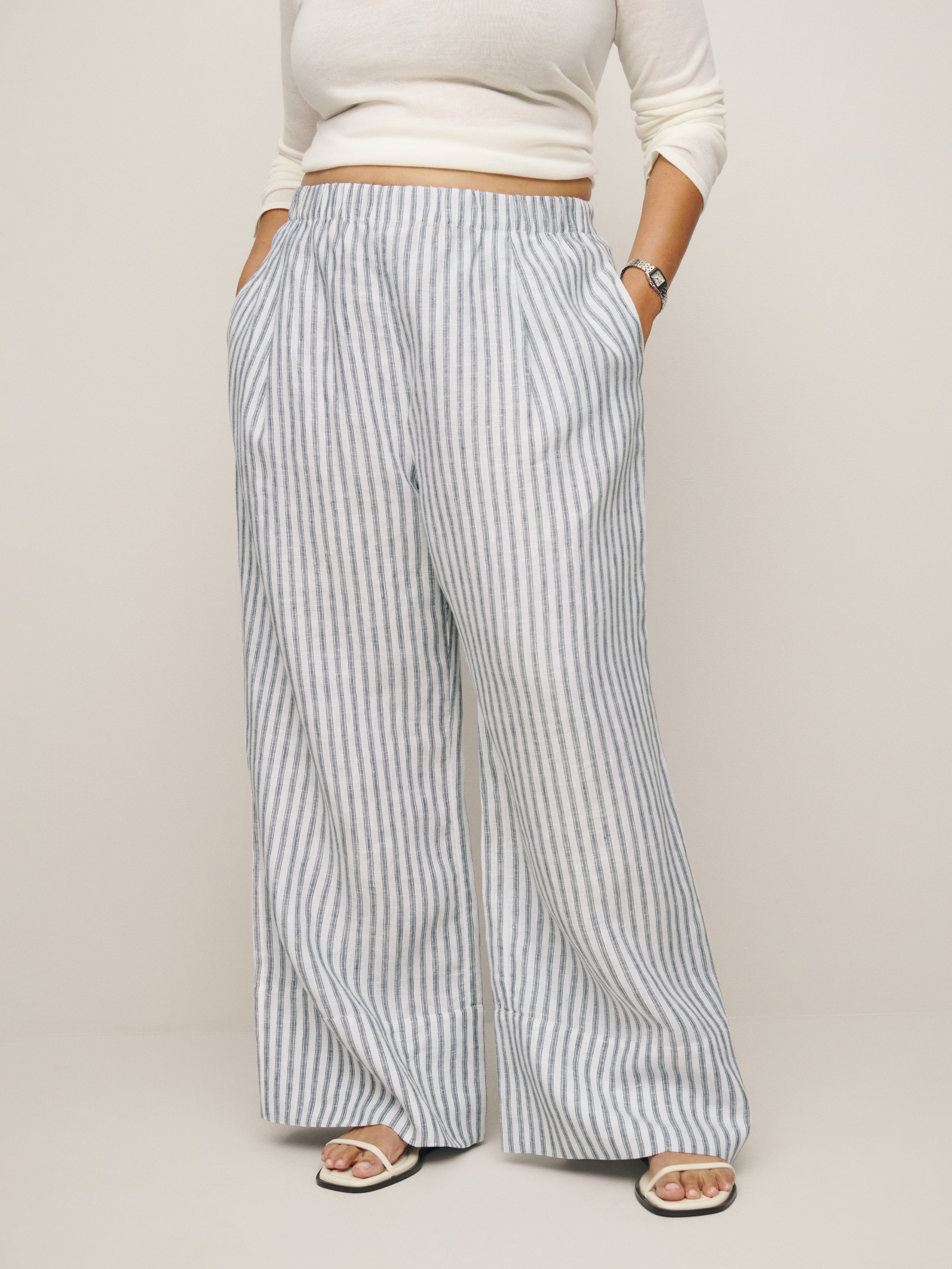 Be a little flexible. Shop the Fernando Linen Wide Leg Pant ES from Reformation, a mid rise...