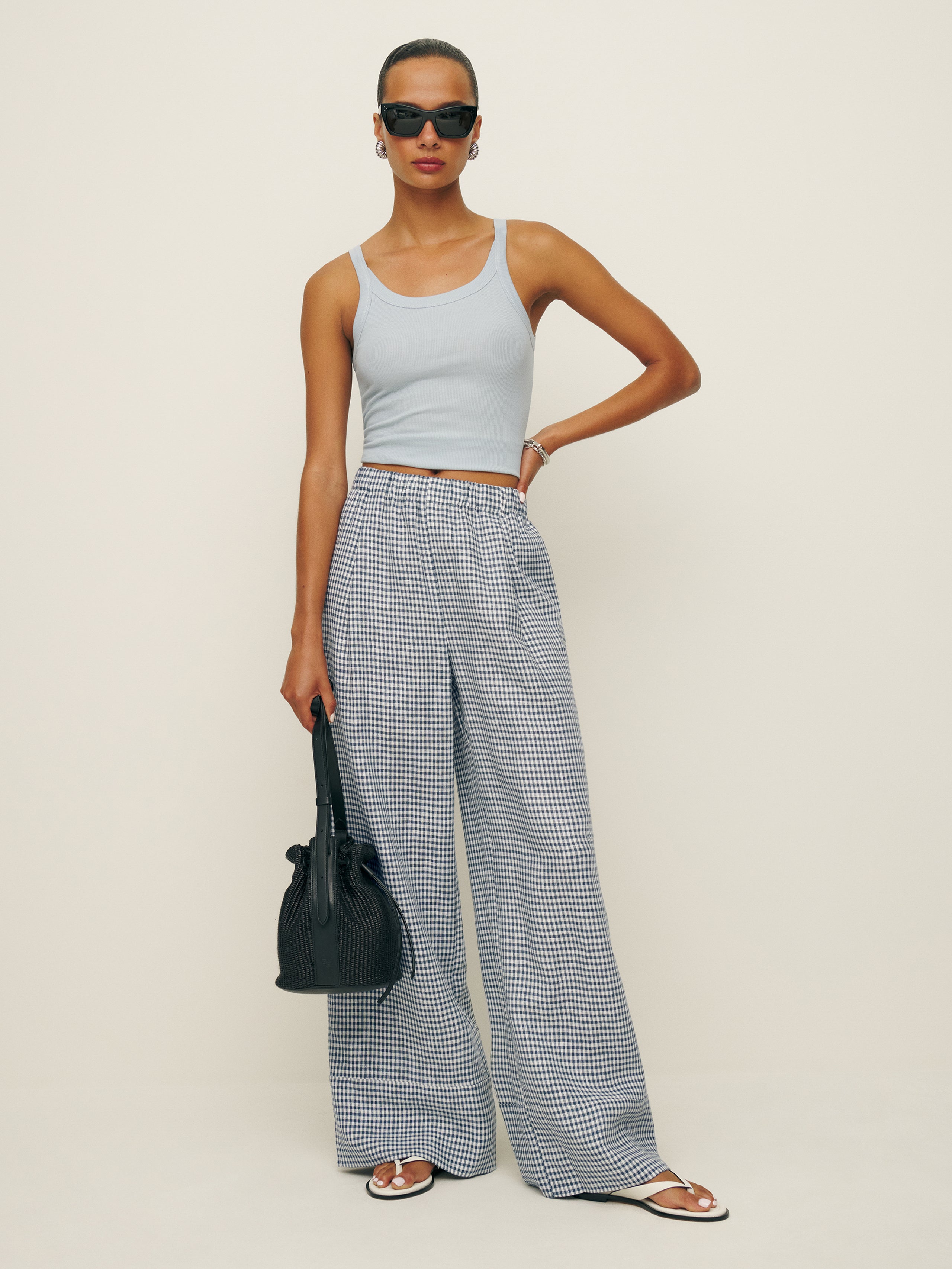 Be a little flexible. Shop the Fernando Linen Wide Leg Pant from Reformation, is a mid rise...