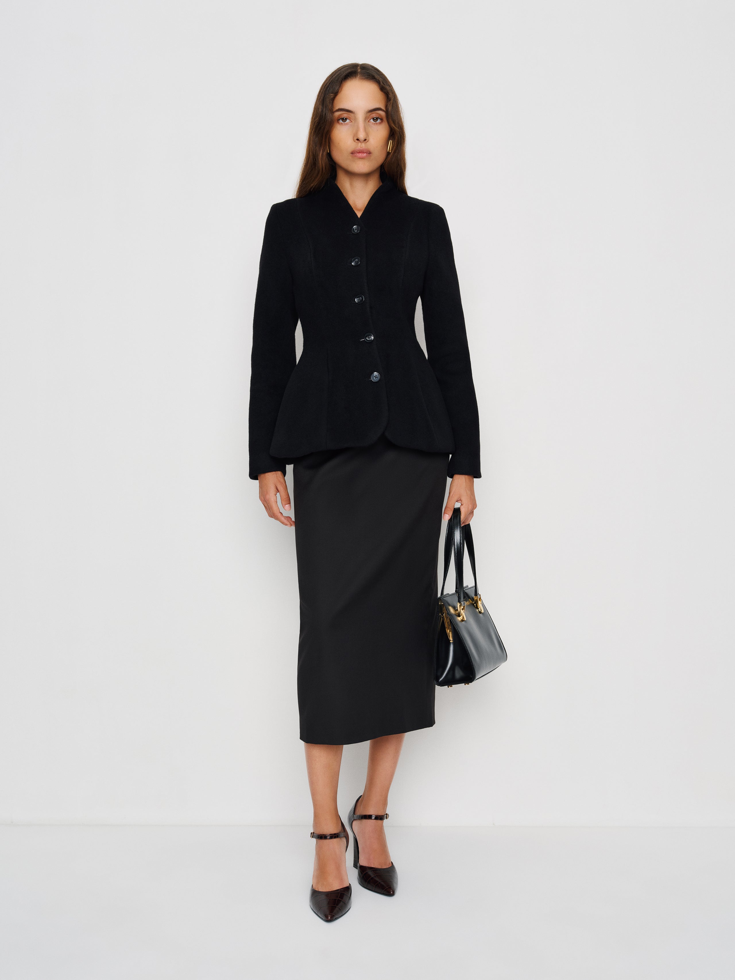Wear the skirt. Shop the Fig Preserve Skirt from Reformation, a mid rise skirt with a column fit.