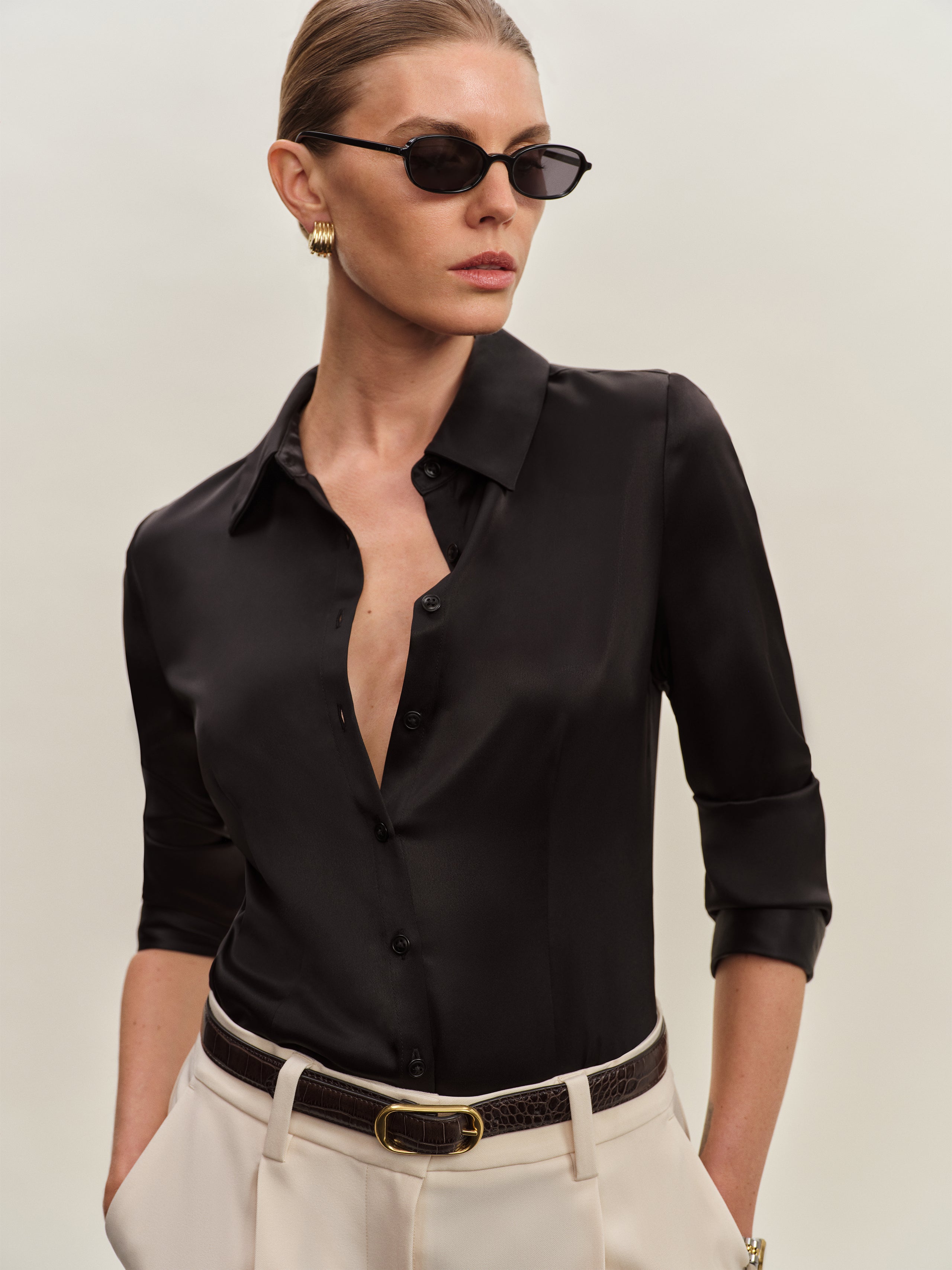 For your eyes only. Shop the Flore Sunglasses from Reformation, a 90’s inspired rectangular oval-shaped silhouette with a thin frame.