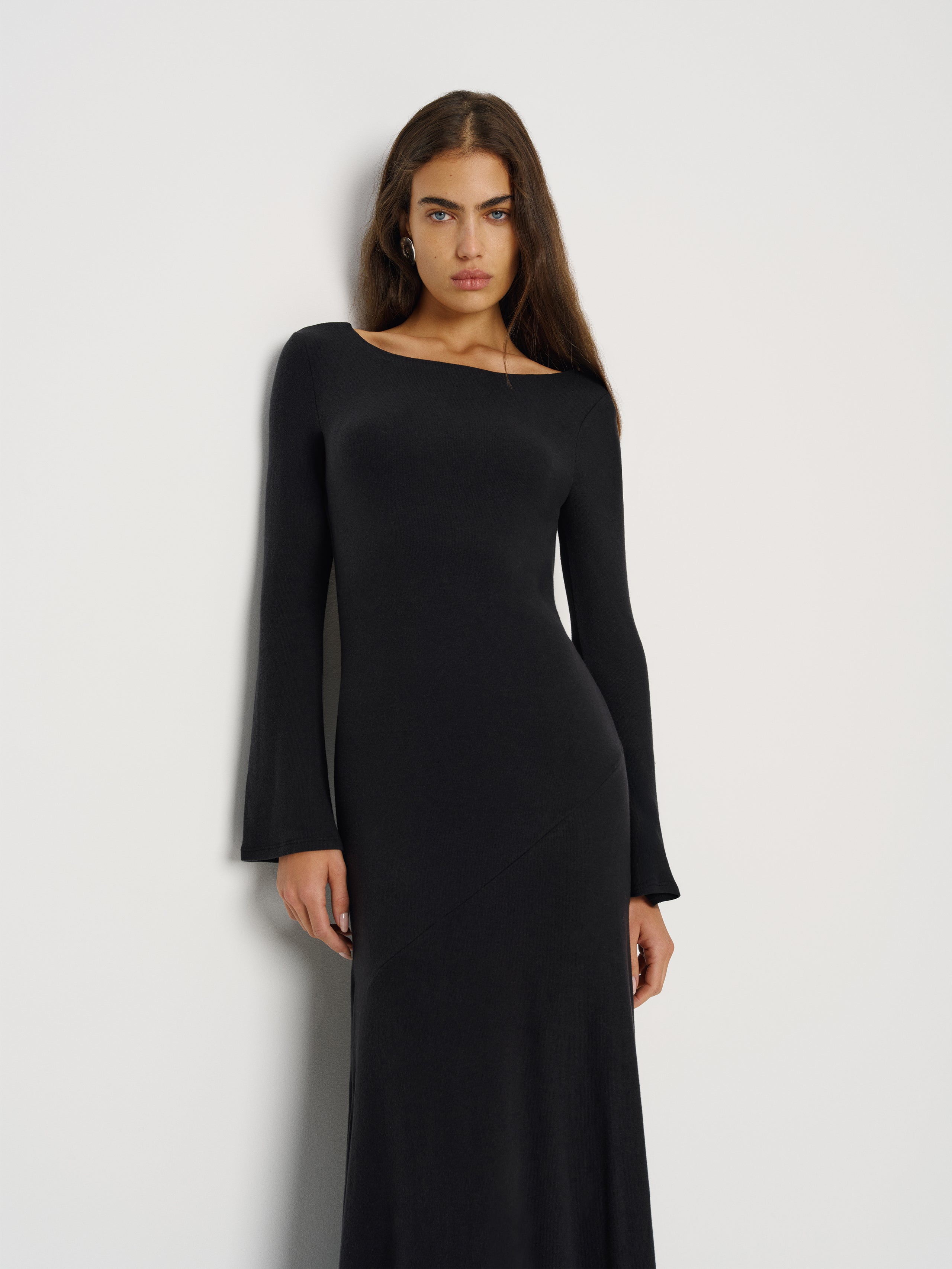 Who, me. Shop the Florence Knit Dress from Reformation, a long-sleeved maxi dress with a boat neckline...