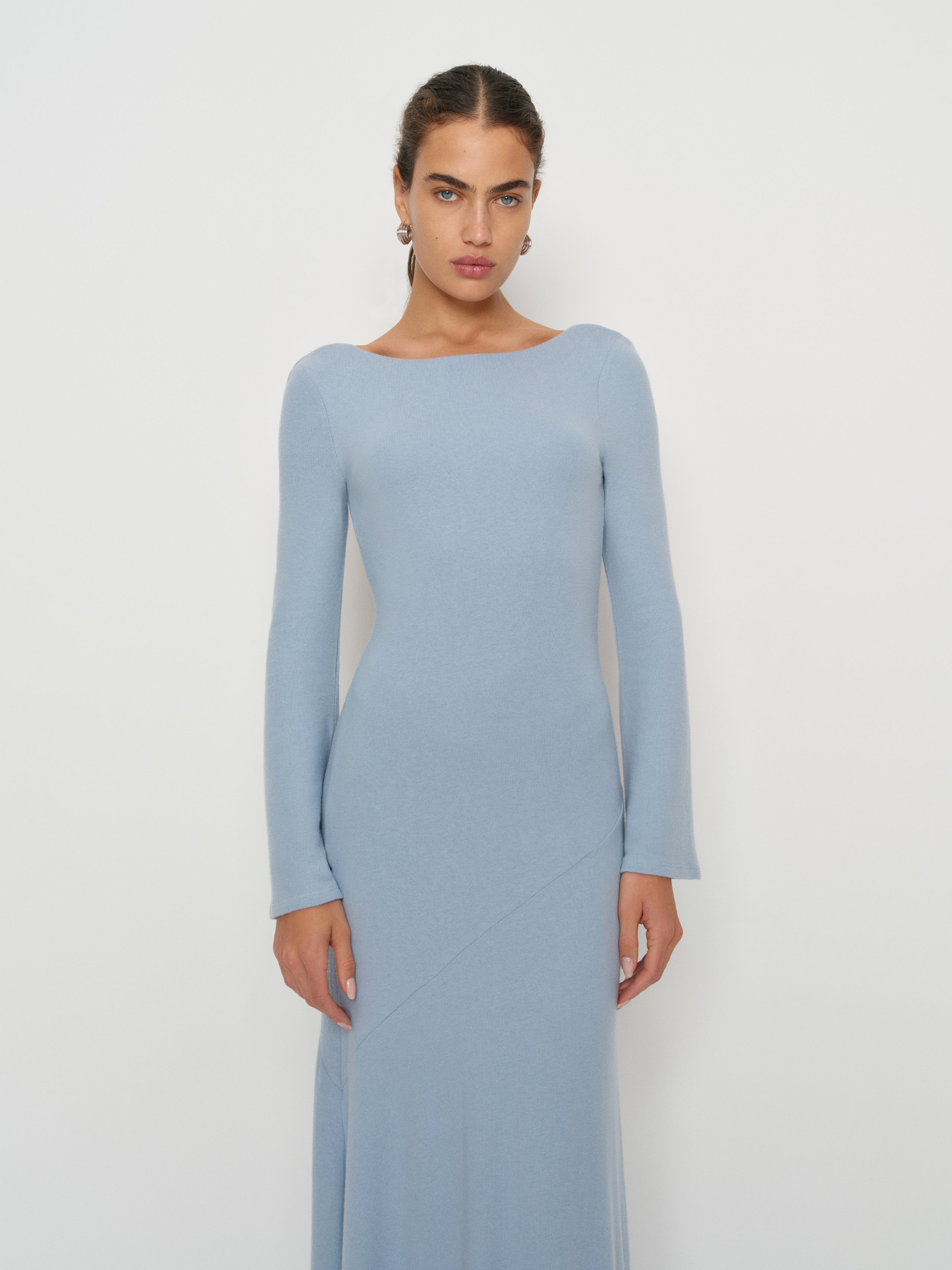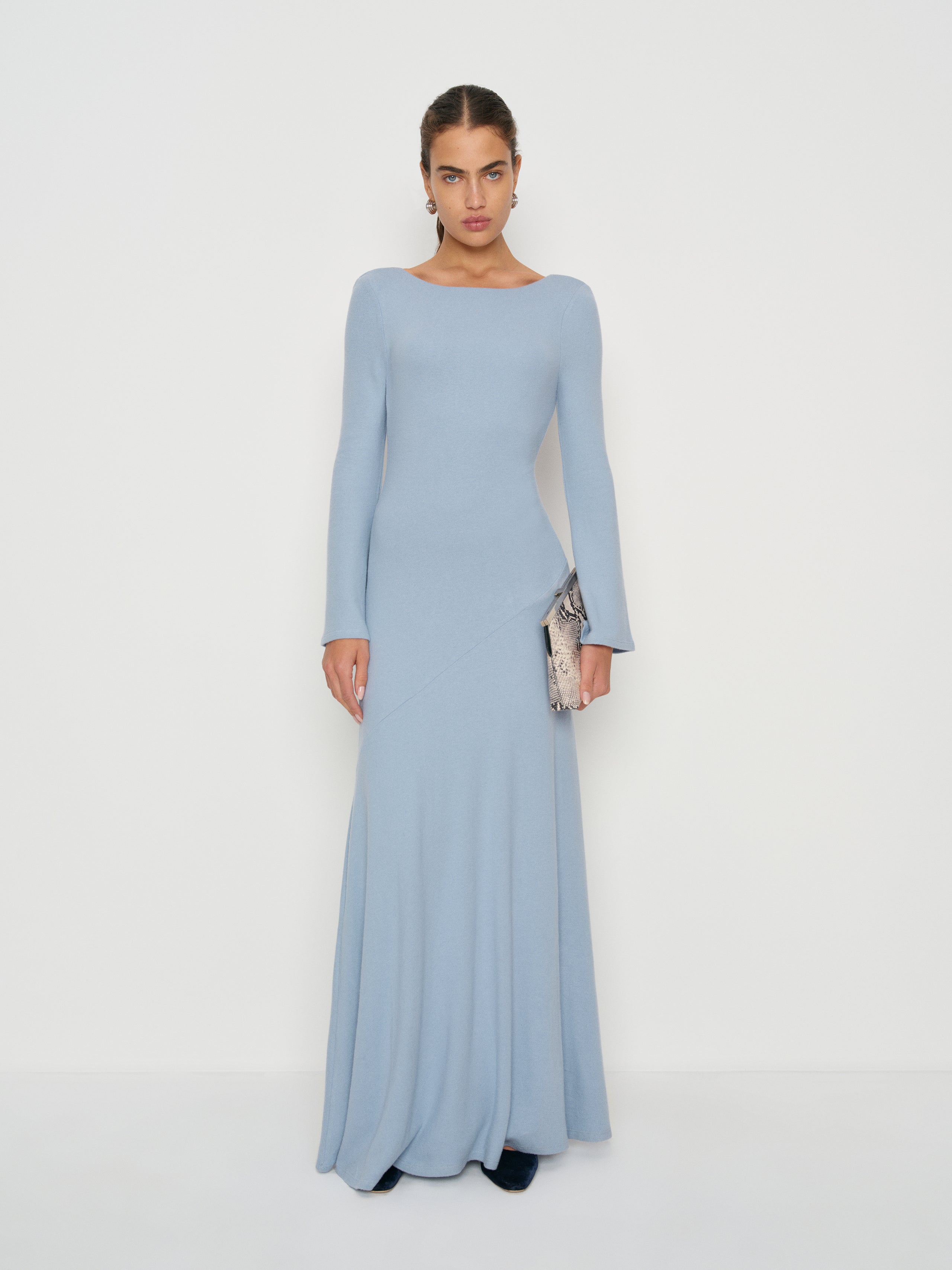 Who, me. Shop the Florence Knit Dress from Reformation, a long-sleeved maxi dress with a boat neckline and an open back. Sleek and sexy, if you need that.