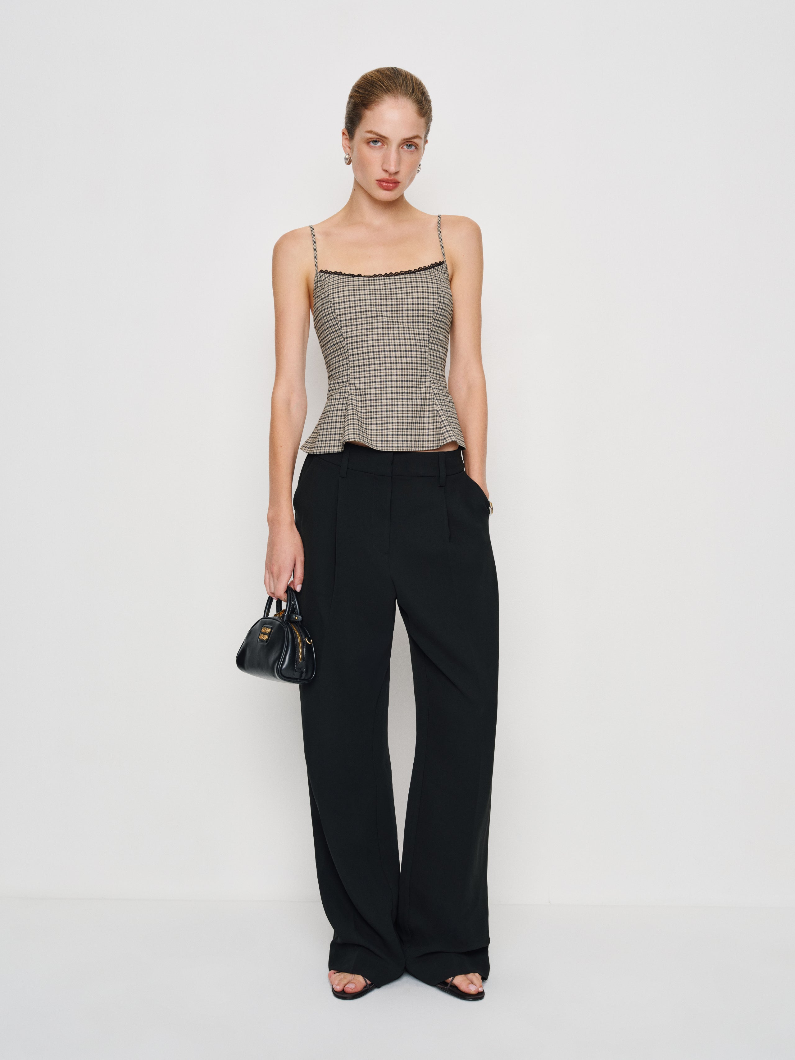 Up top. Shop the Genevieve Top from Reformation, a sleeveless top with a curved neckline, lace trim...