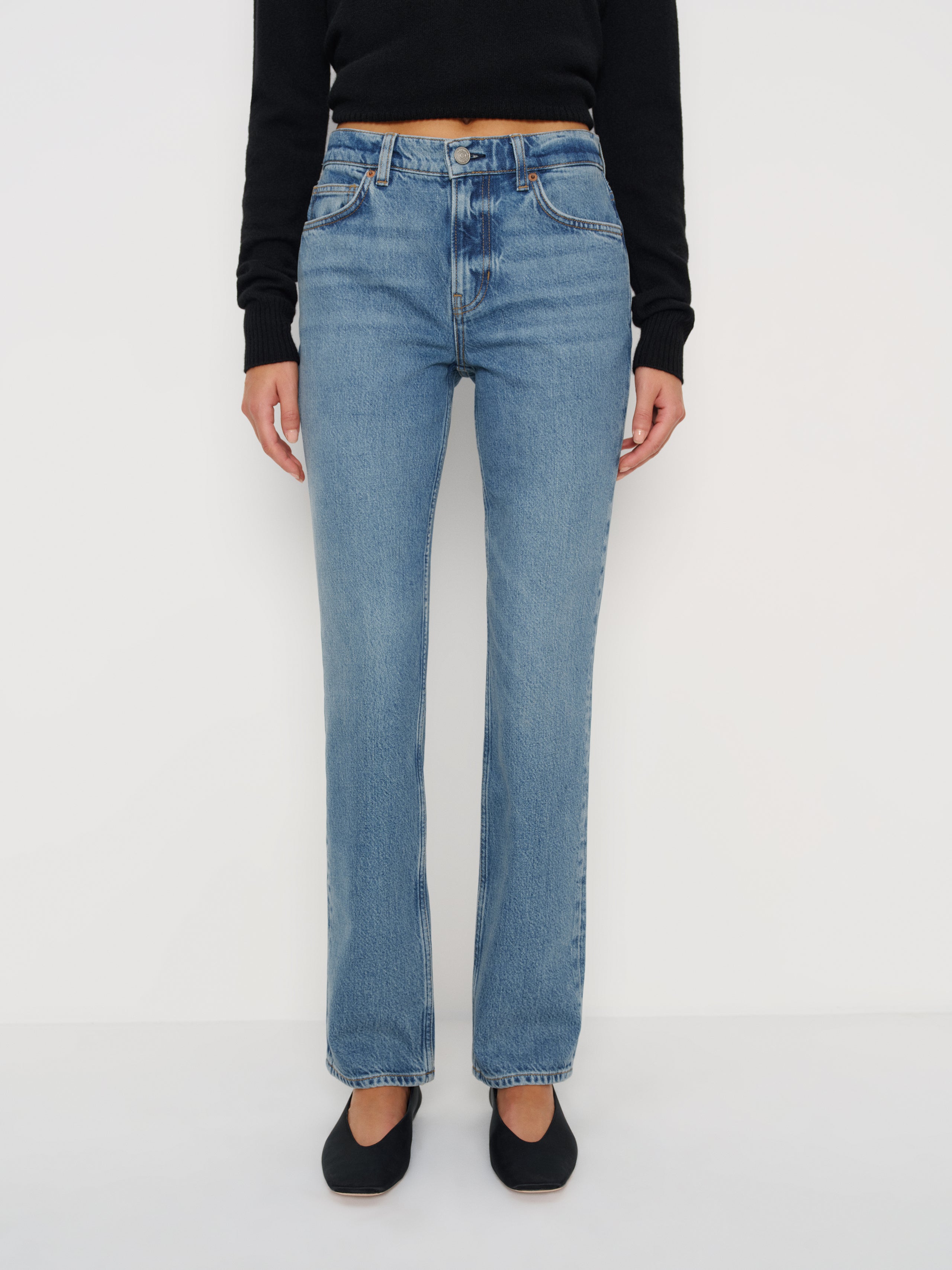 Denim time. Shop the Greer Mid Rise Straight Jeans from Reformation, a mid-rise jean with a straight...
