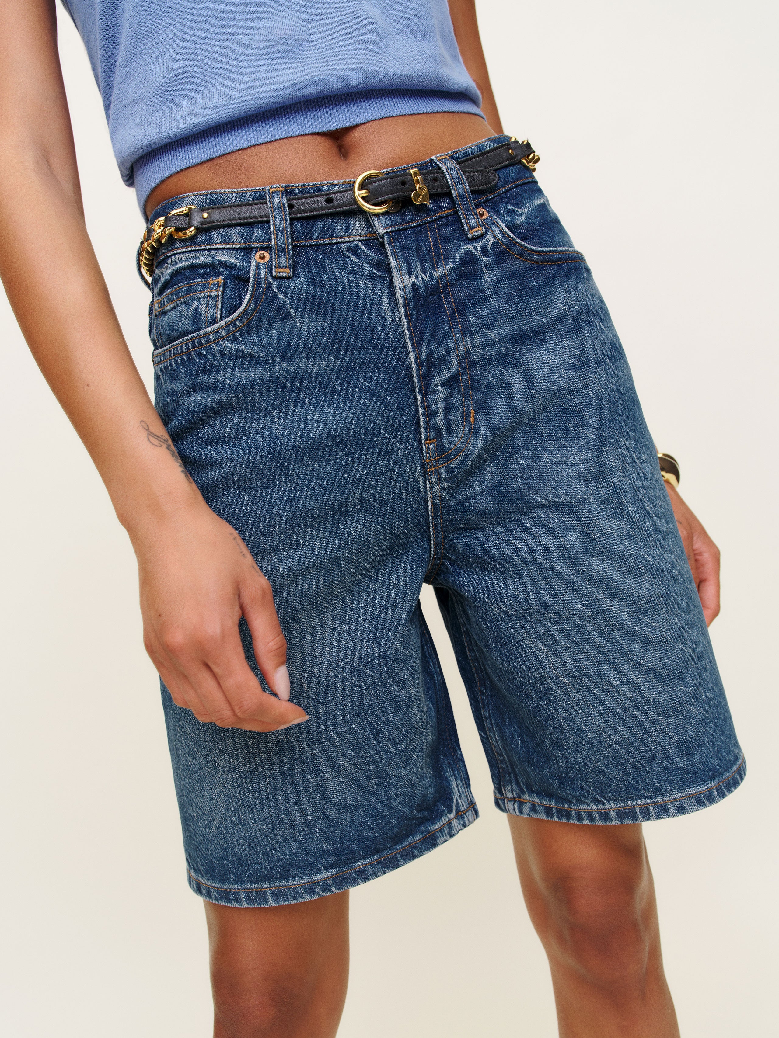 Let those legs out. Shop the Hale High Rise 8” Jean Shorts from Reformation, a high-rise denim short with a relaxed fit.