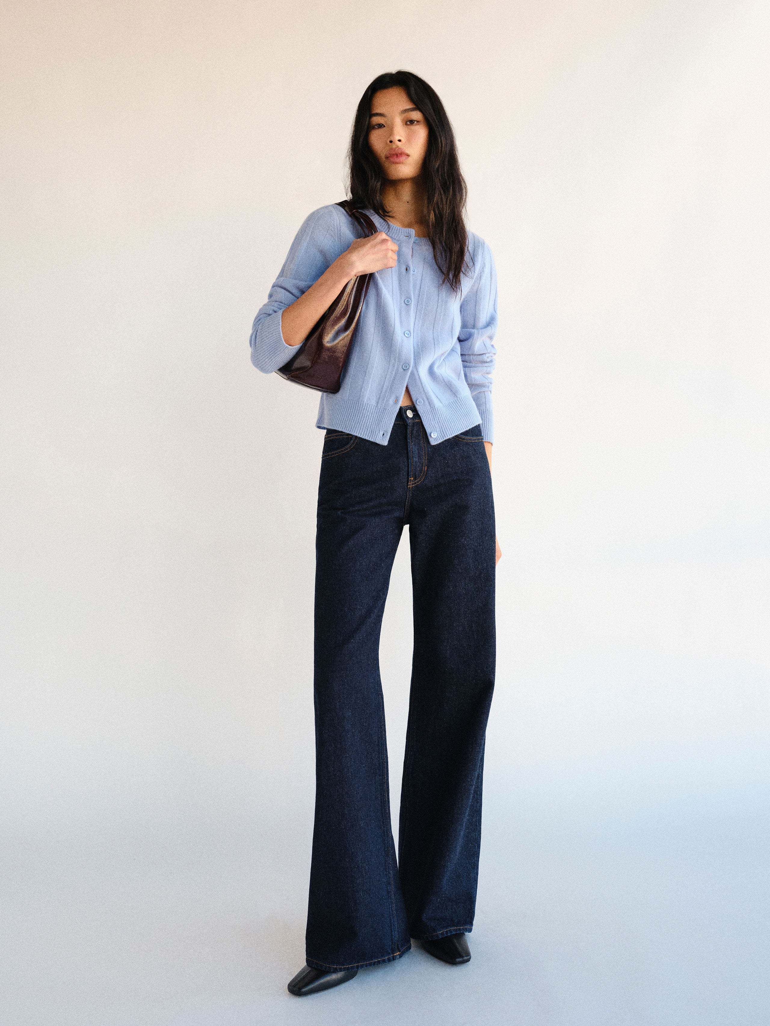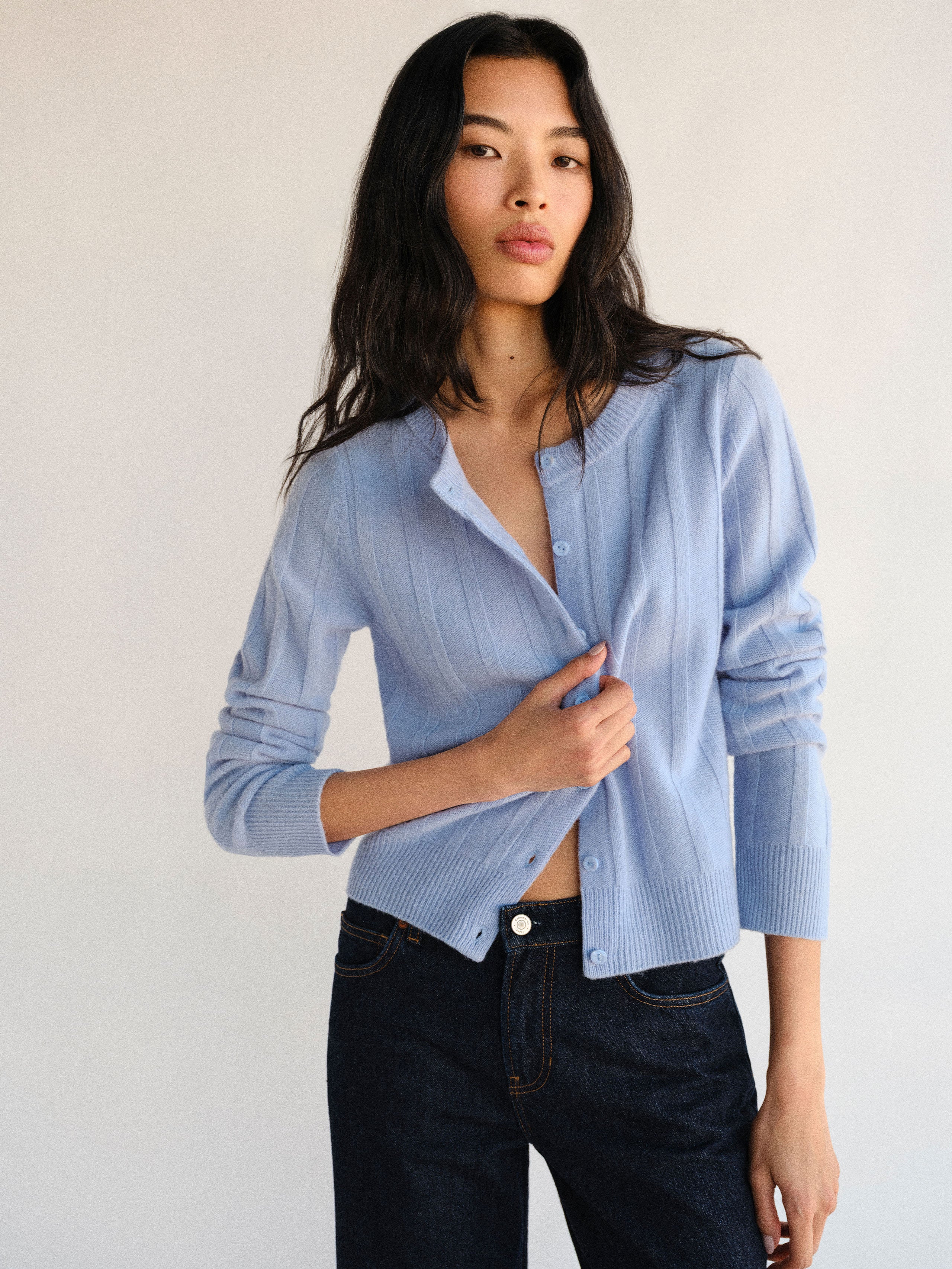 Cozy up. Shop the Hannah Crew Cardigan from Reformation, a wool cardigan with a button front and...