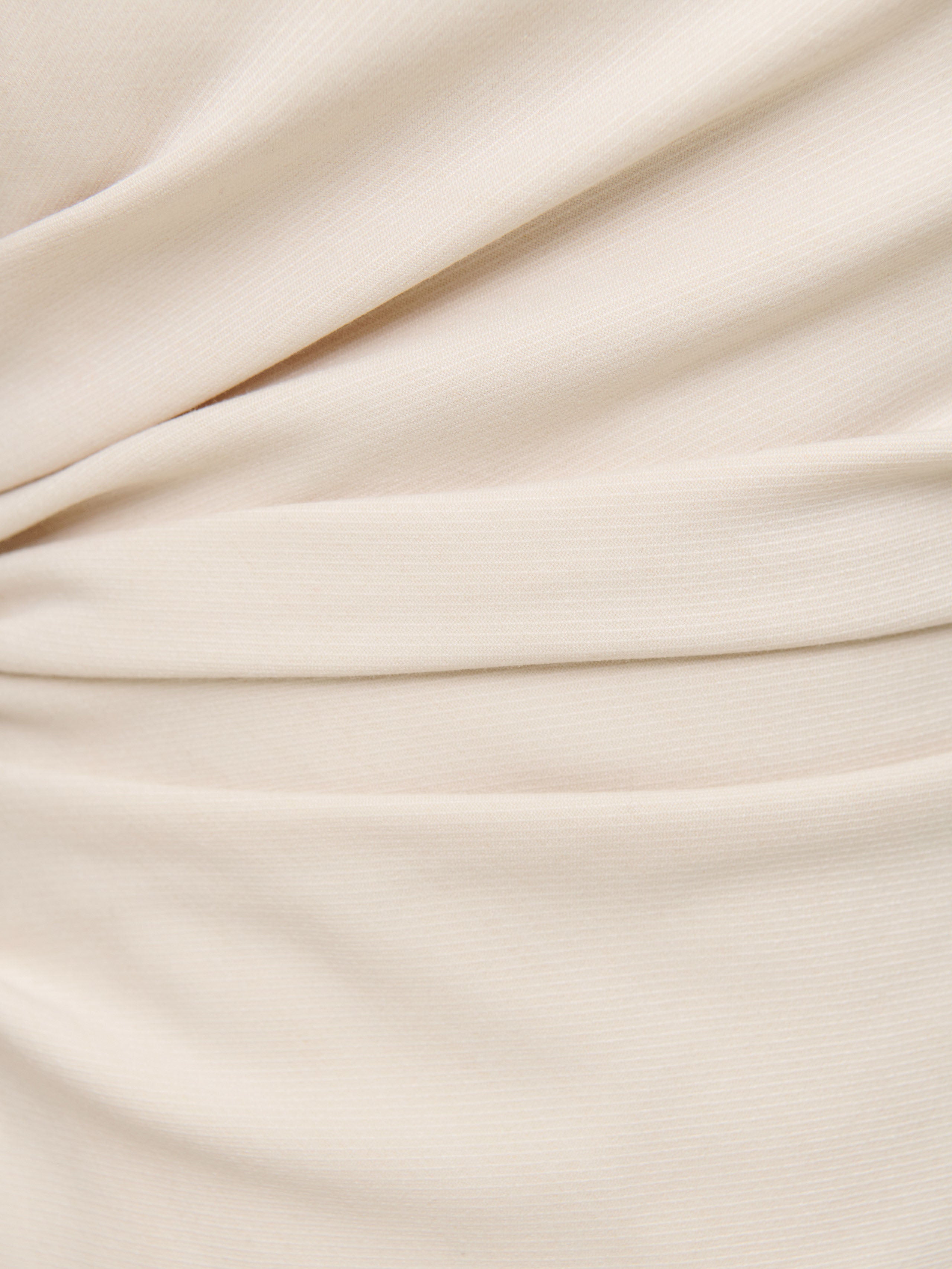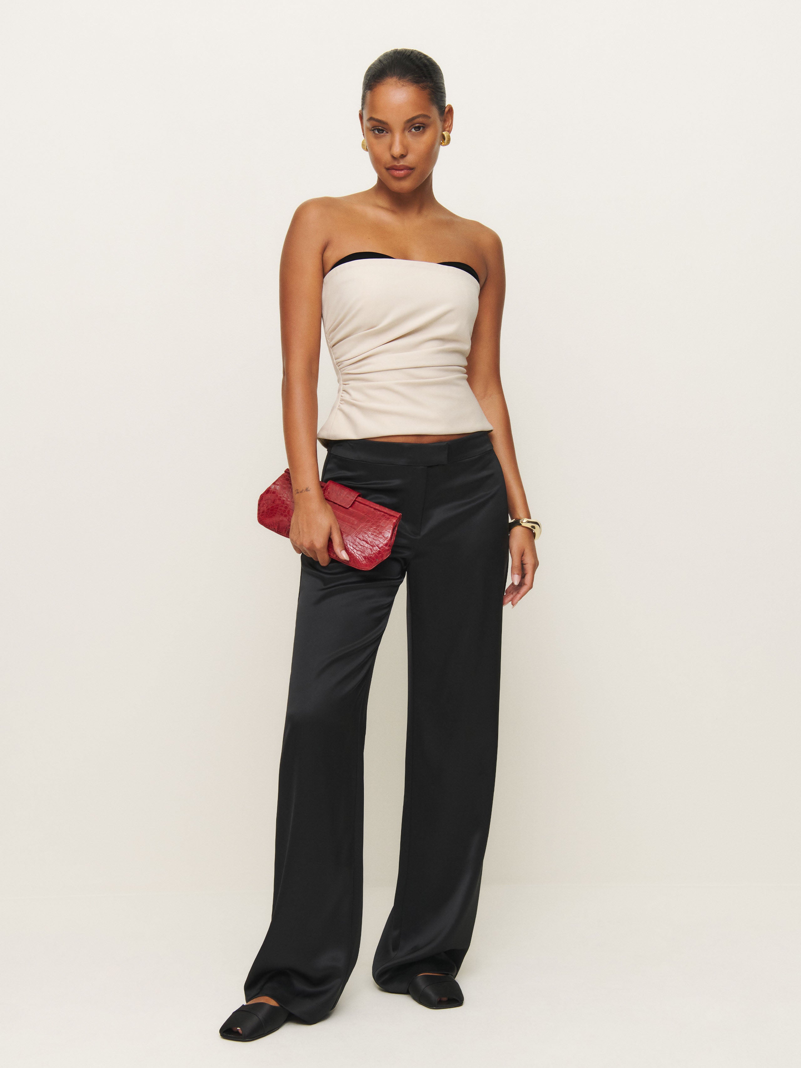 Up top. Shop the Haylee Top from Reformation, a strapless top with ruching throughout and a peekaboo detail at the neckline.