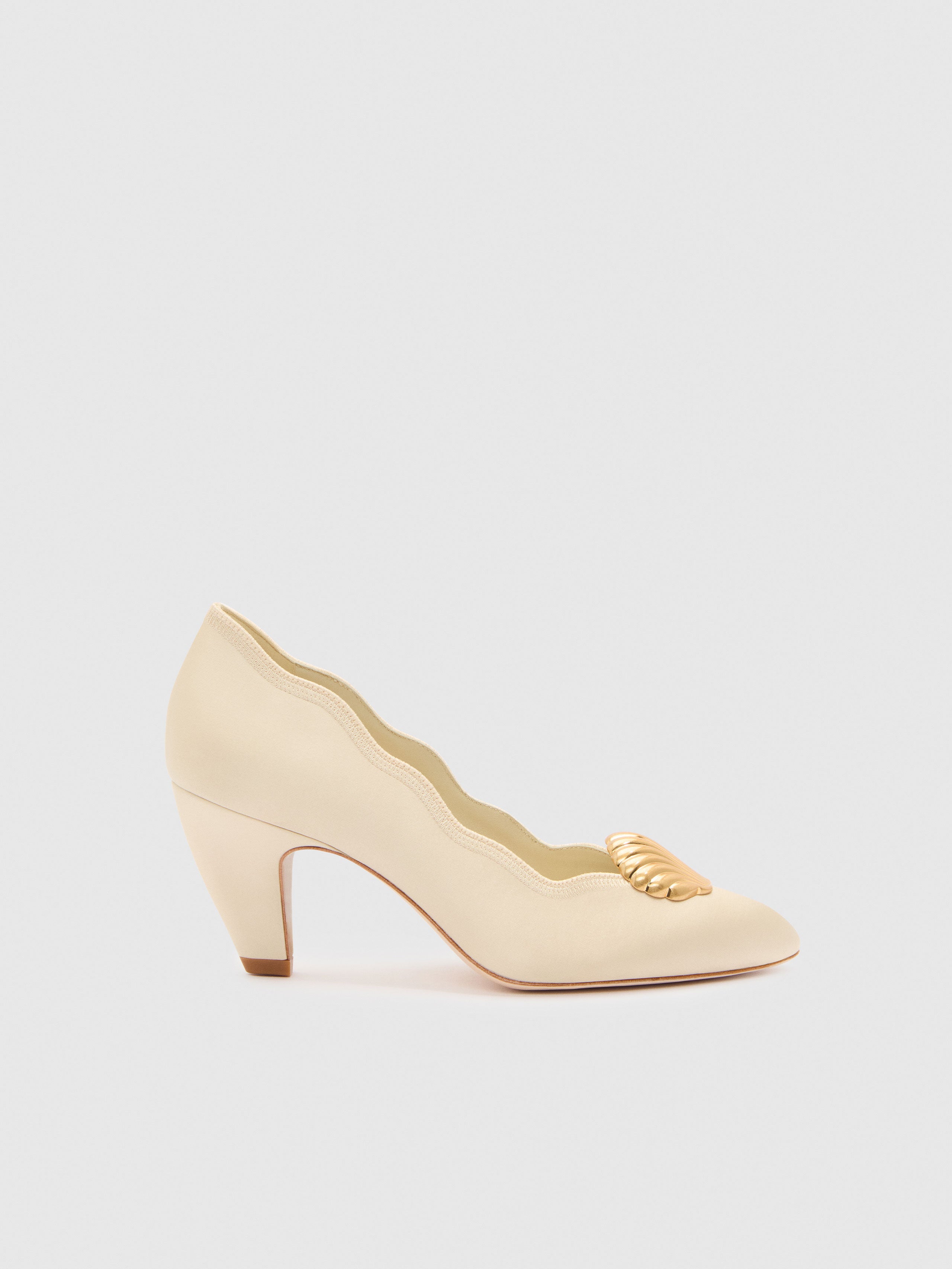 Wear me. Shop the Henrietta Pump from Reformation, a closed toe pump with scalloped edges and a...