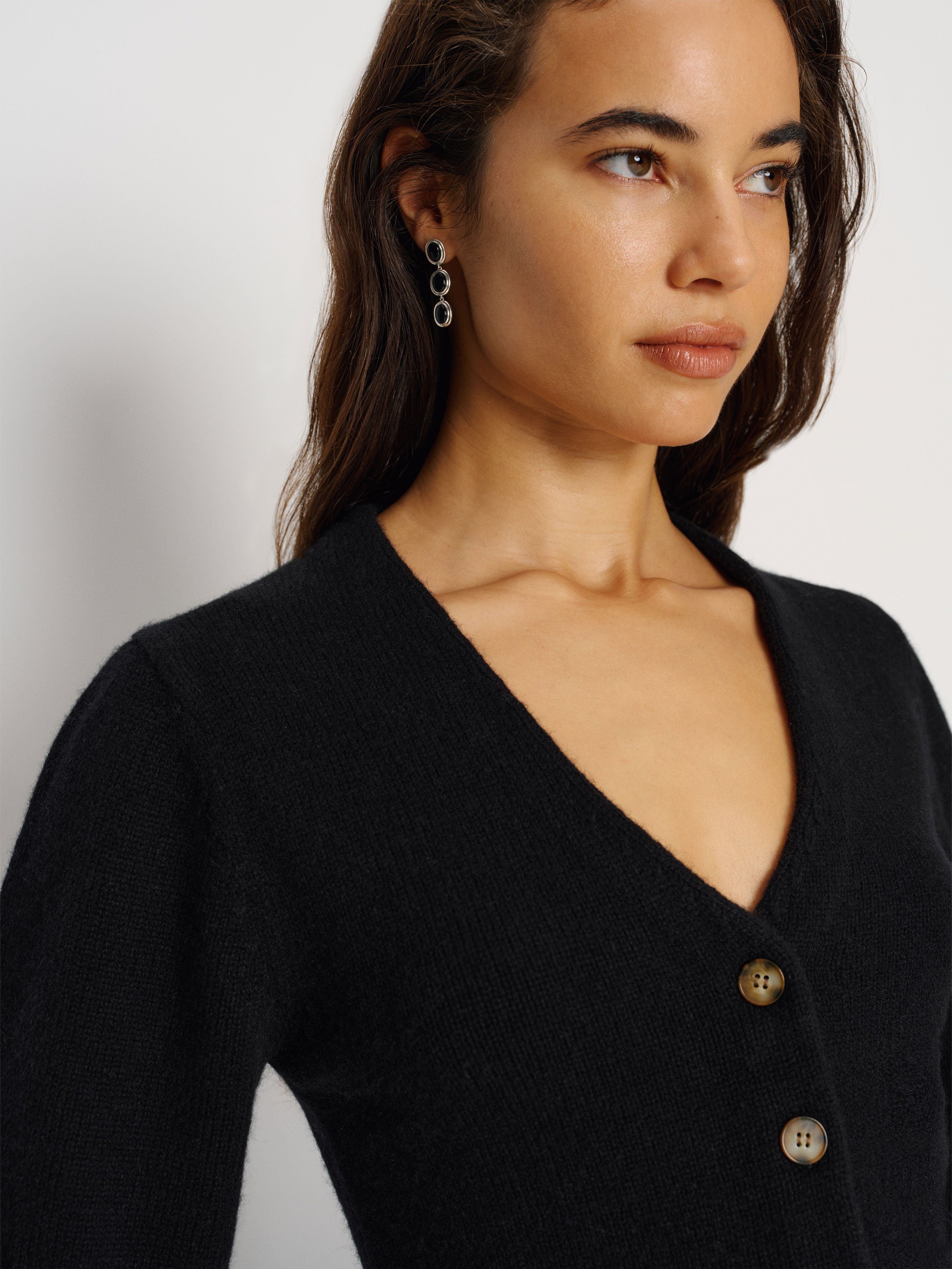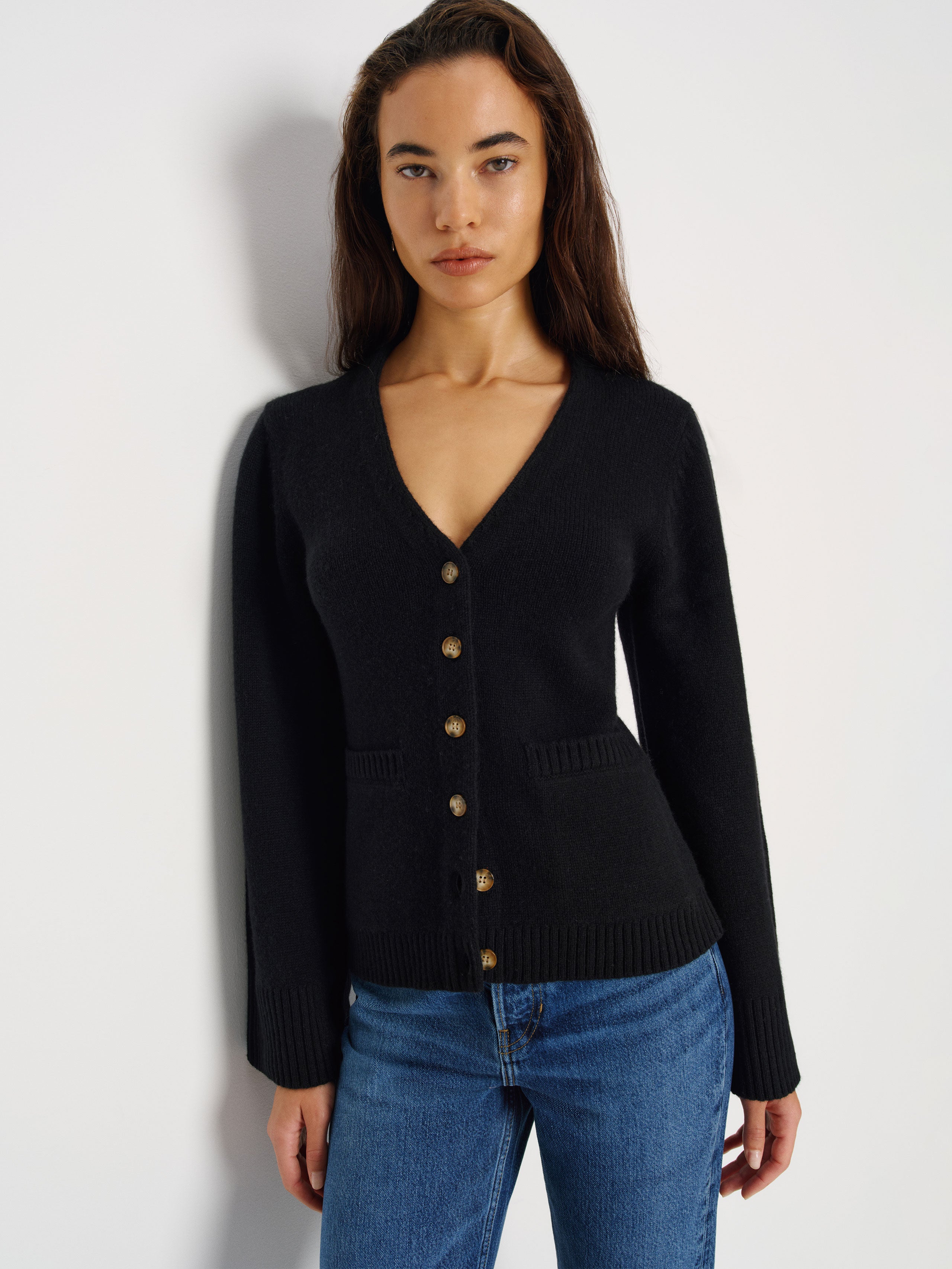Loves a layer. Shop the Holden Regenerative Wool Cardigan from Reformation, a sweater with a button front and a V-neckline. What good outfits are made of.