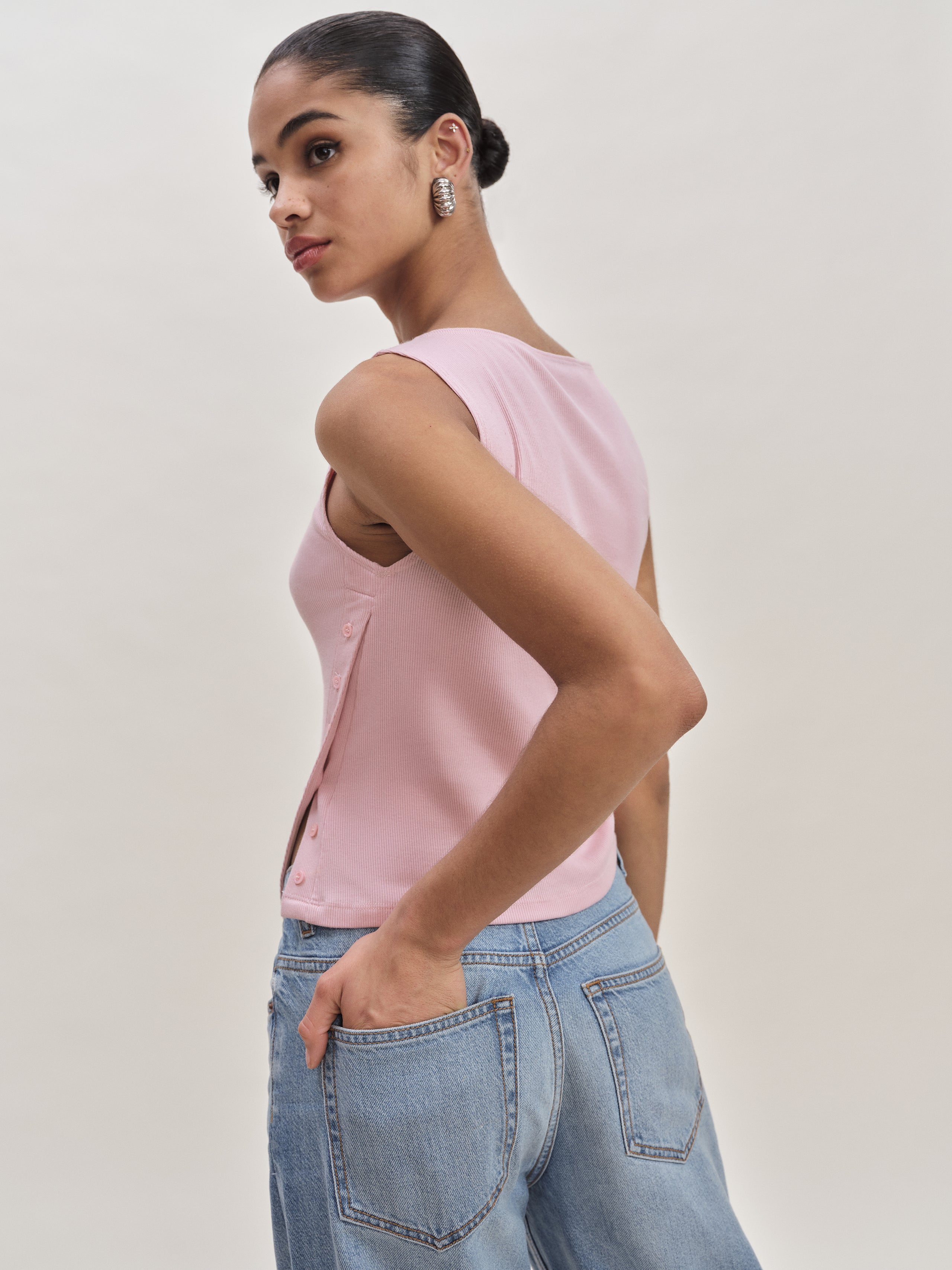 Up top. Shop the Hudson Knit Top from Reformation, a sleeveless top with an asymmetrical hem and...