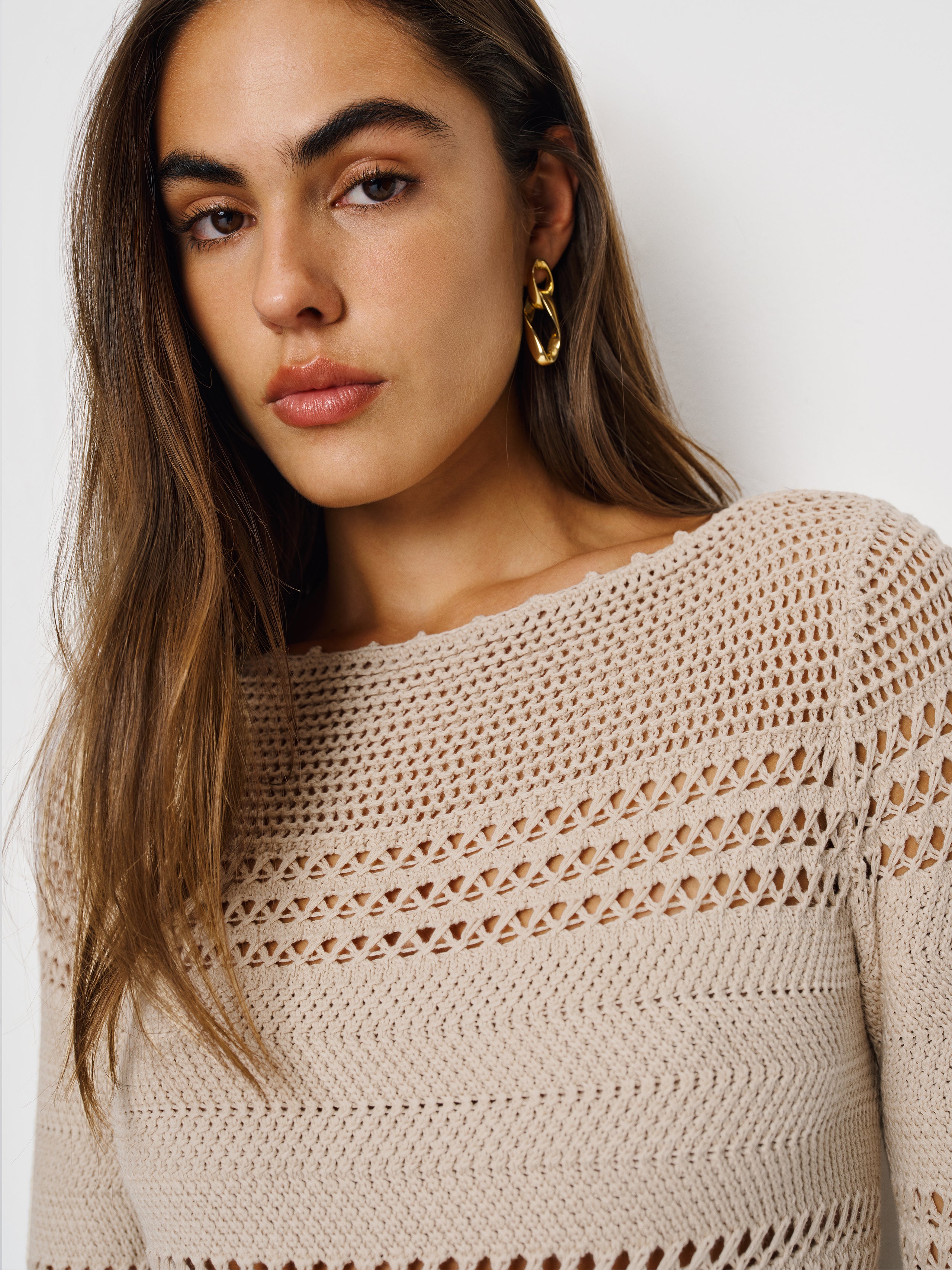 No nonsense. Shop the Inda Open Knit Mini Dress from Reformation, a mini-length dress with long bell...