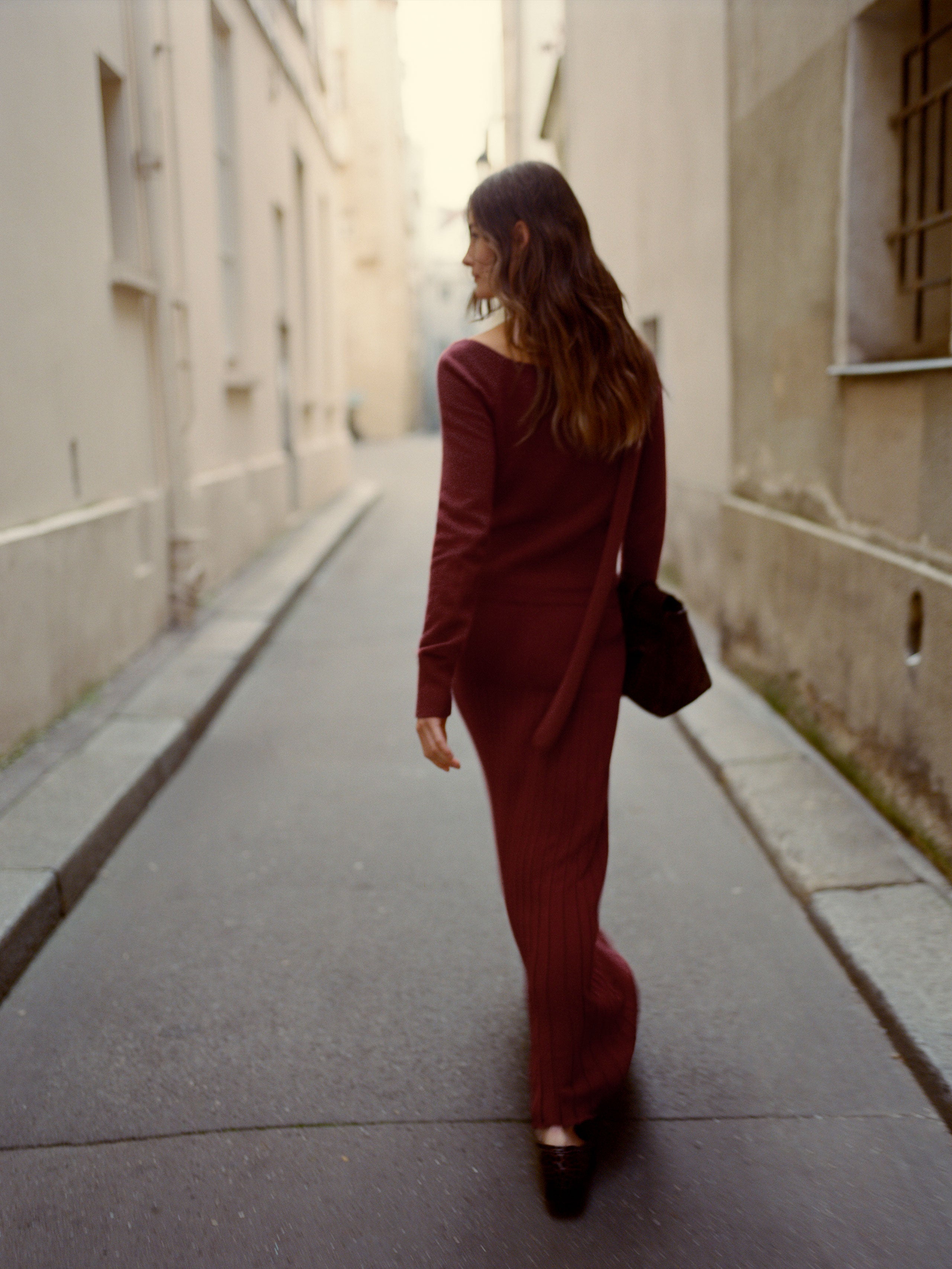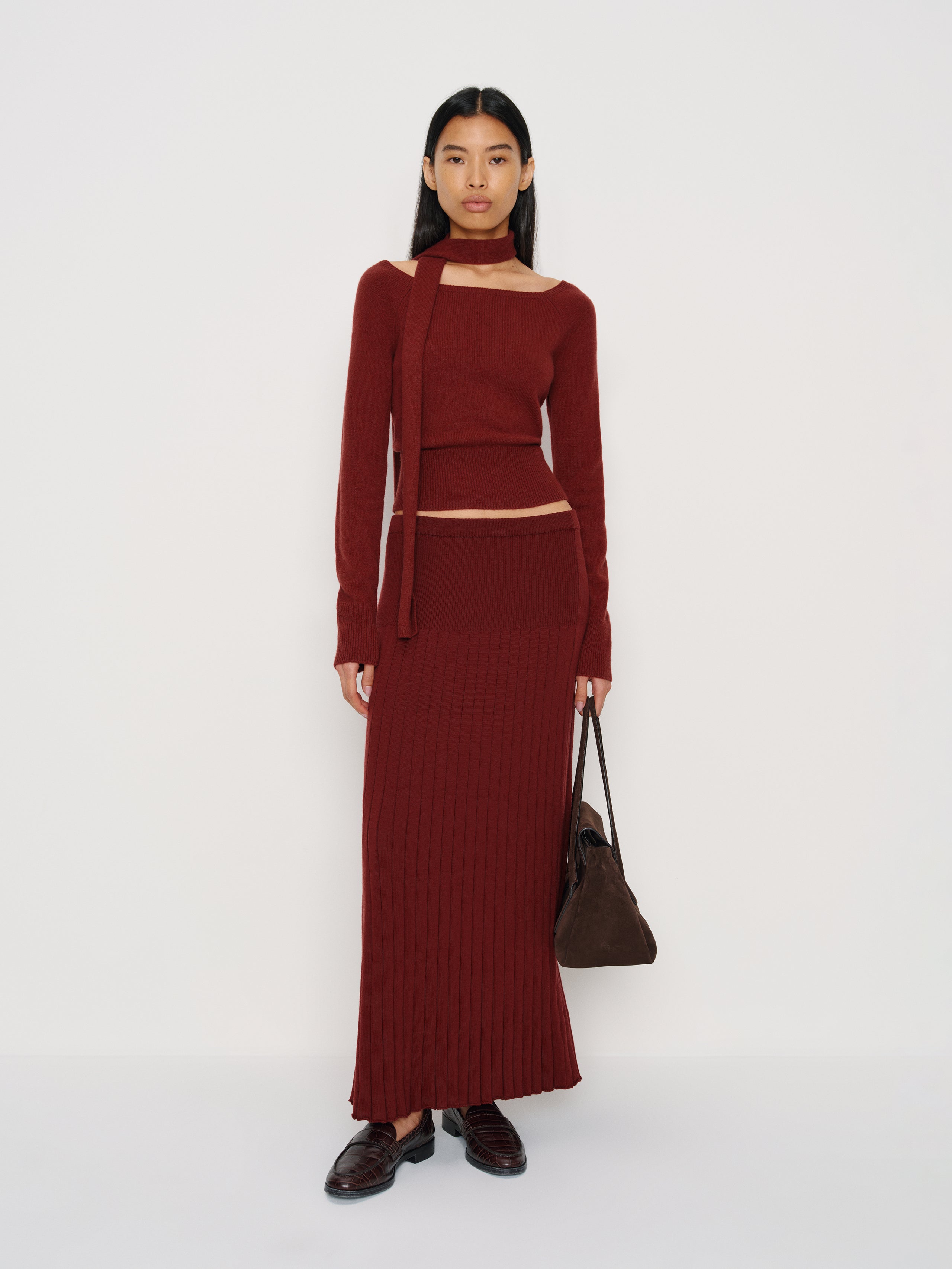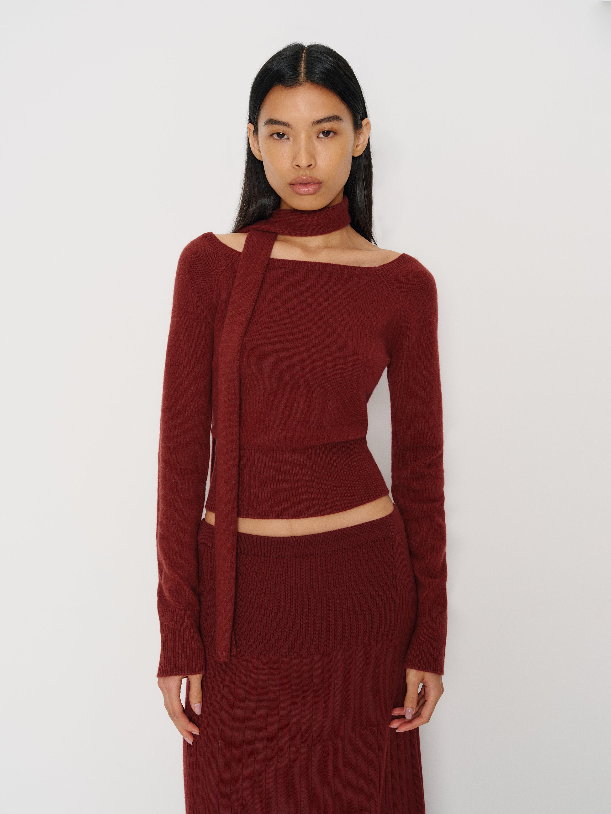 Stay cozy out there. Shop the Irene Cashmere Sweater from Reformation, a sweater with a boat neckline and matching scarf. Easy, but doesn't look it.