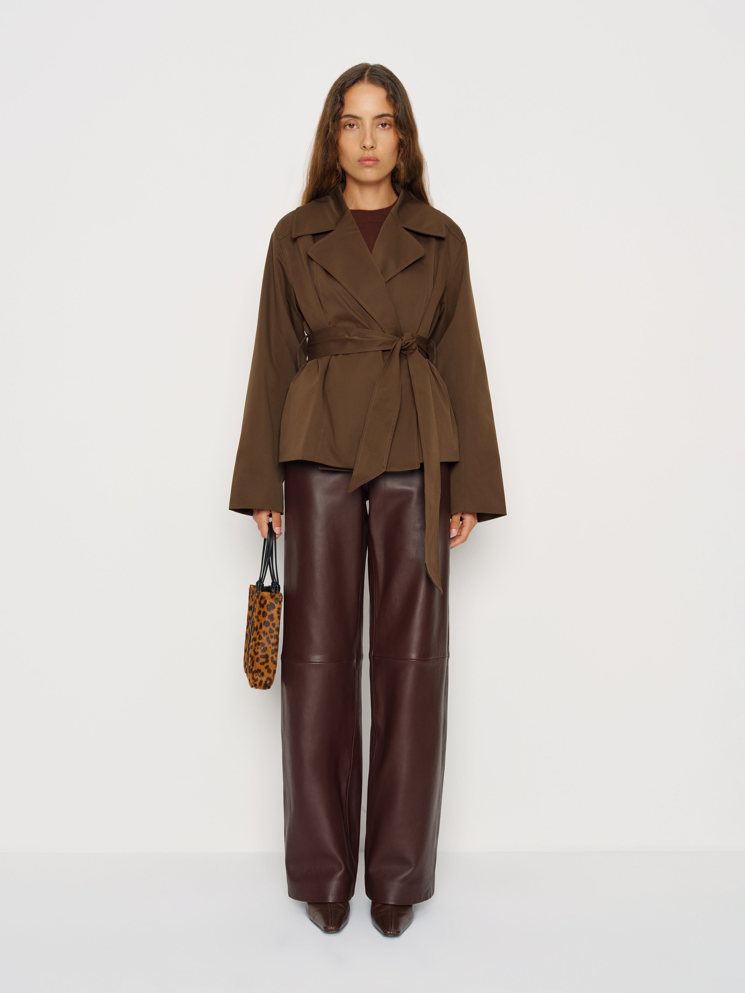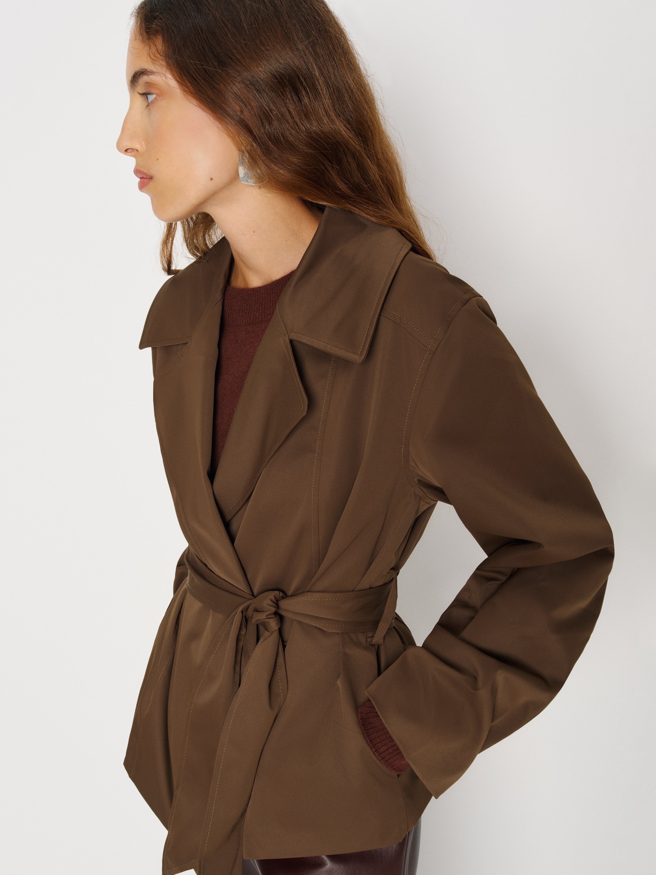 Time to add sleeves. Shop the Jaden Cropped Trench from Reformation, a long-sleeved cropped trench style jacket with a collar and adjustable tie at the waist.