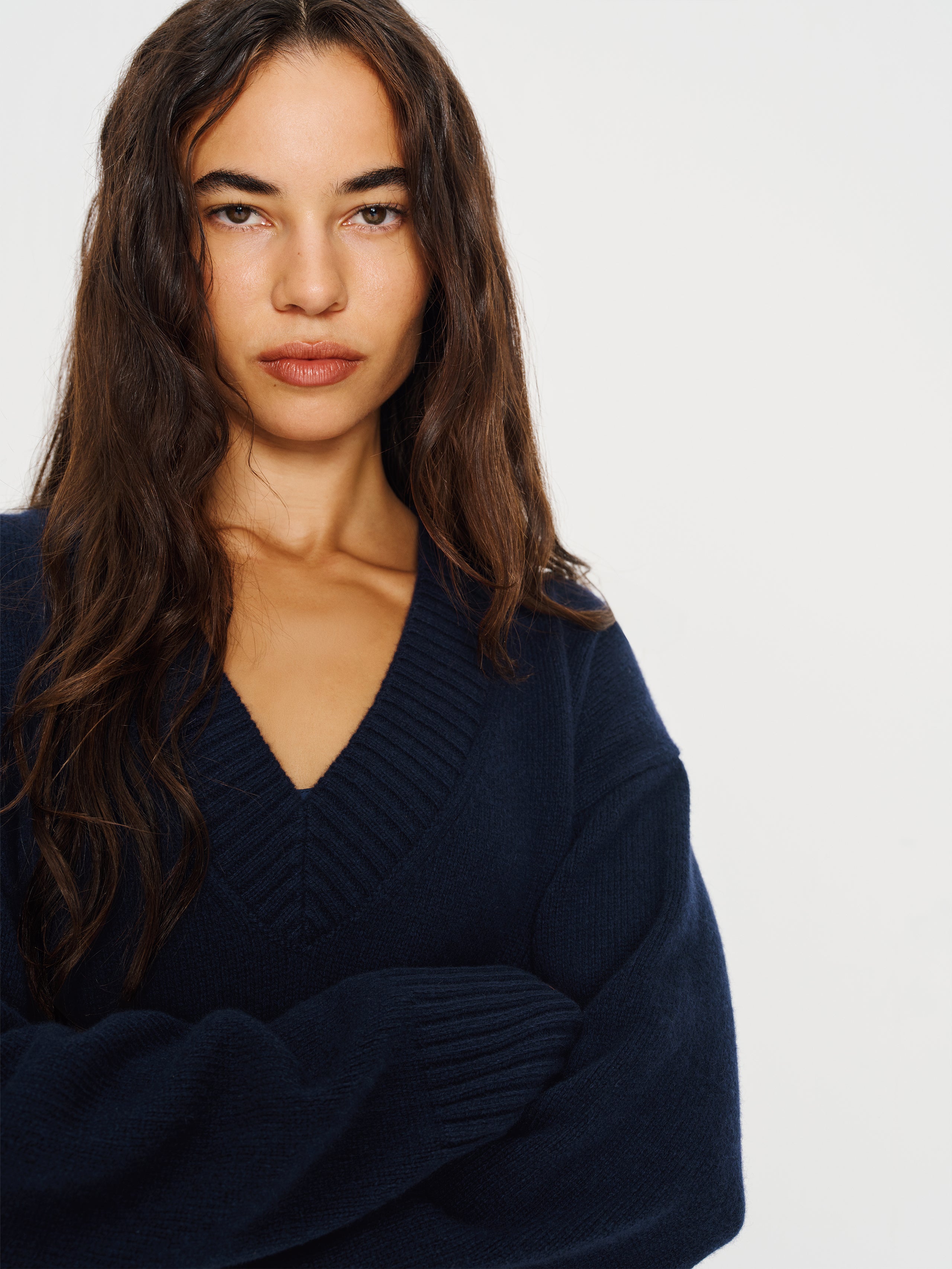 We're just happy to know you're cozy out there. Shop the Jadey Oversized V-neck Sweater from Reformation,...