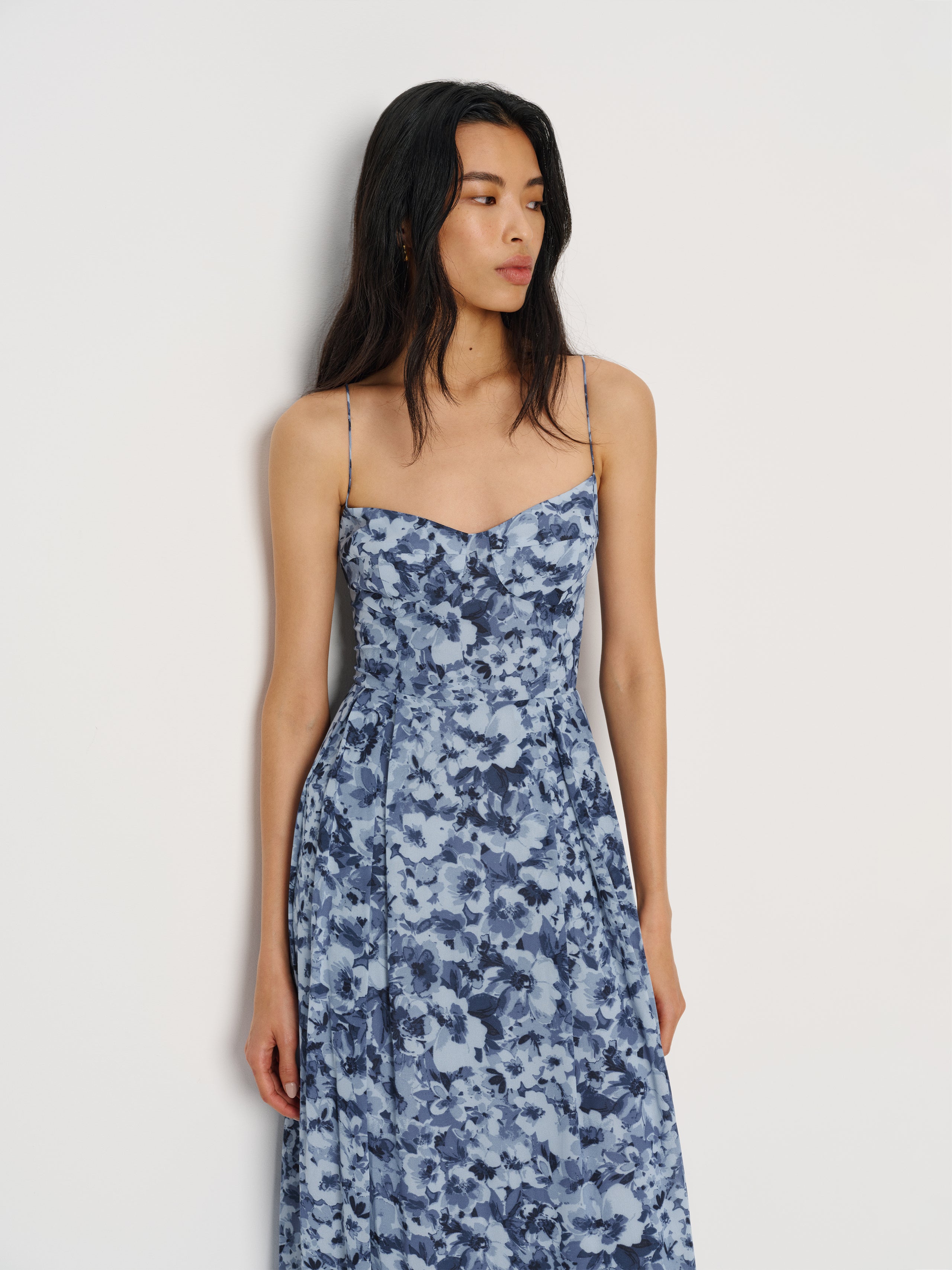 How classic. Shop the Jaelyn Dress from Reformation, a midi dress with a sweetheart neckline, fitted bodice, relaxed skirt, and adjustable tie straps.