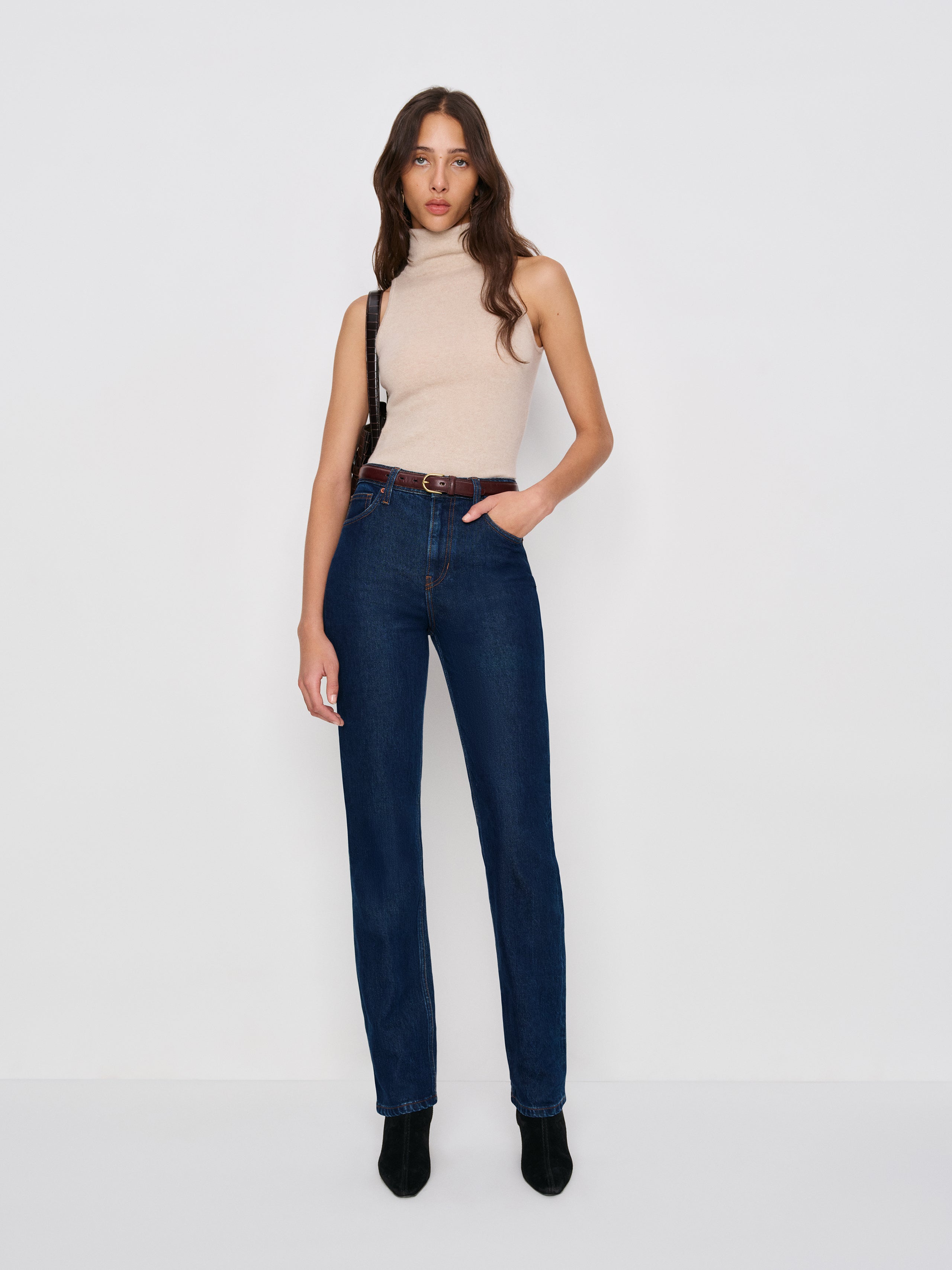 Denim time. Shop the Jax Stretch High Rise Straight Jeans from Reformation, a high-rise jean with a straight leg.
