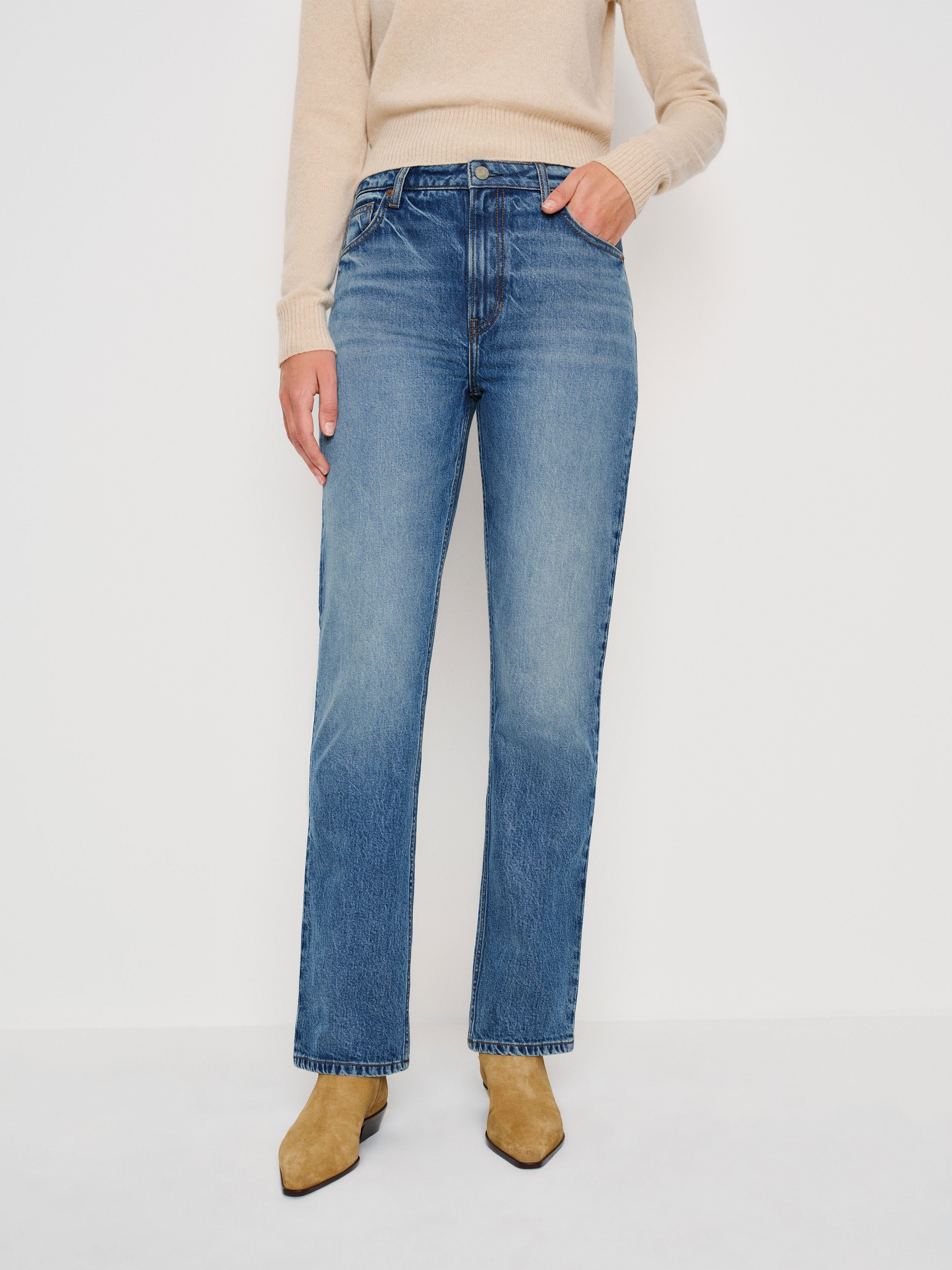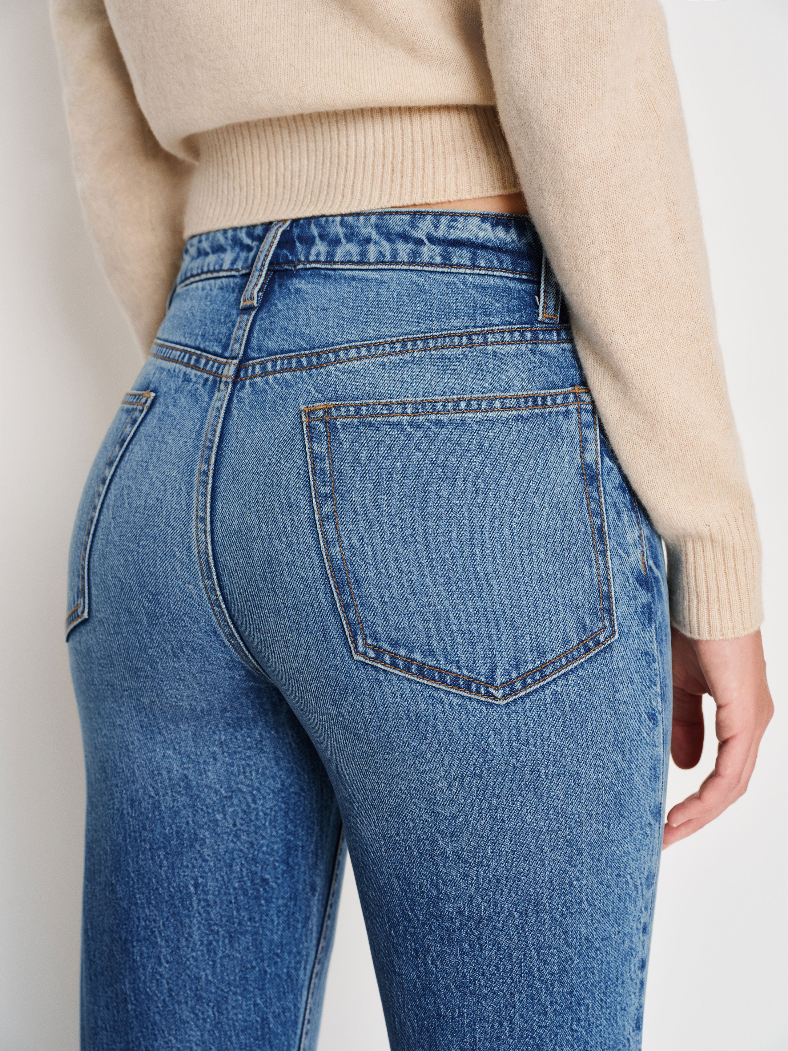 Denim time. Shop the Jax Stretch High Rise Straight Jeans from Reformation, a high-rise jean with a...