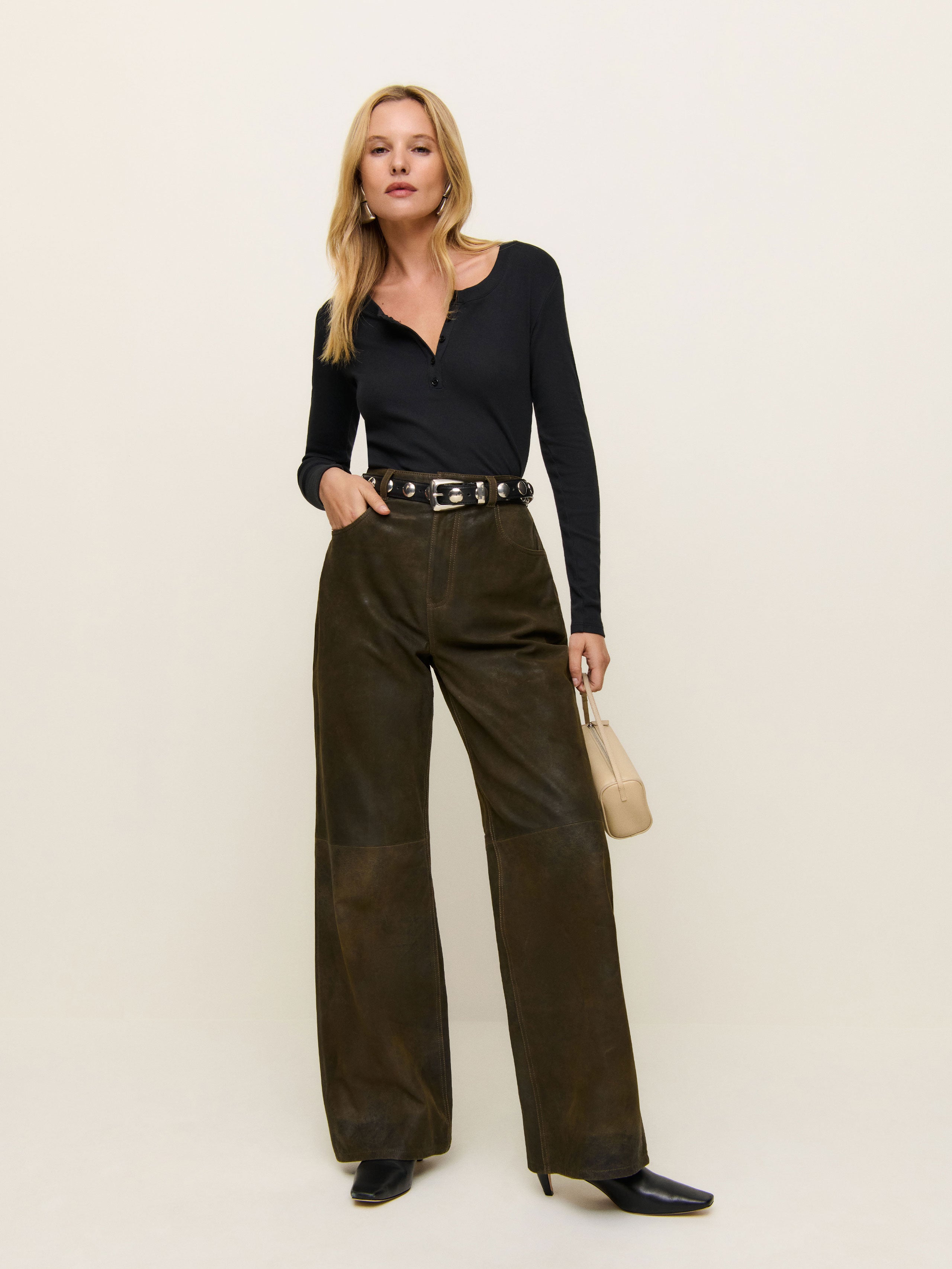 Shop the Jayden Long Sleeve Henley Tee from Reformation, a slim, fitted tee with a henley neckline.