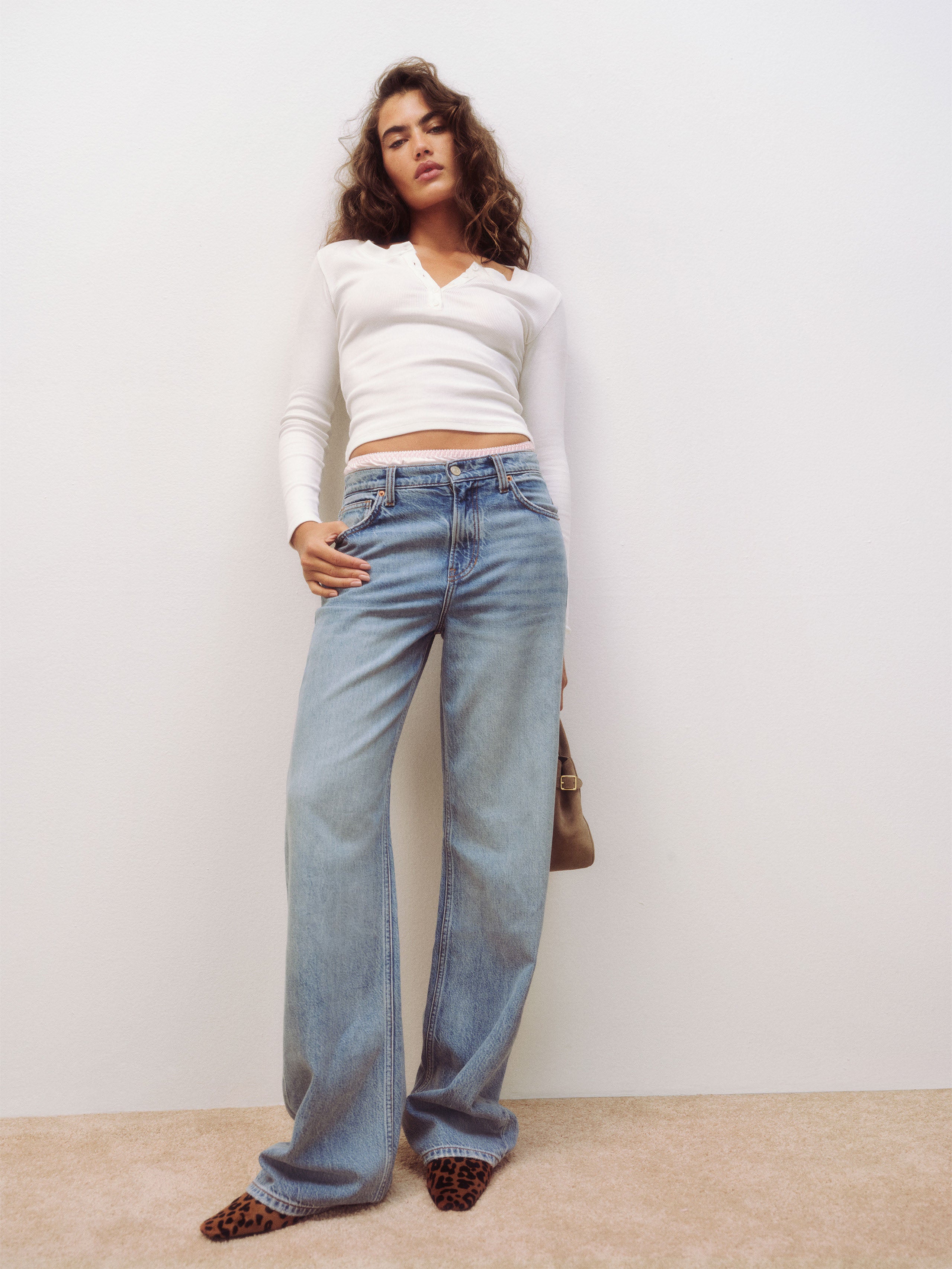 Shop the Jayden Long Sleeve Henley Tee from Reformation, a slim, fitted tee with a henley neckline.