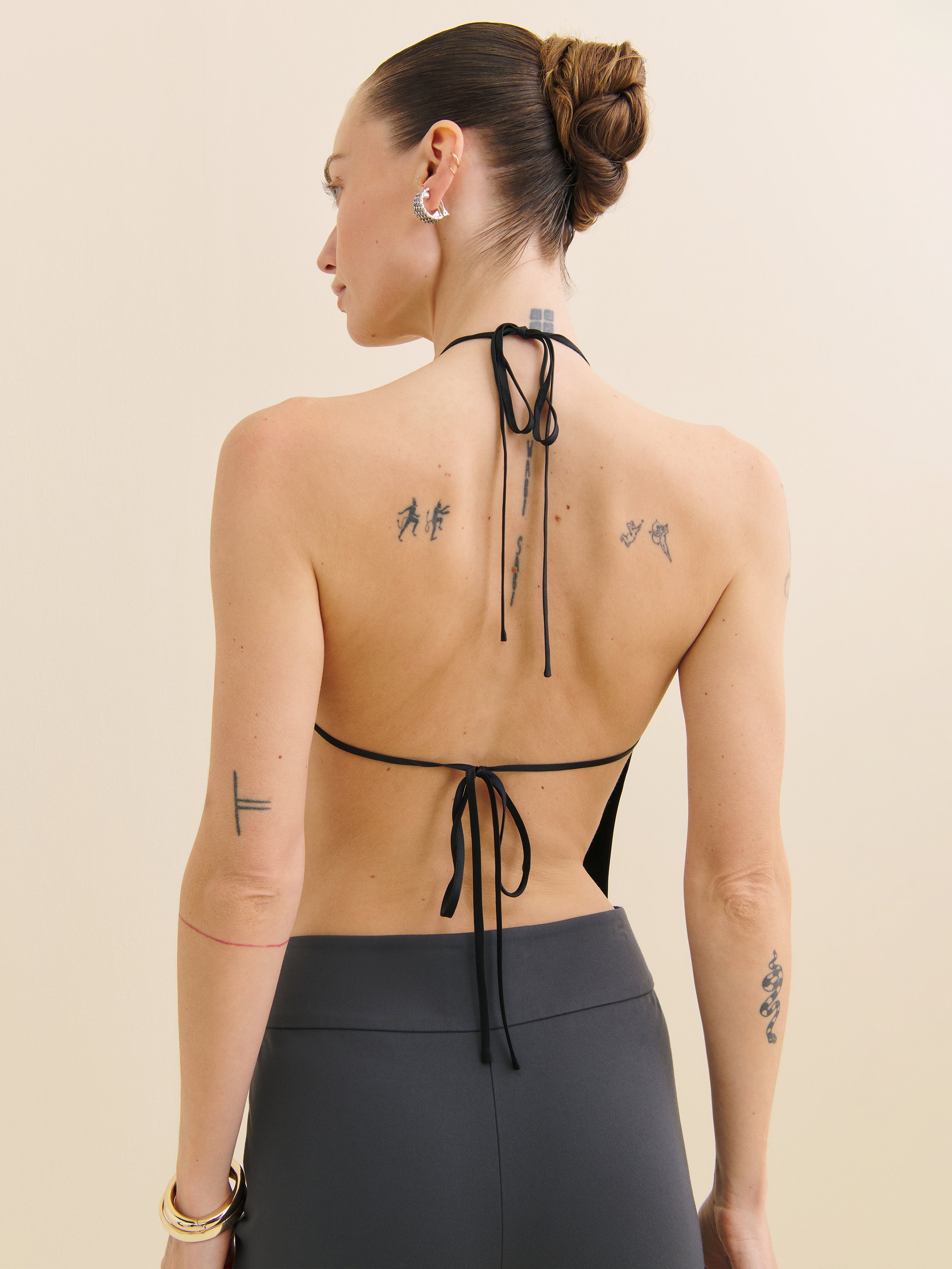 Up top. Shop the Jeany Silk Top from Reformation, a sleeveless silk top with a halter neckline...