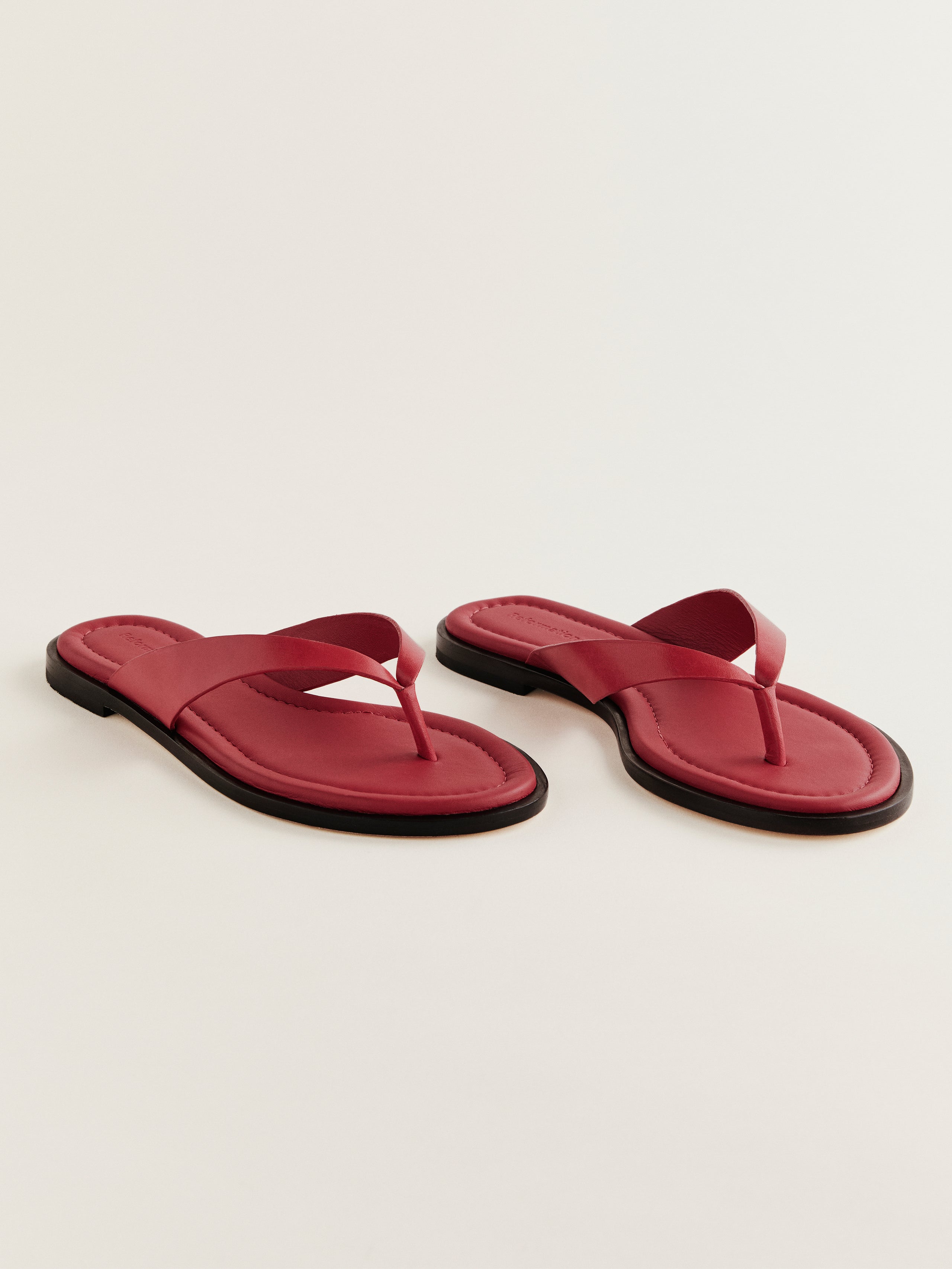 Show some foot. Shop the Jessie Thong Sandal from Reformation, a flat thong sandal with a padded...