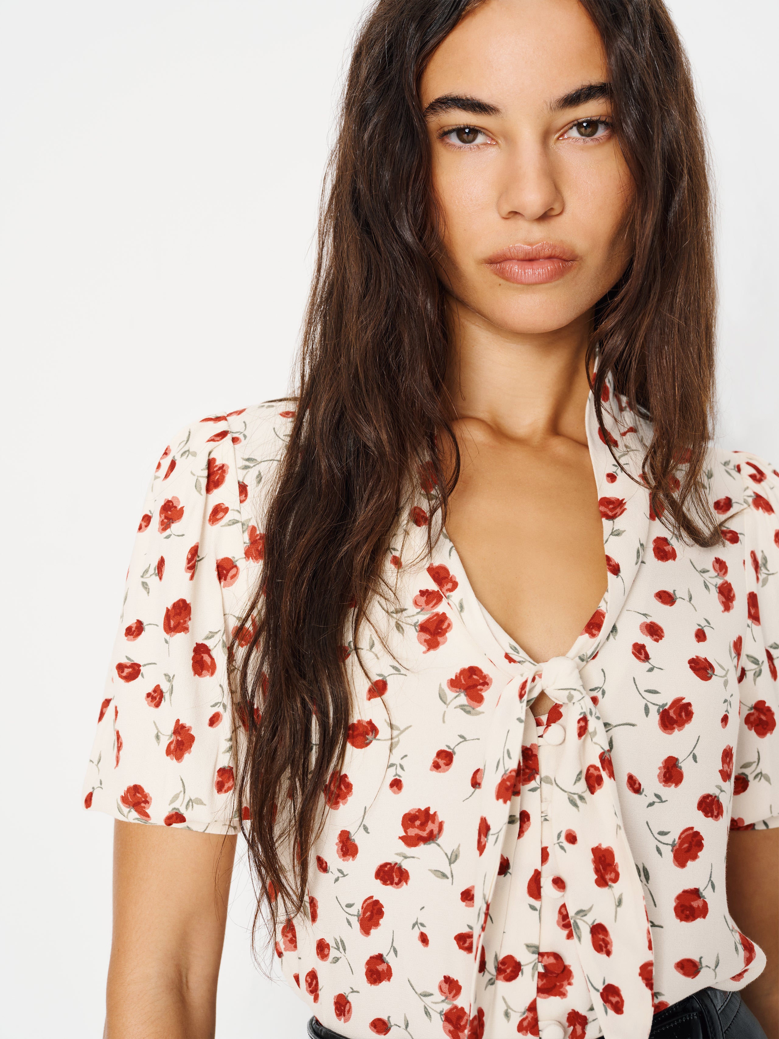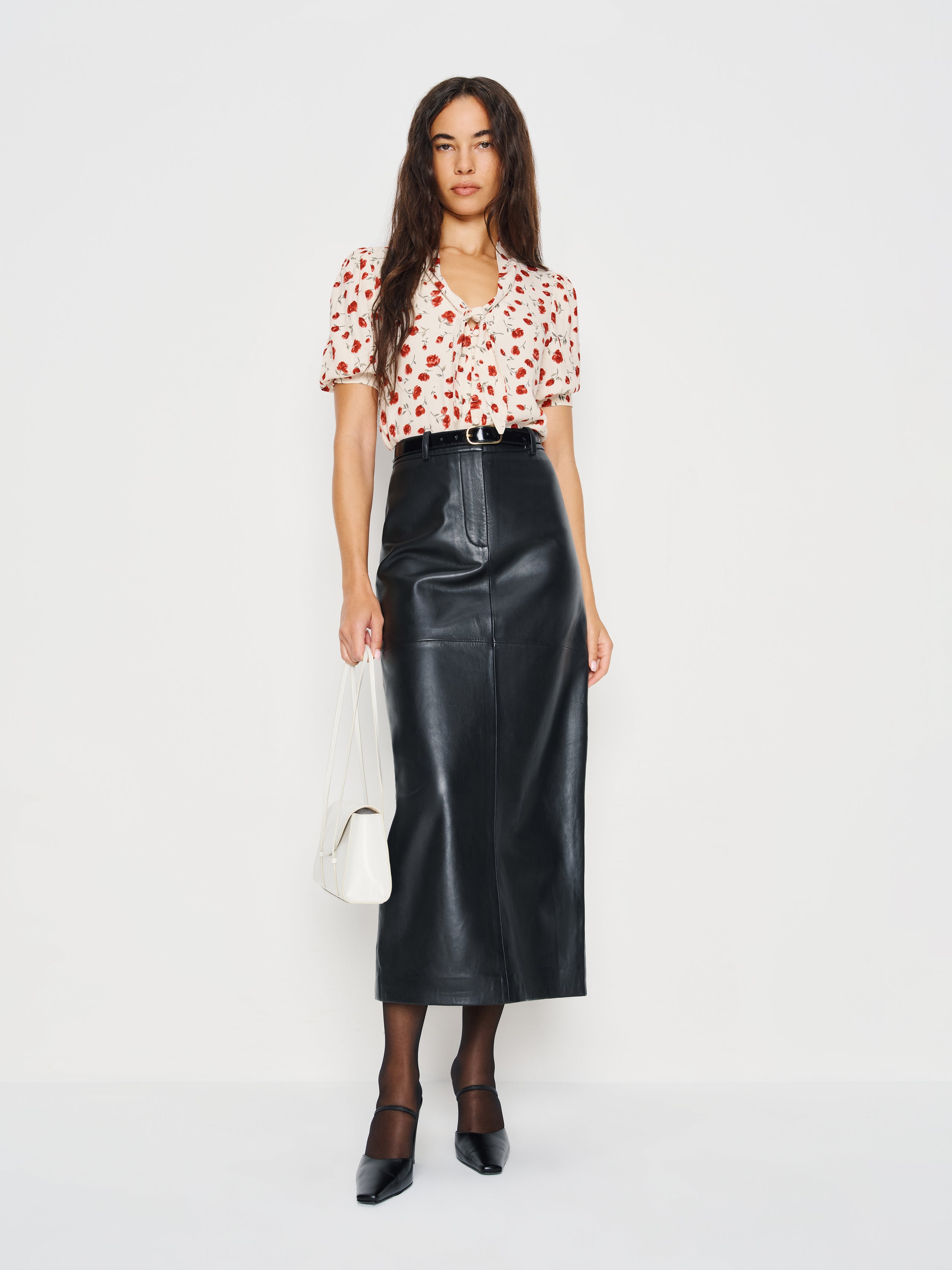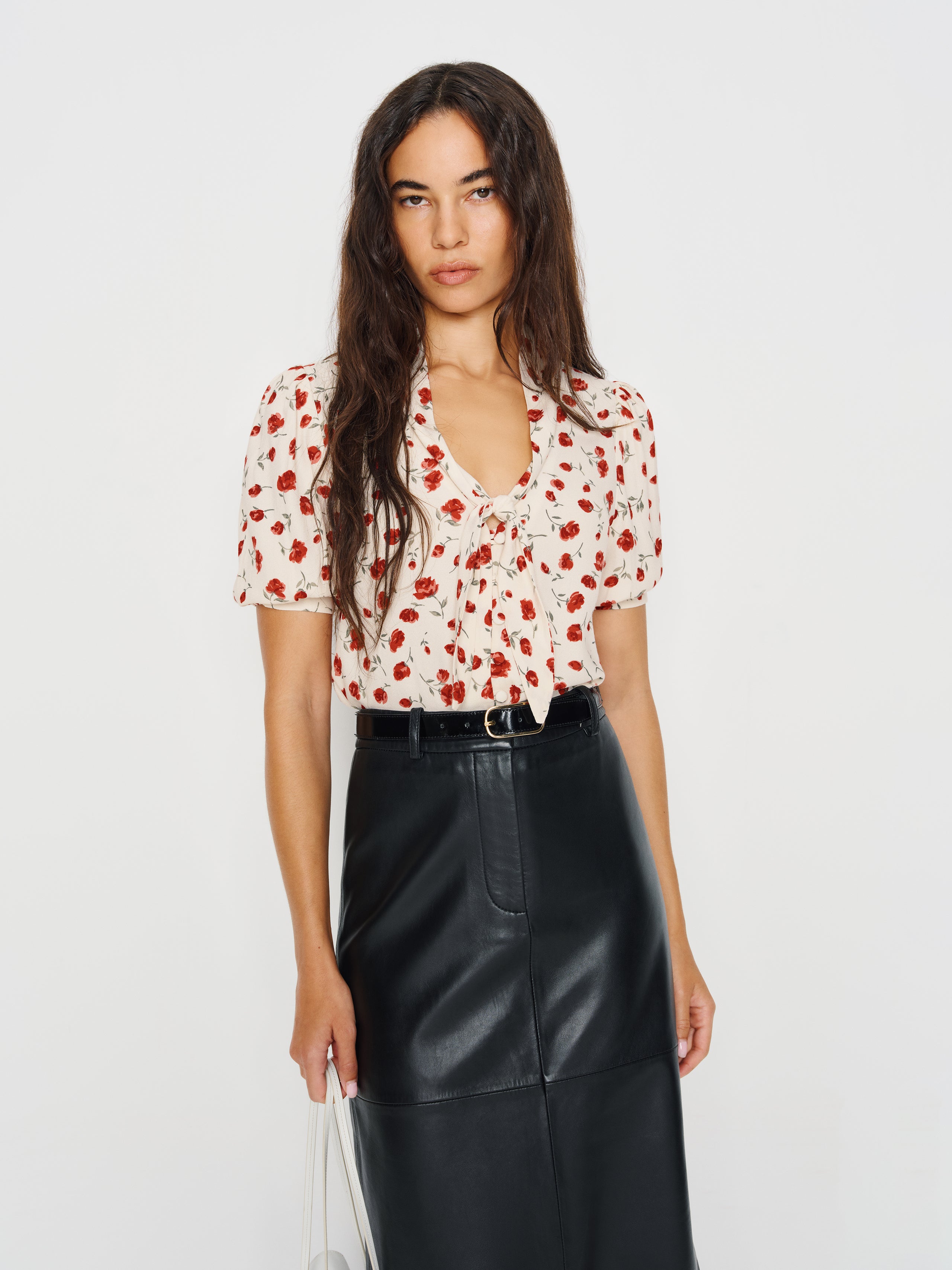 Detail oriented. Shop the Joelle Top from Reformation, a short sleeve top with puff sleeves, a V neckline, and tie detail.