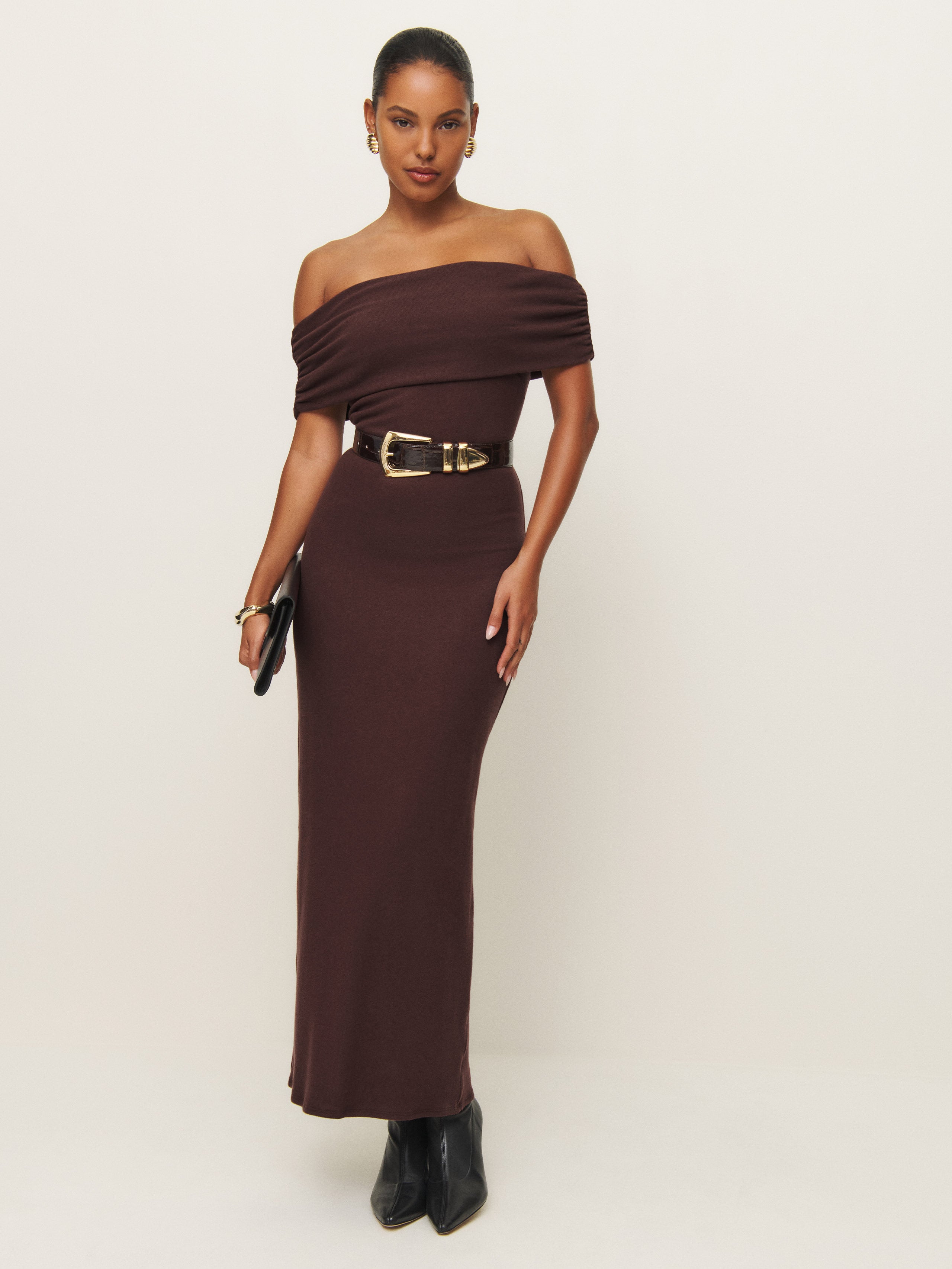 May cause compliments. Shop the Josefina Knit Dress from Reformation, a midi dress with an off the shoulder neckline.