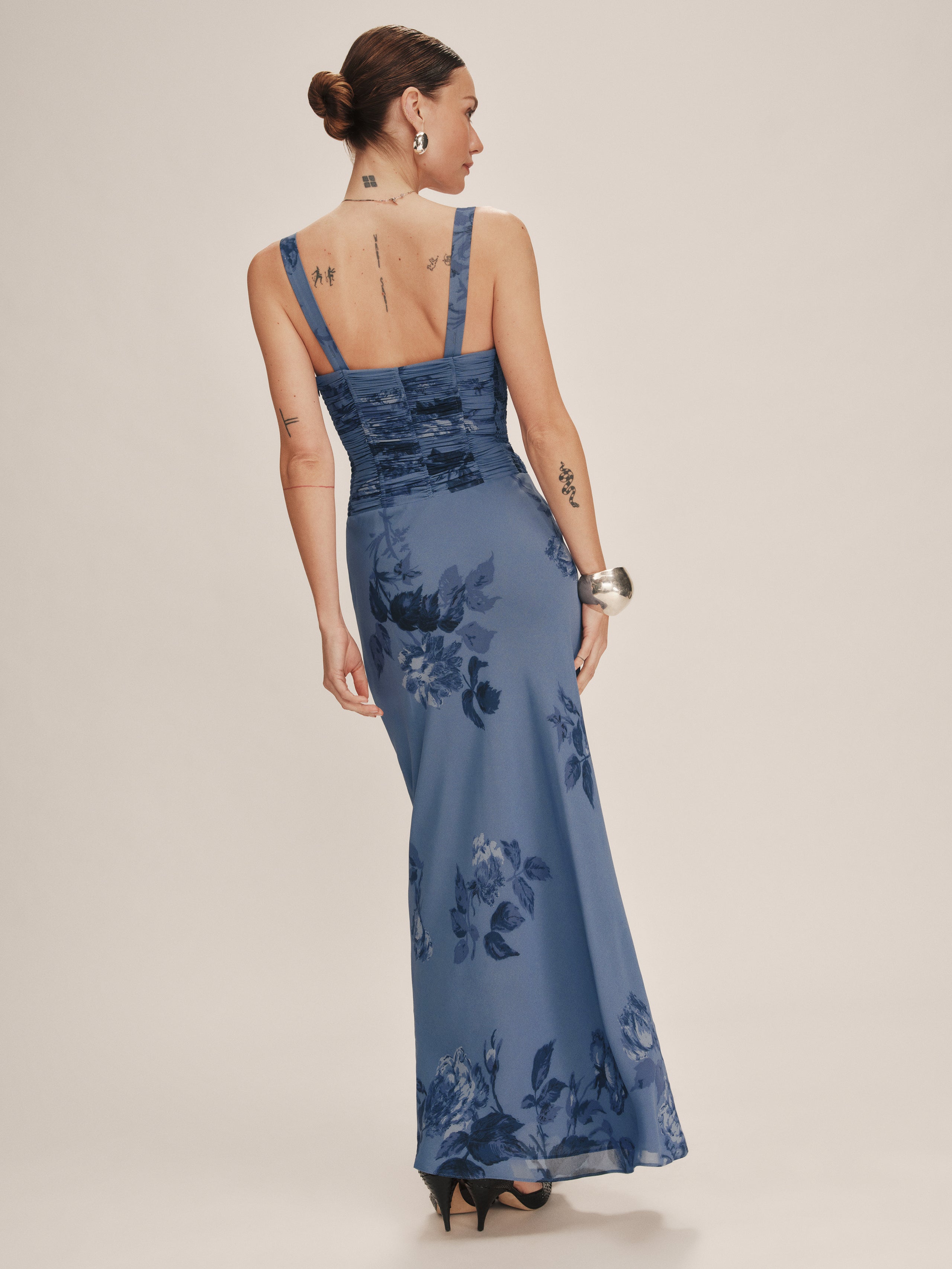 Romance for one. Shop the Josetta Dress from Reformation, a sleeveless full-length dress with ruching throughout the...