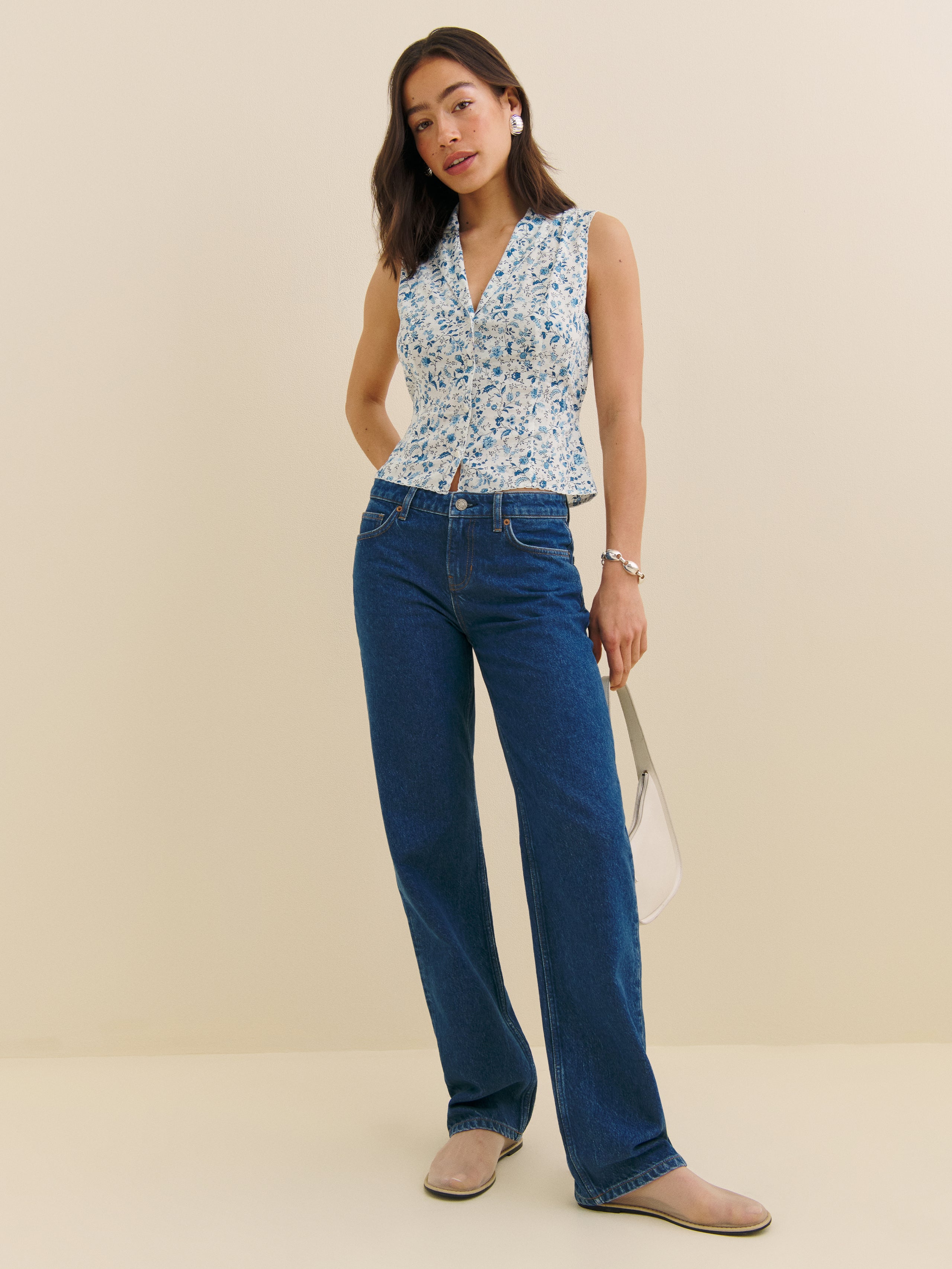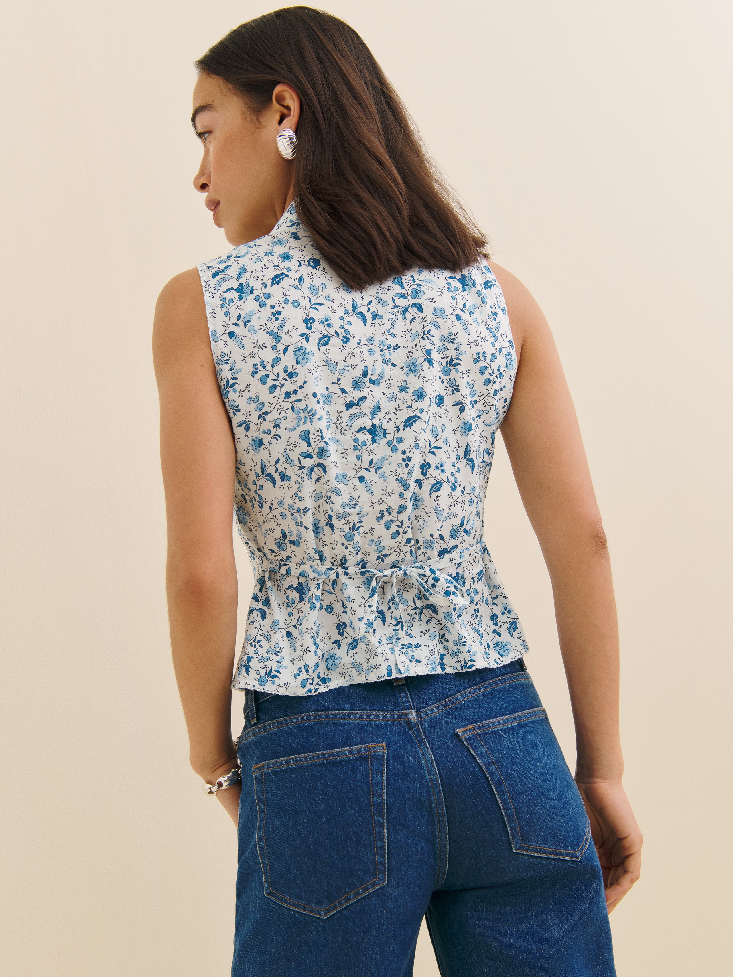 Up top. Shop the Kady Top from Reformation, a sleeveless vest with a collared v-neckline, button front, and scallop trim.