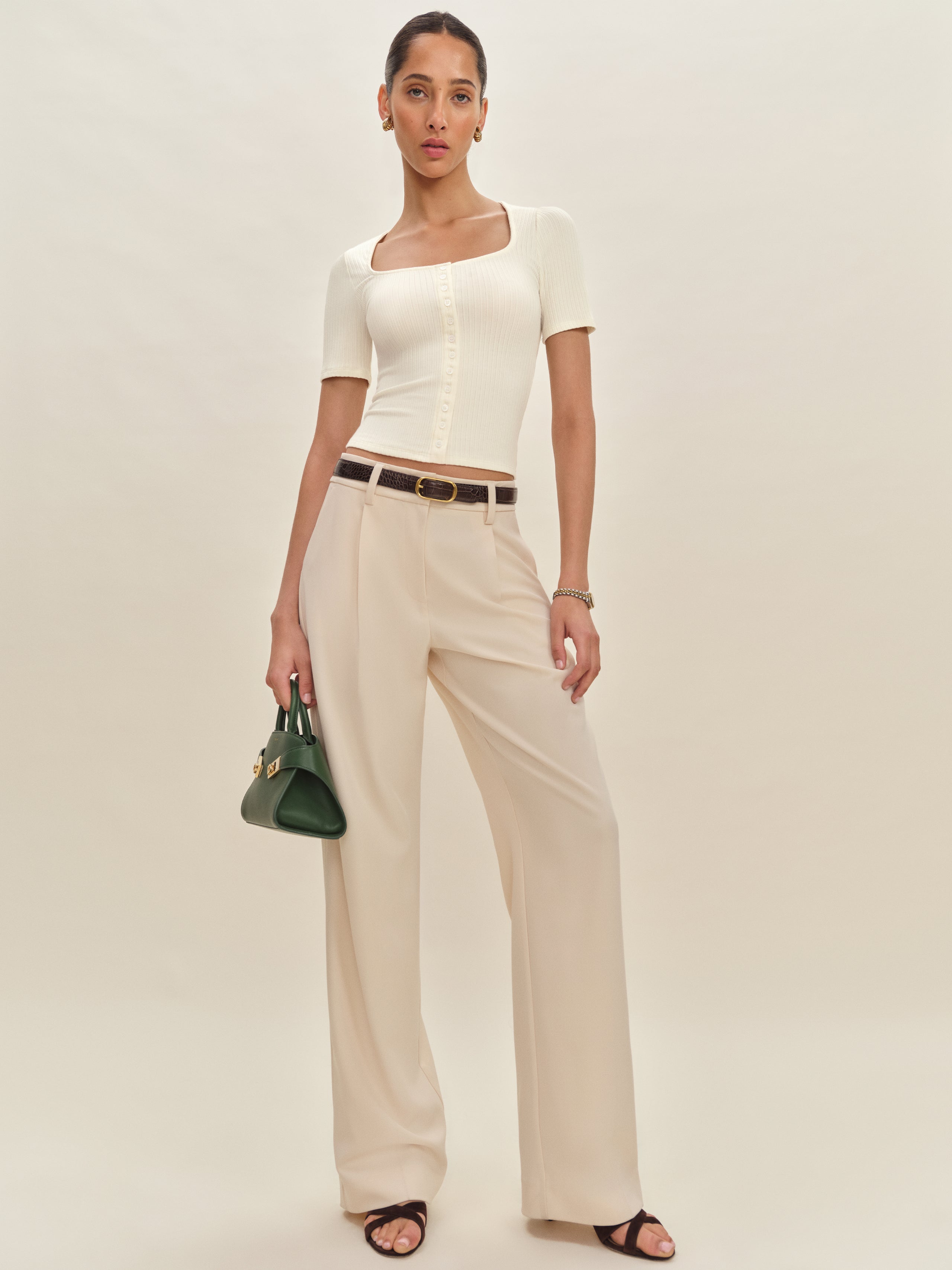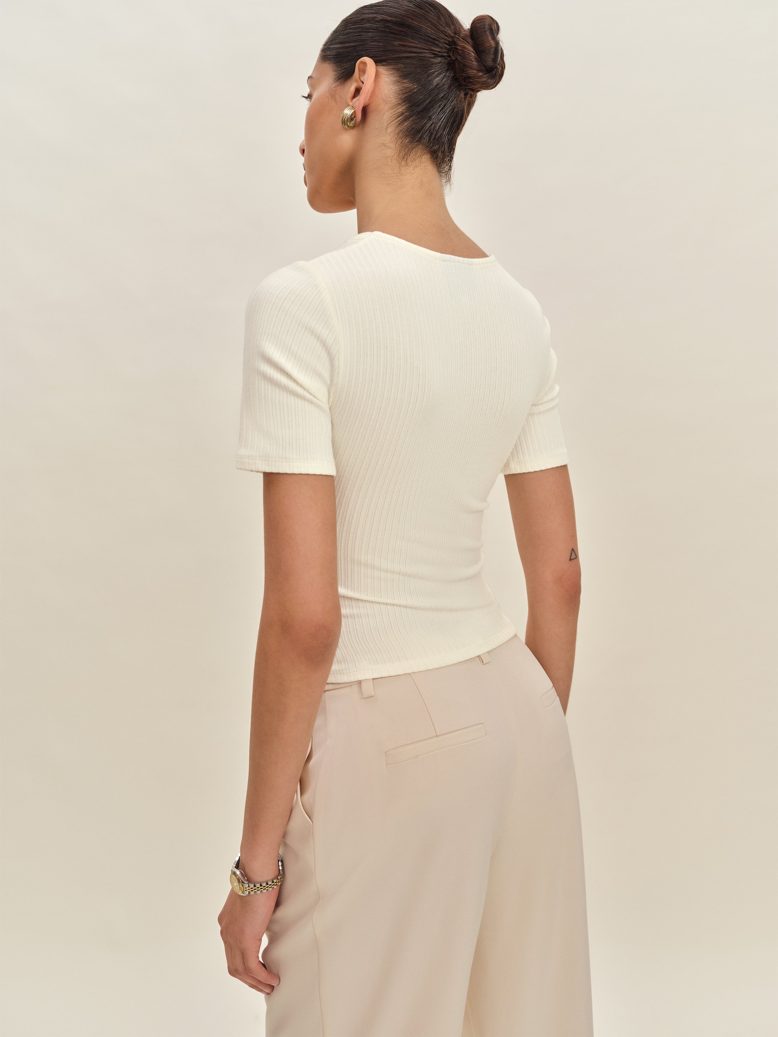 Minimal effort. Shop the Kaiden Knit Top from Reformation, a fitted short-sleeved top with full button closure in front.