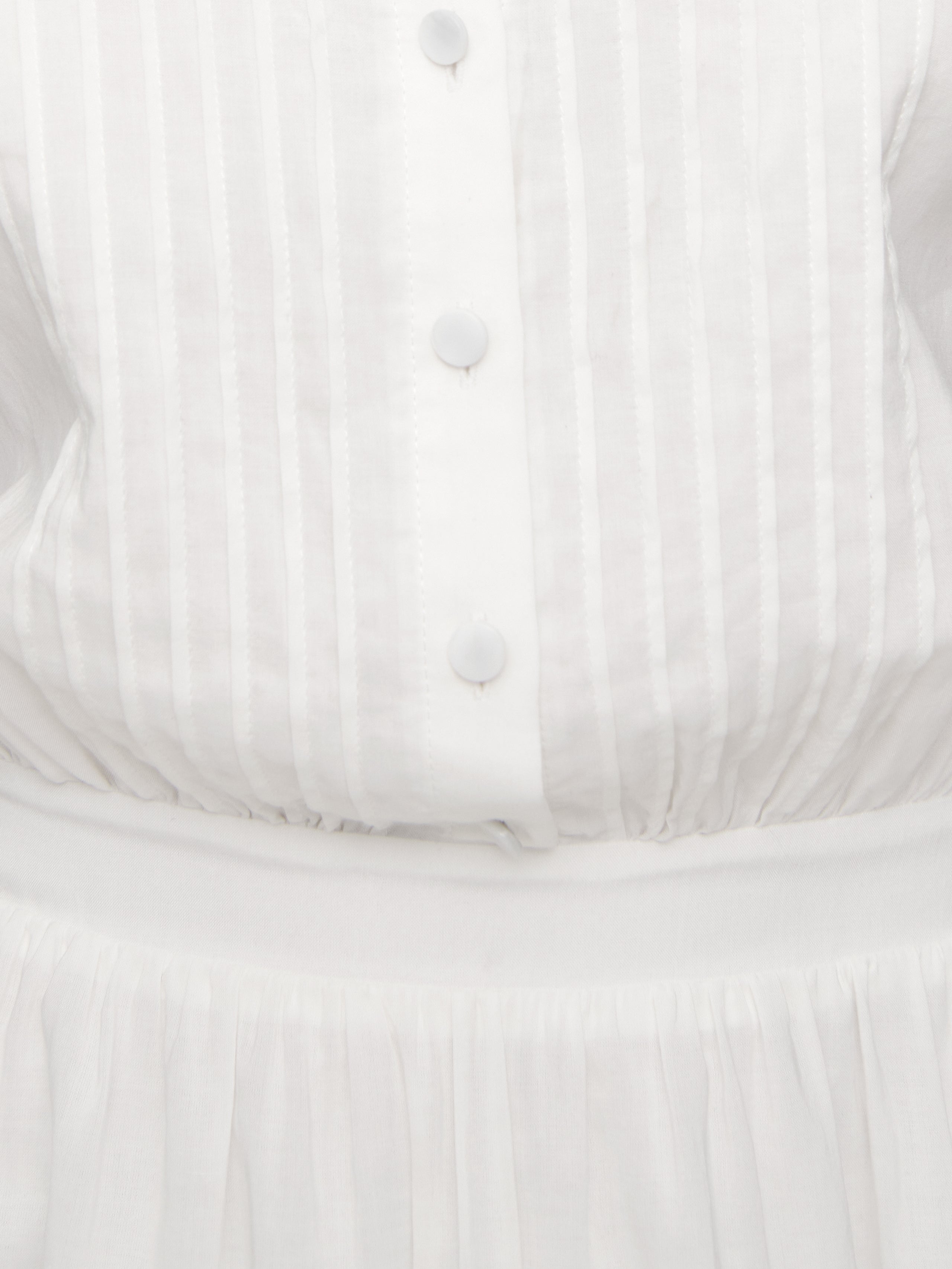 Easy breezy. Shop the Kairos Dress from Reformation, a short-sleeved mini dress with puffed sleeves, a button front bodice, and embroidered detailing.