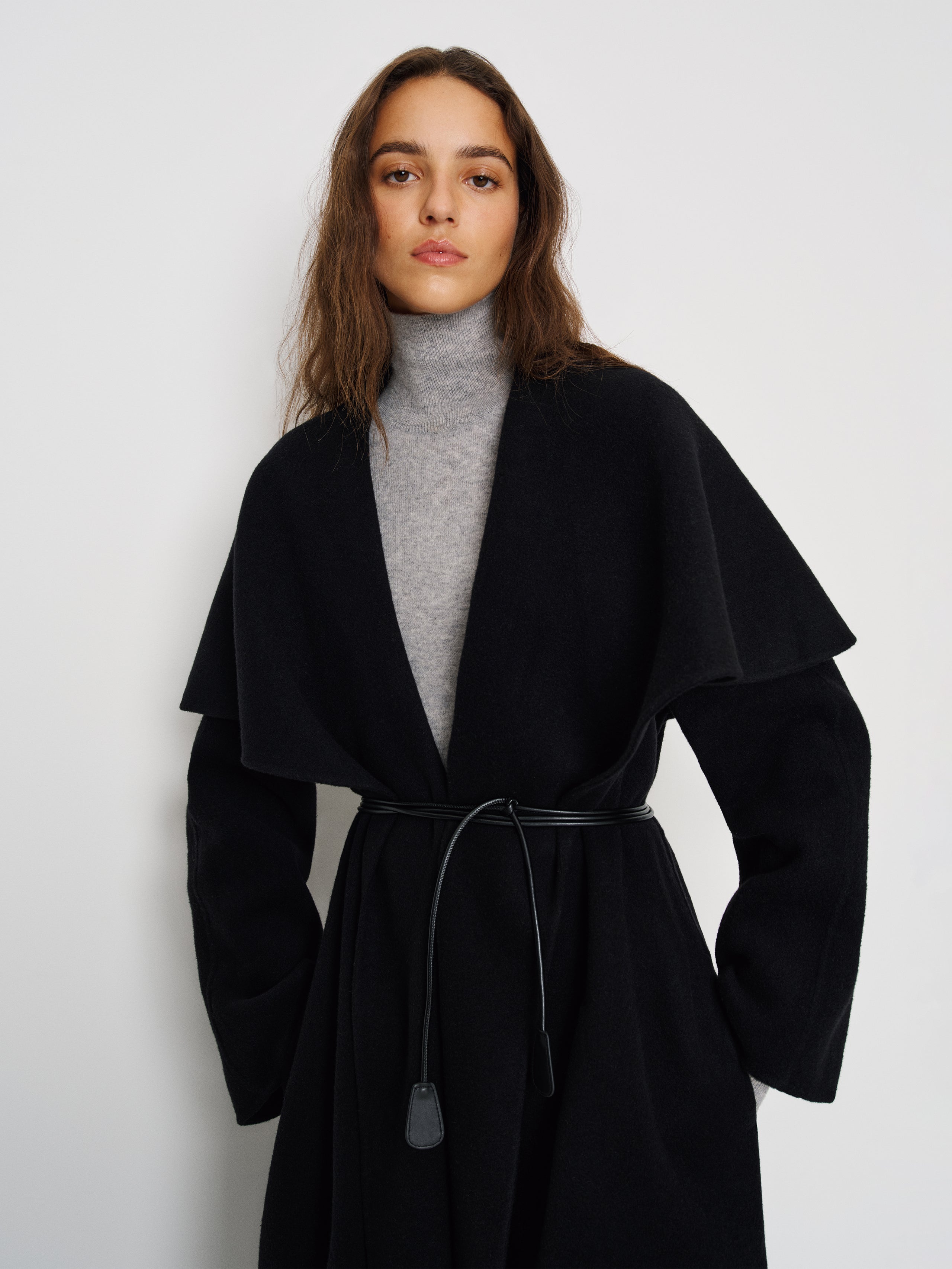 Stay warm out there. Shop the Kay Double Faced Coat from Reformation, a full-length coat that has a tie allowing the jacket to be worn open or closed.